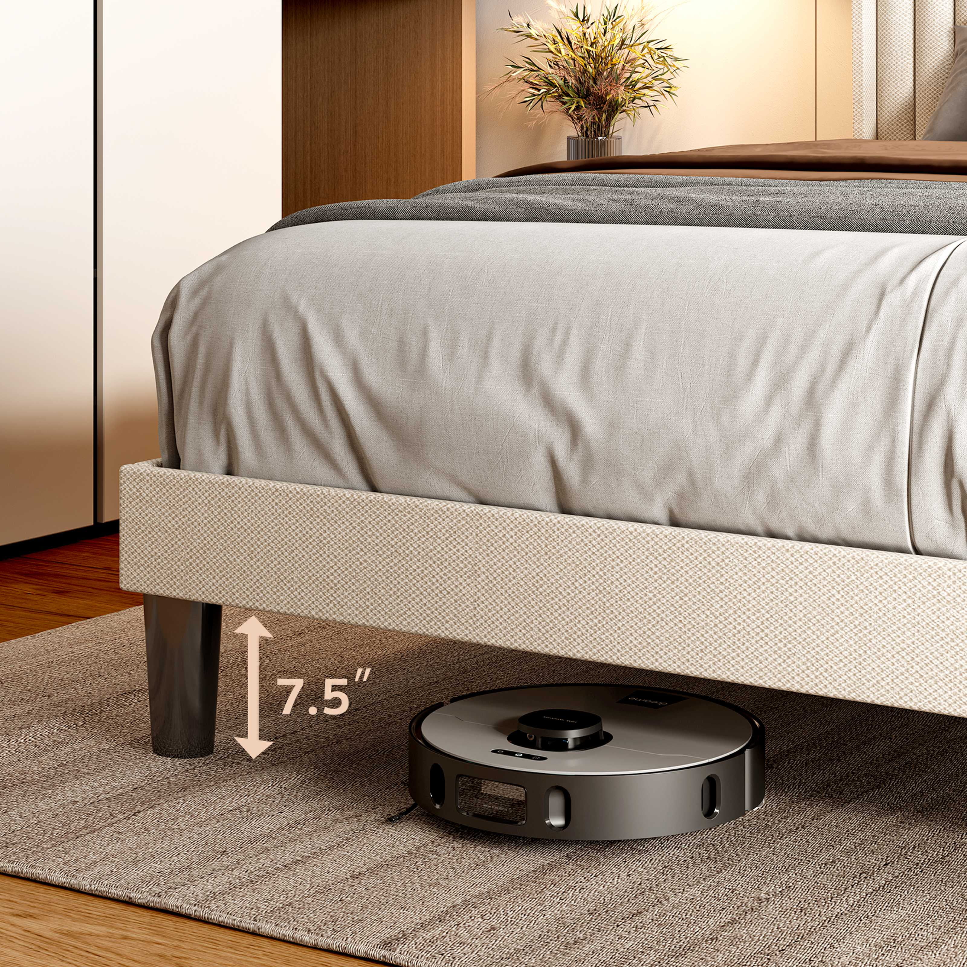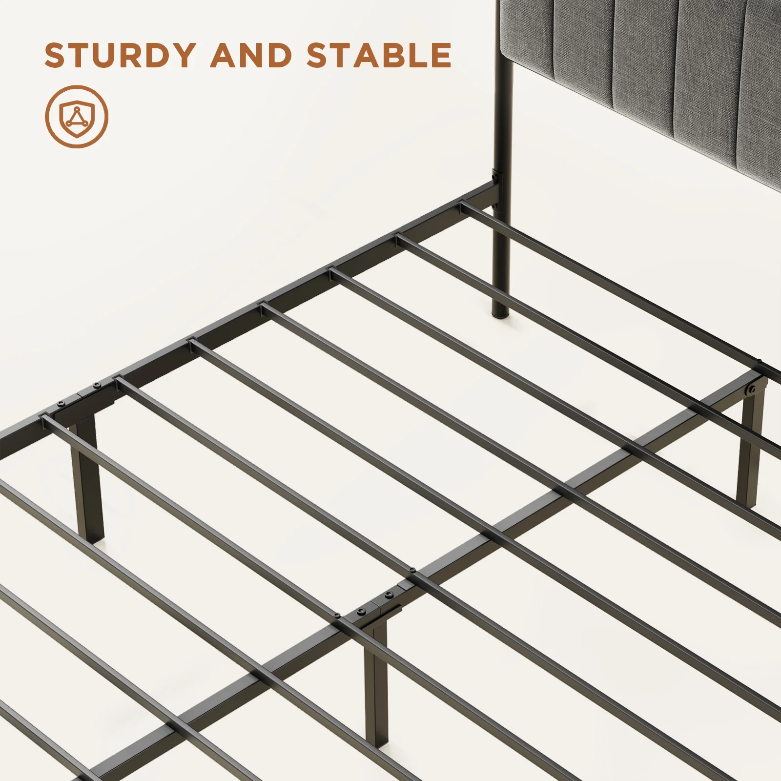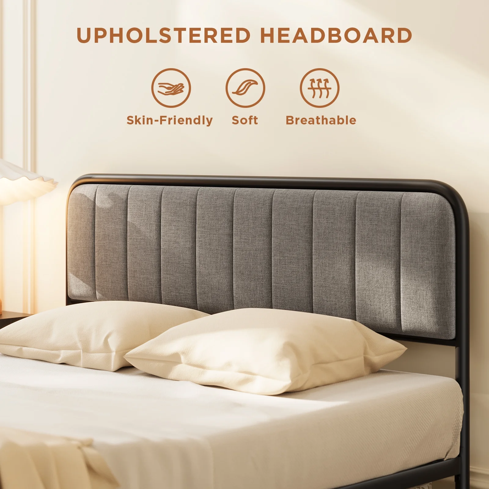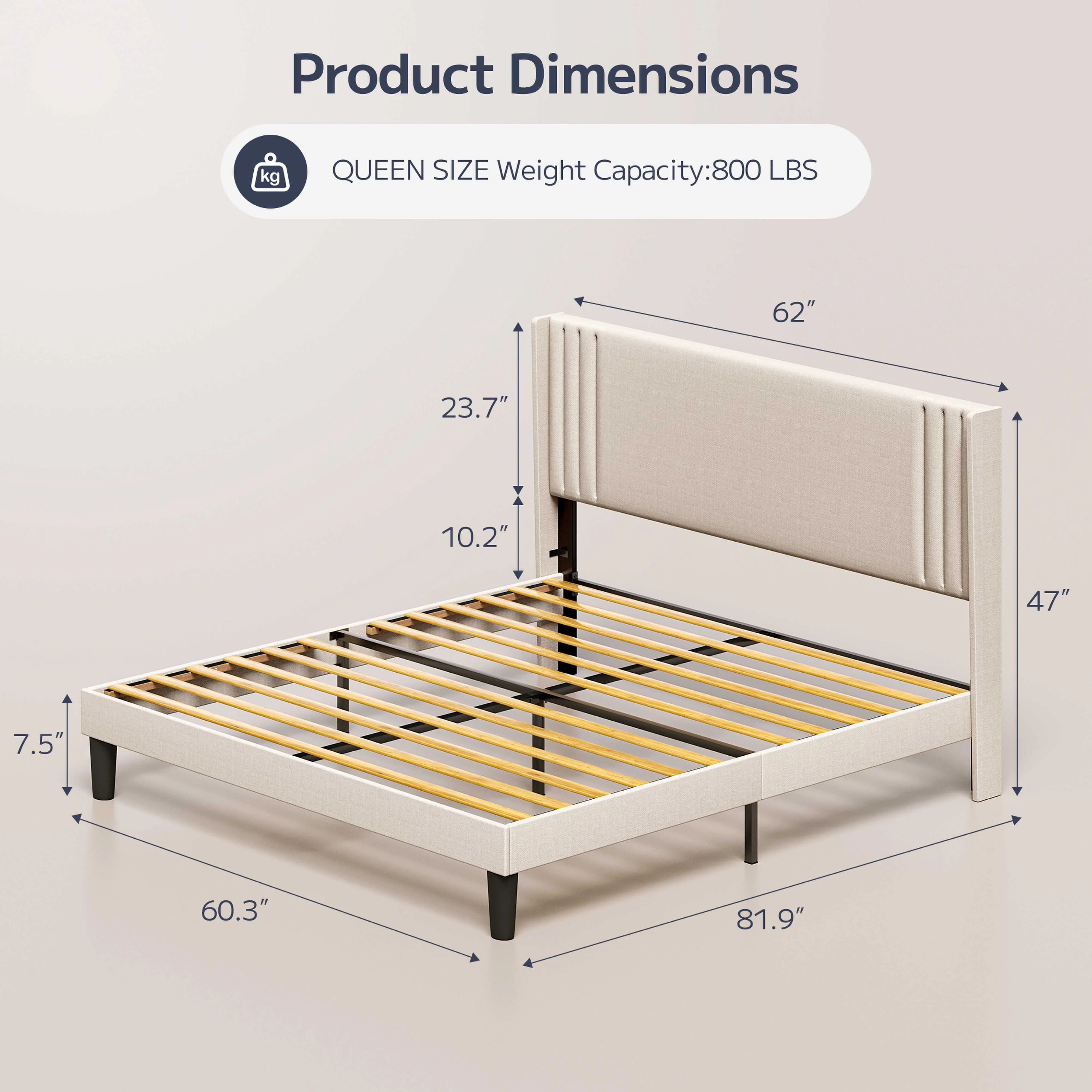 DWVO Upholstered Platform Bed Frame with Adjustable Headboard Metal Slat, No Box Spring Needed (Queen)