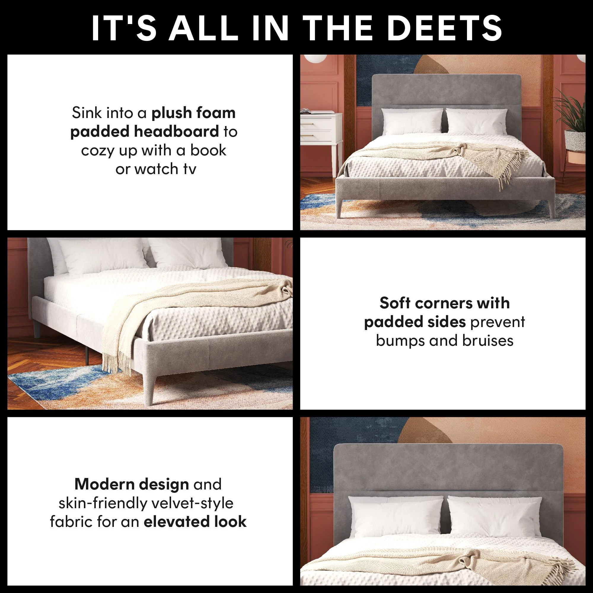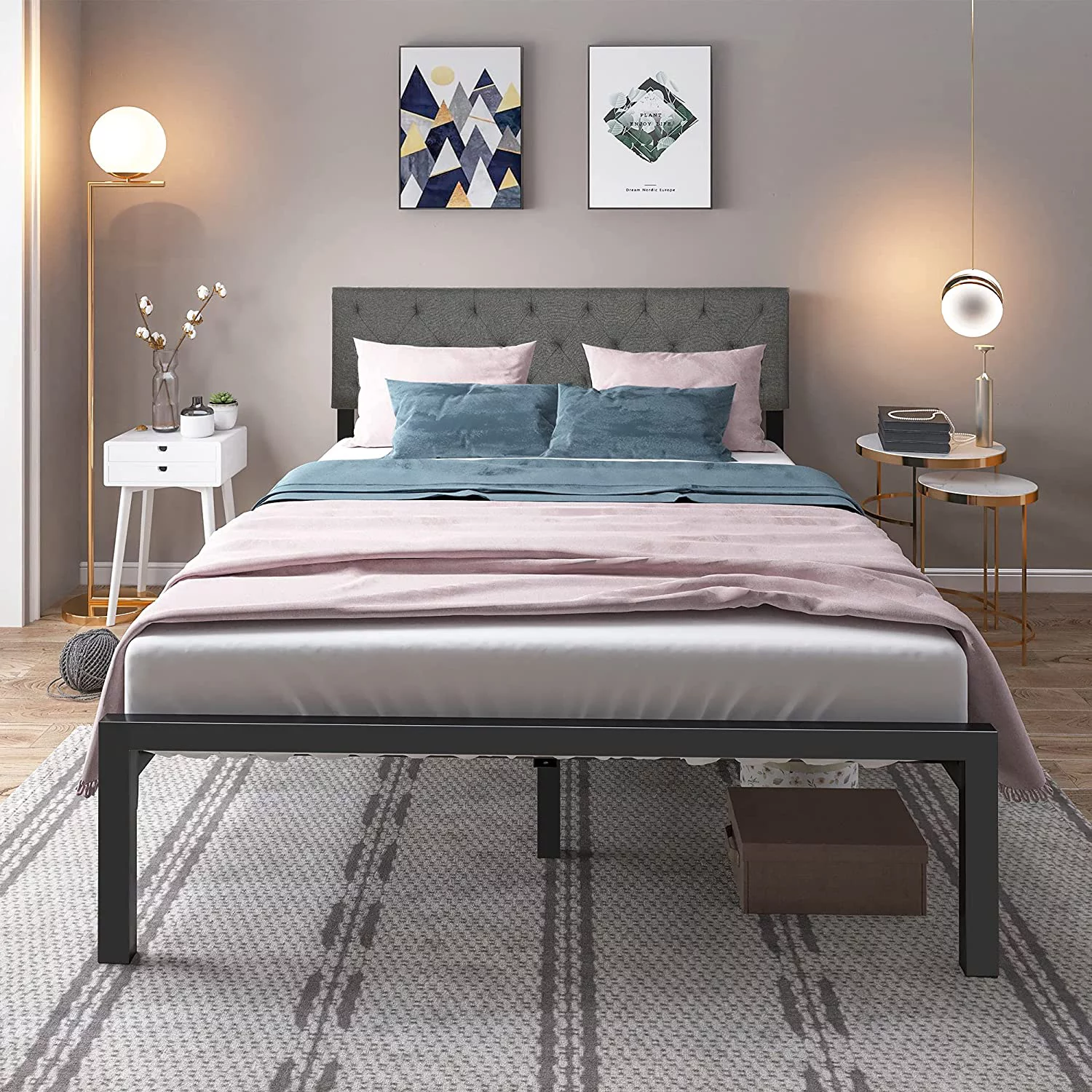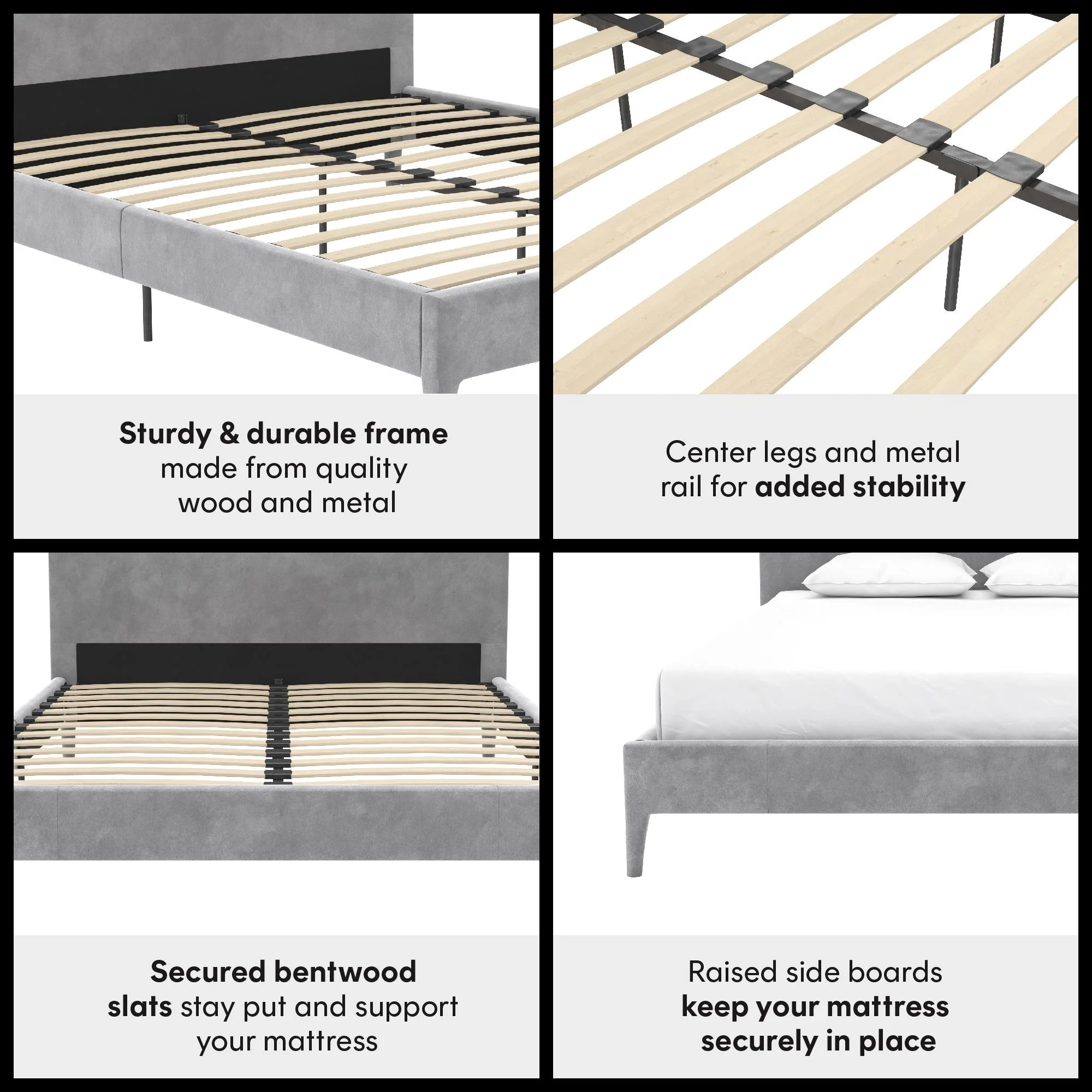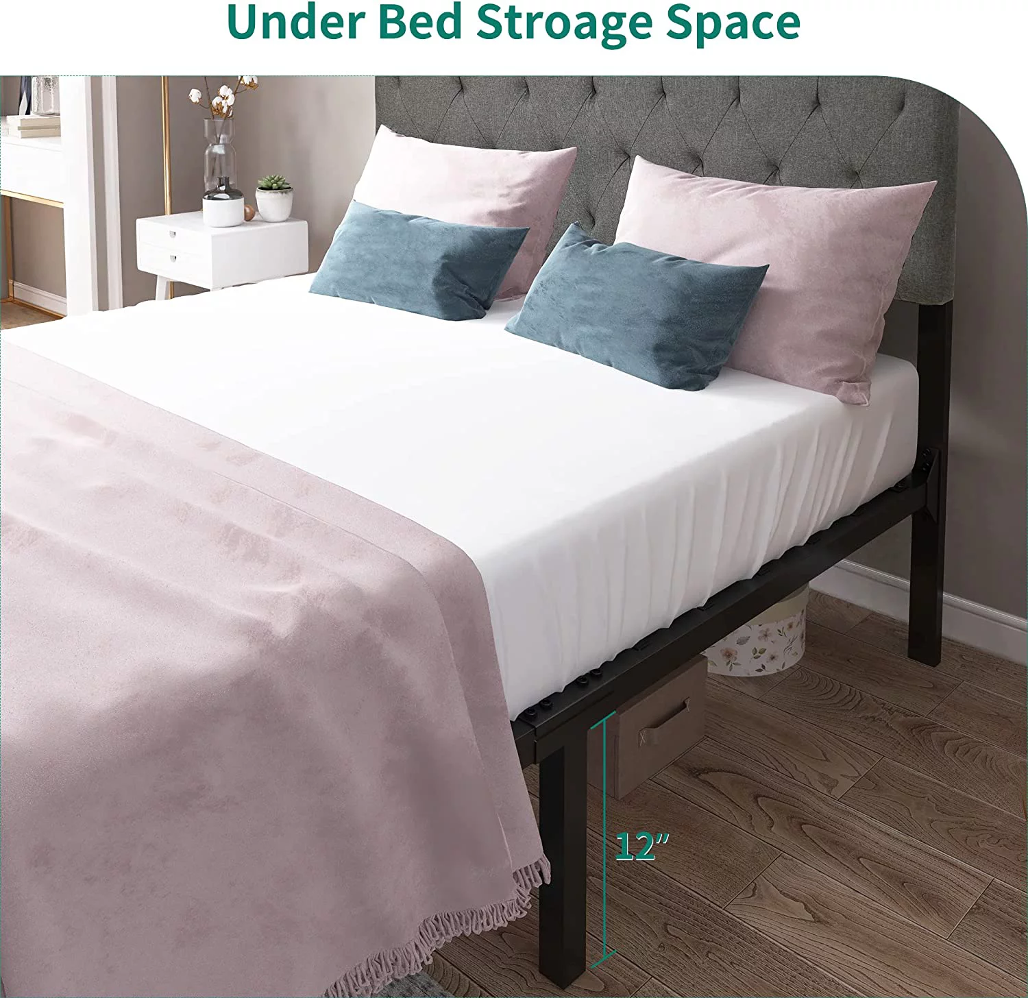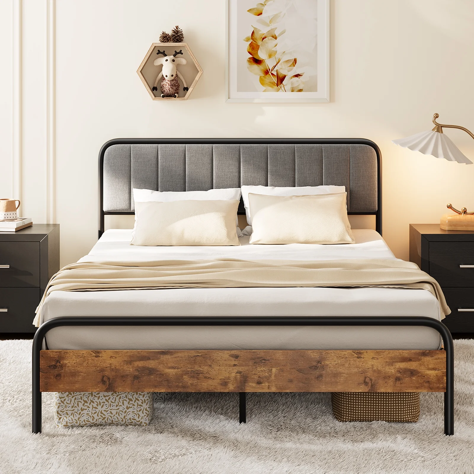DWVO Upholstered Platform Bed Frame with Adjustable Headboard Metal Slat, No Box Spring Needed (Queen)
