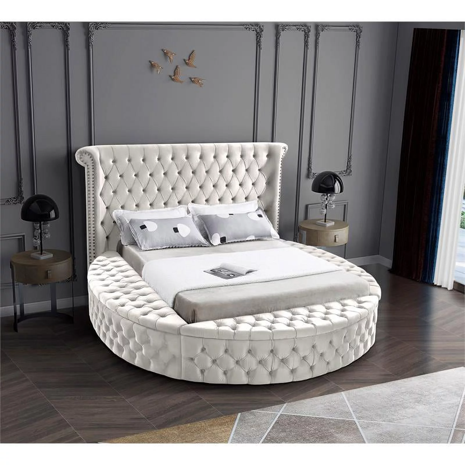 Meridian Furniture Modern Fabric White Luxus Cream Velvet King Bed