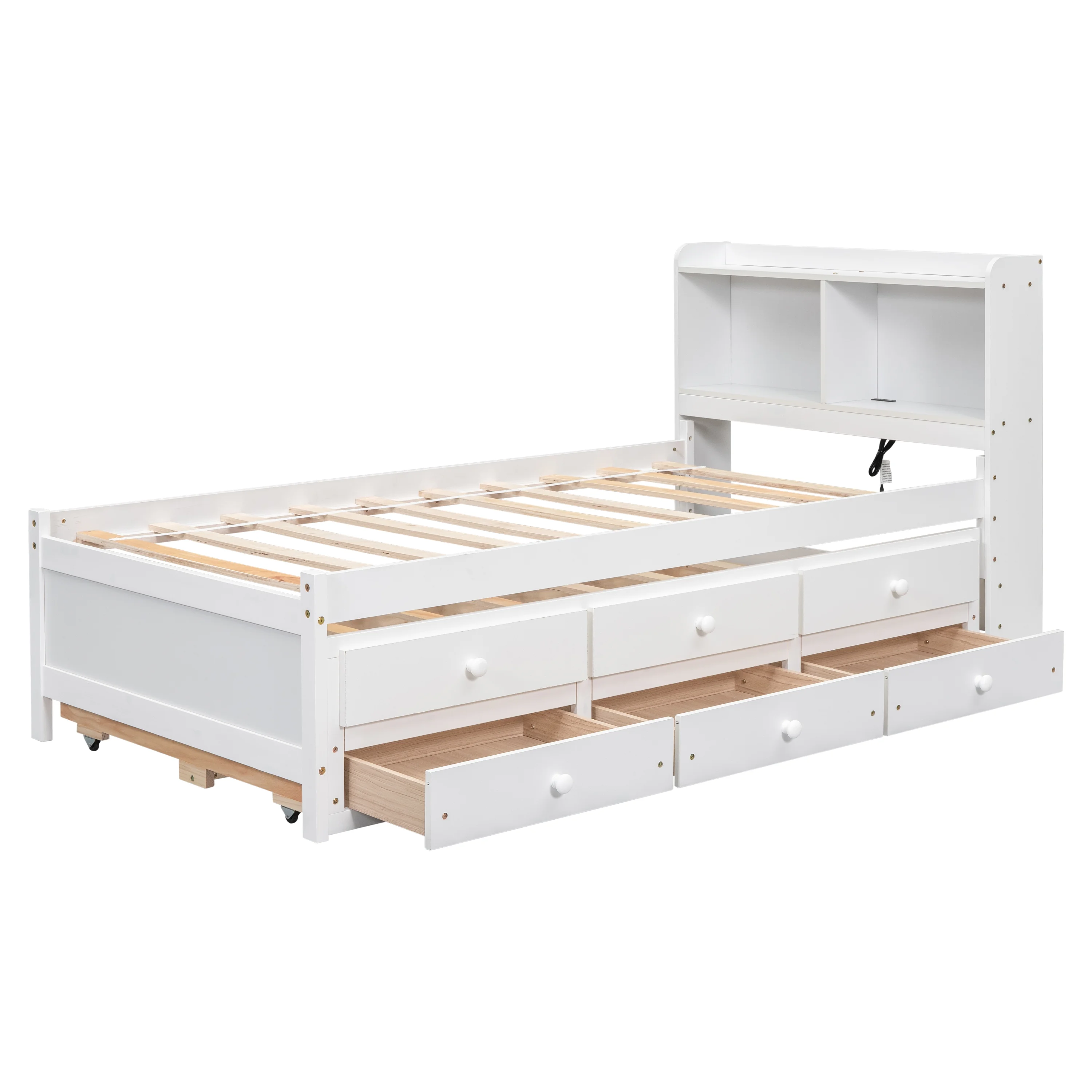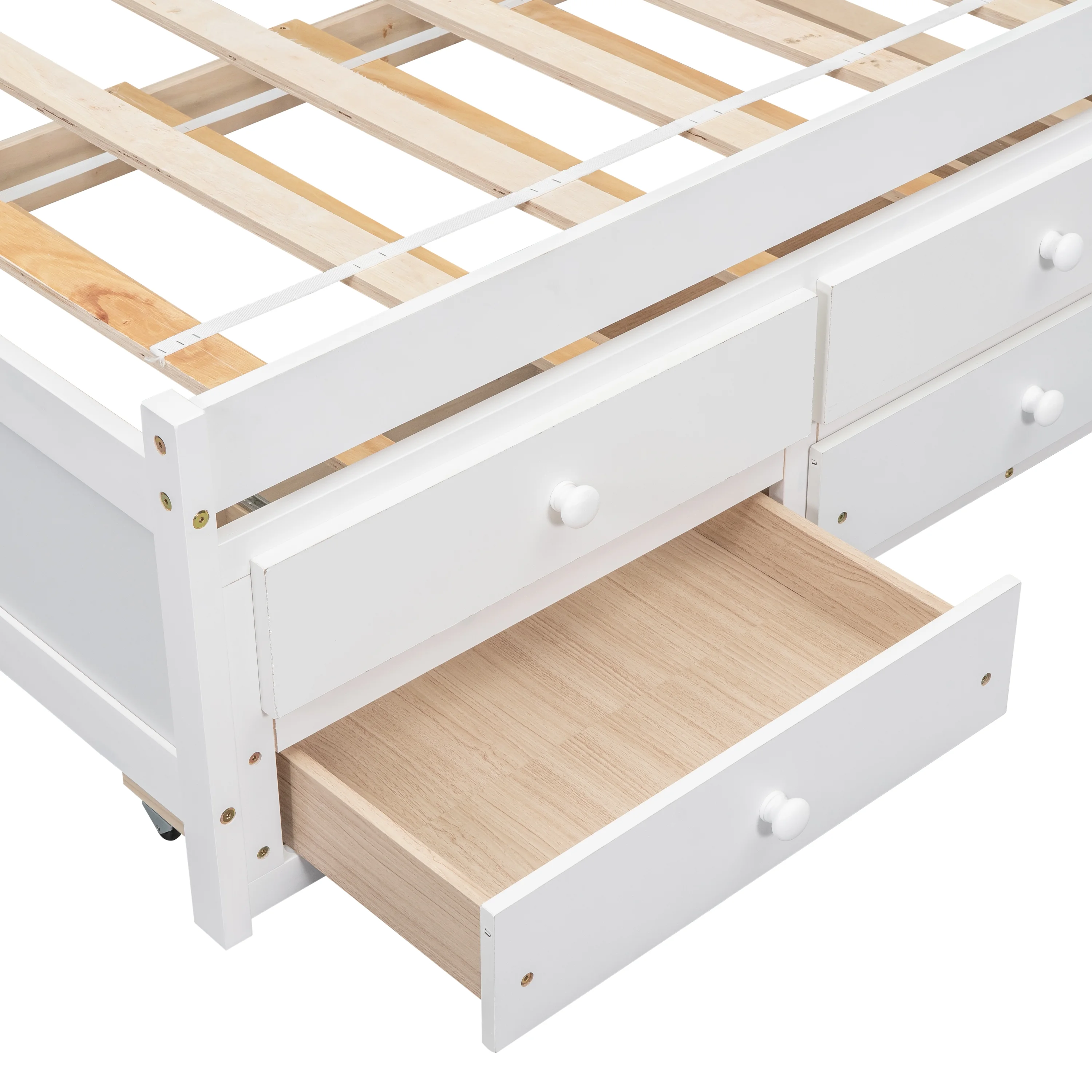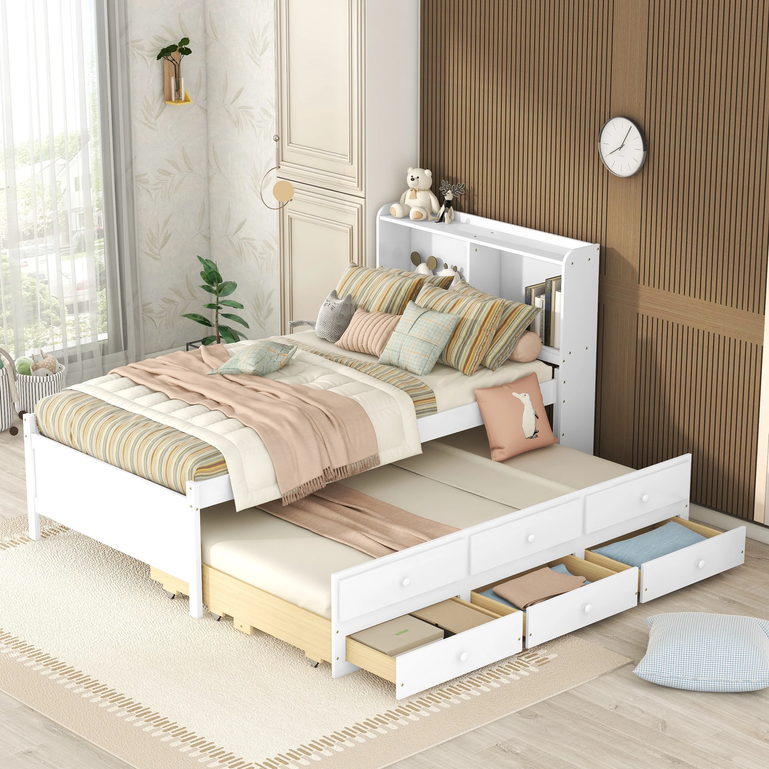 Bedz King Stairway Bunk Beds Twin over Twin with 3 Drawers in the Steps and a Twin Trundle, Dark Cherry