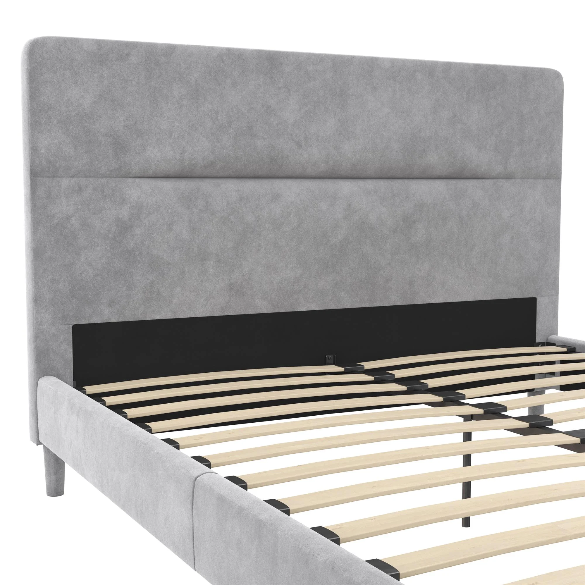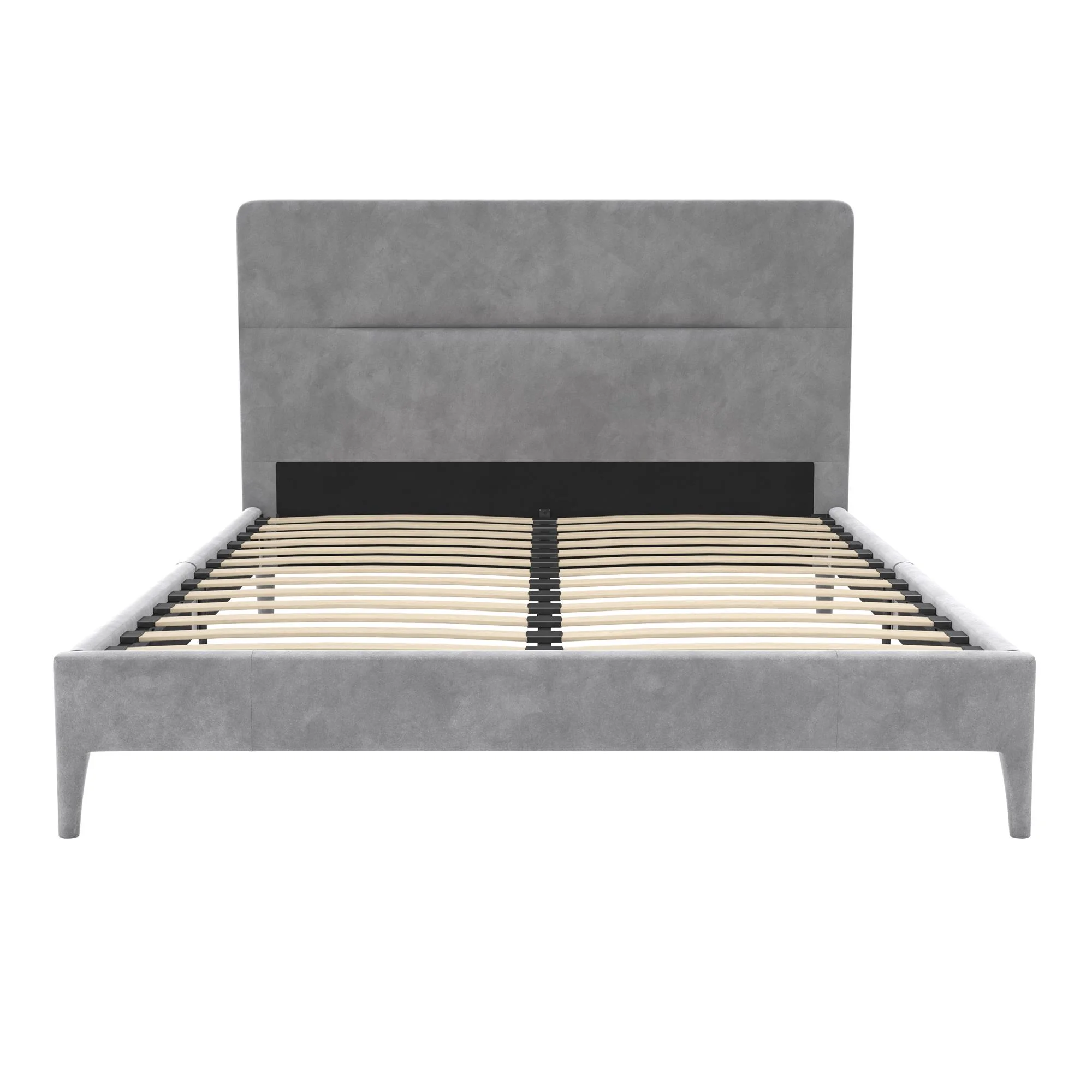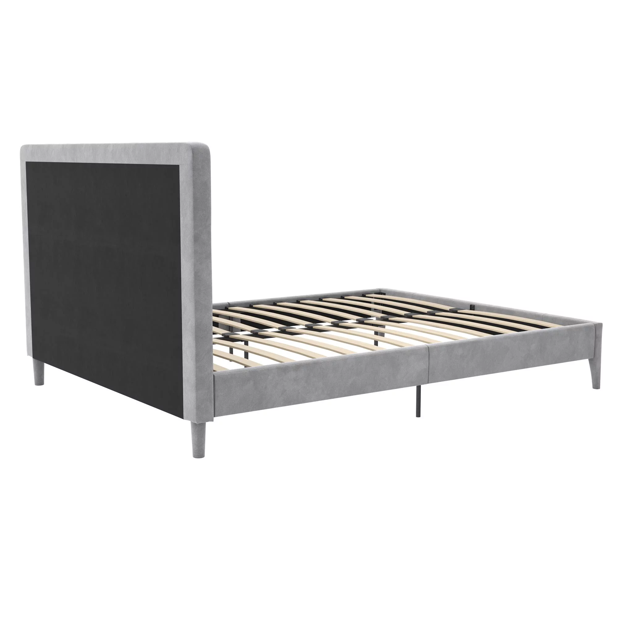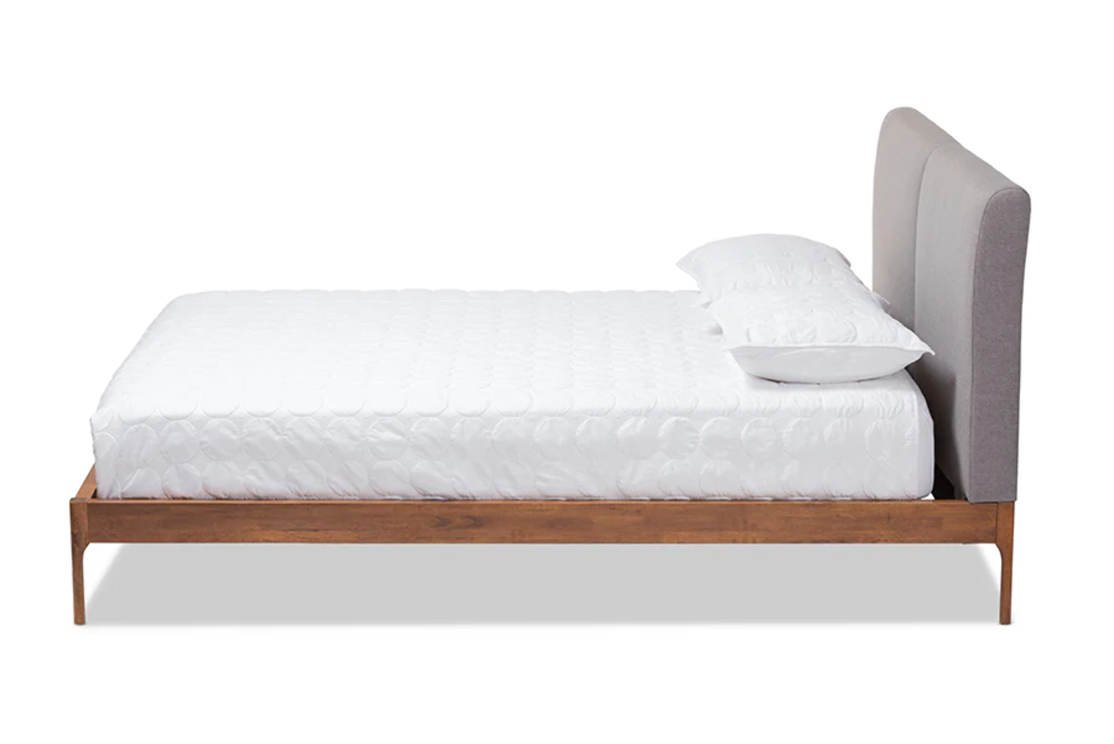 Baxton Studio Aveneil Mid-Century Modern Grey Fabric Upholstered Walnut Finished King Size Platform Bed