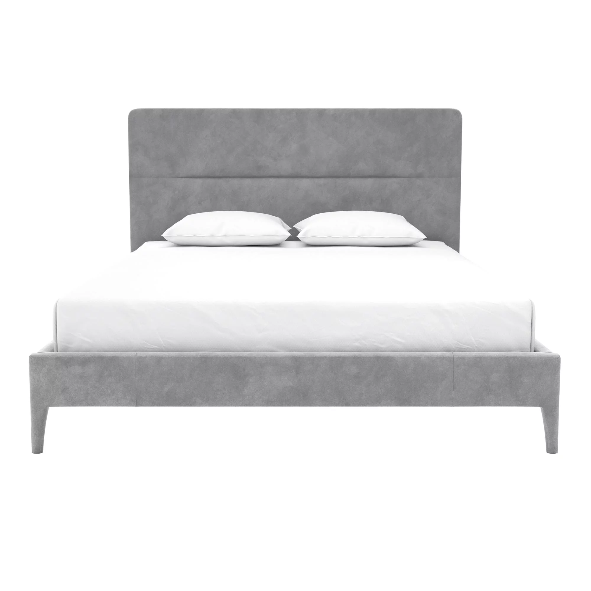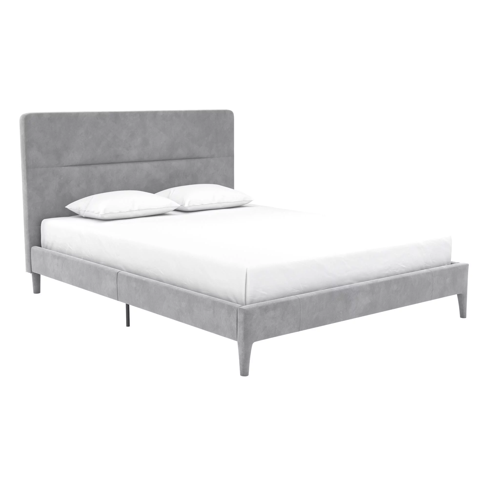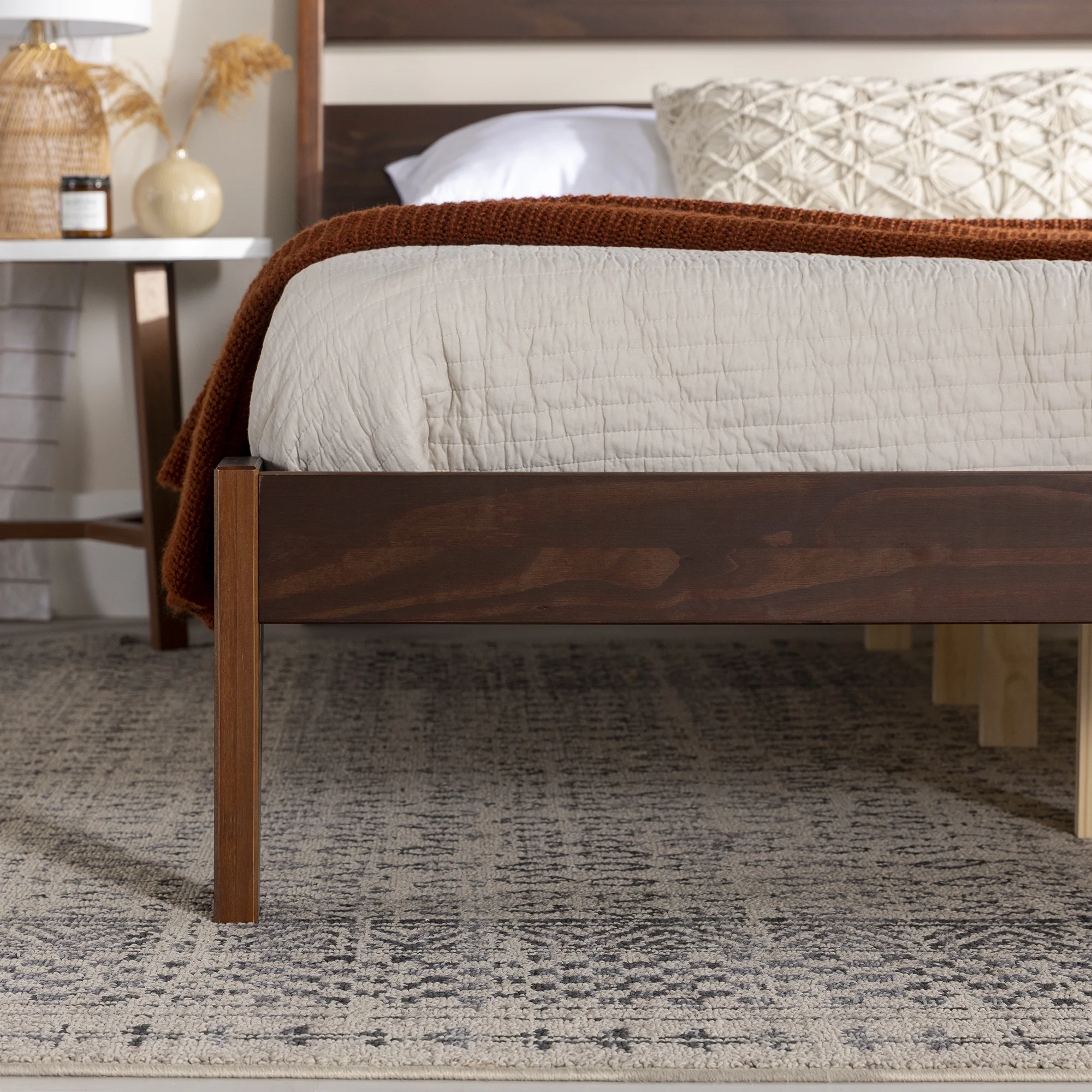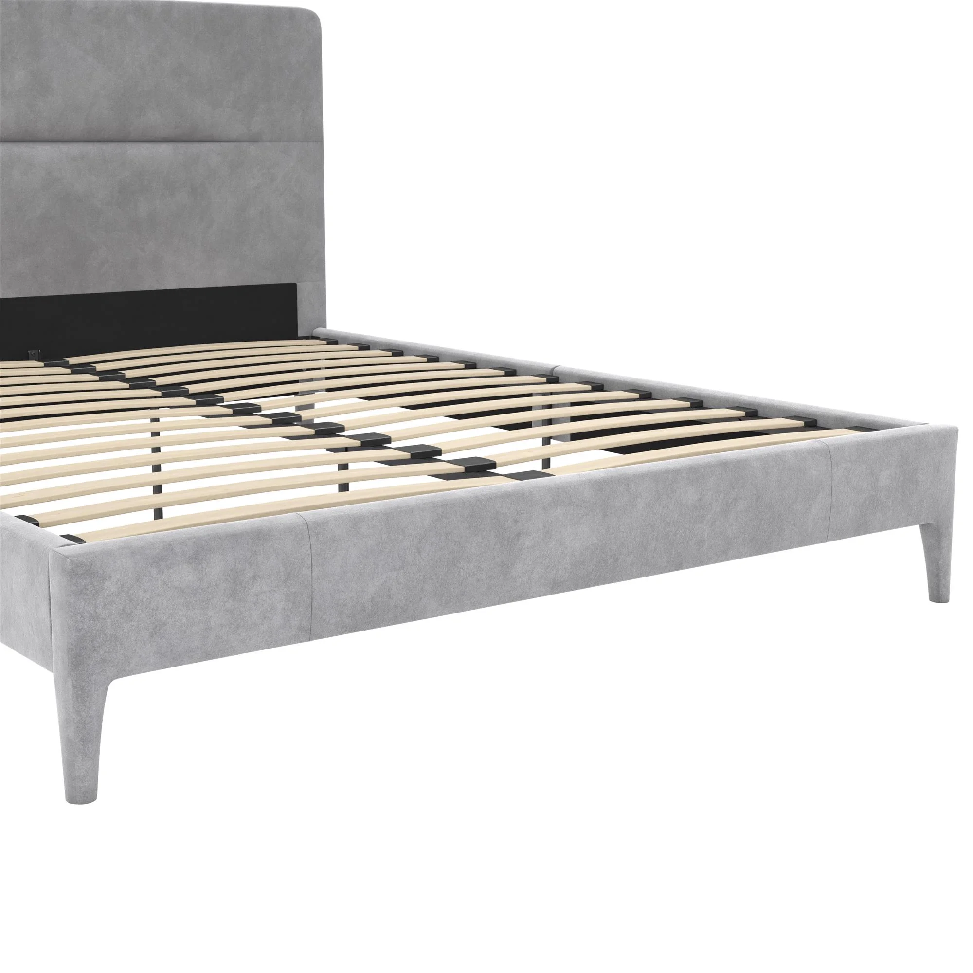 Baxton Studio Aveneil Mid-Century Modern Grey Fabric Upholstered Walnut Finished King Size Platform Bed