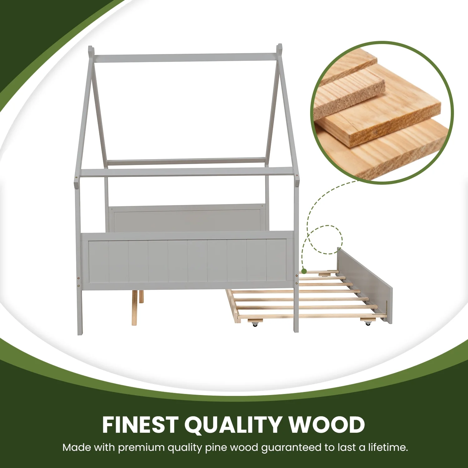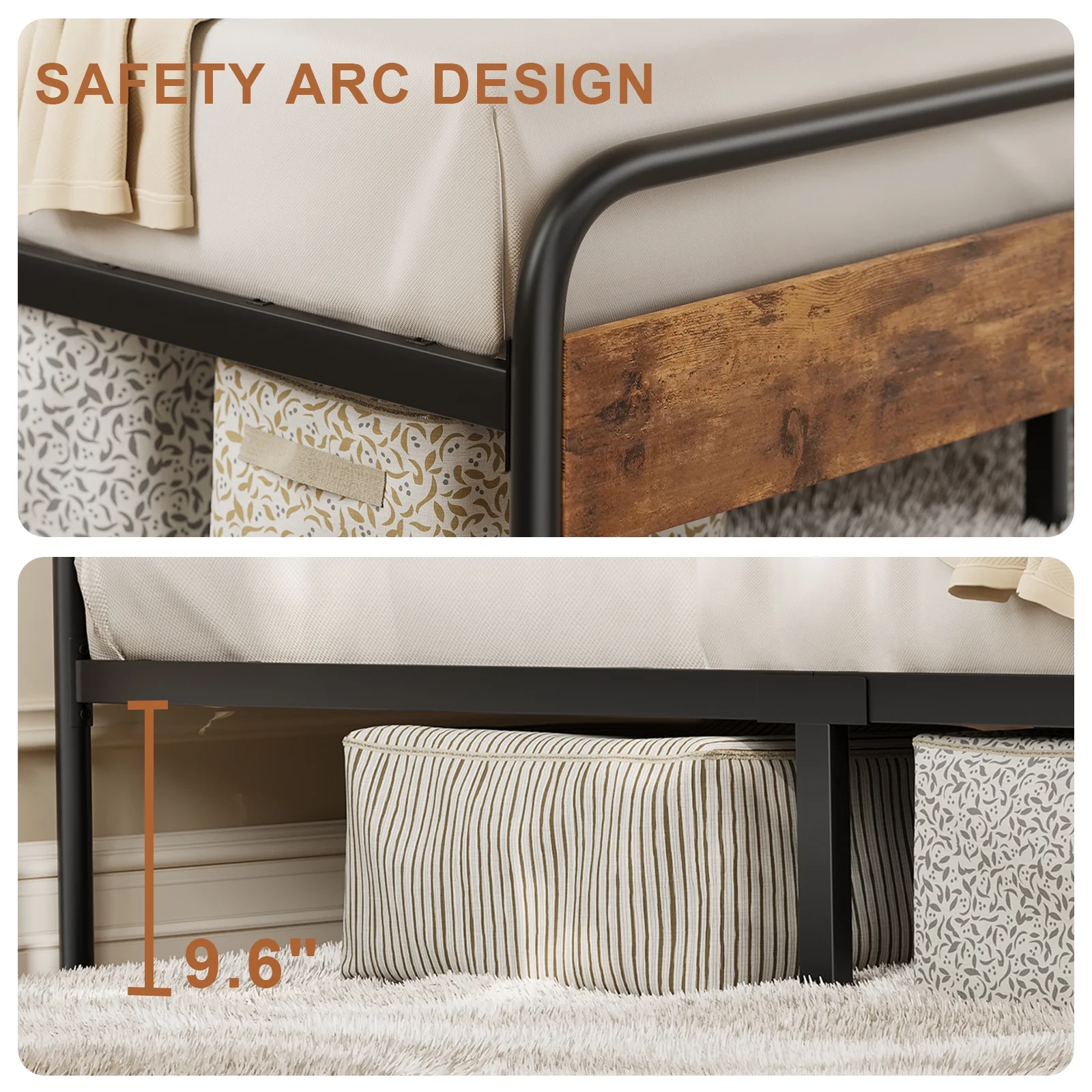 Asofer Queen Size Bed Frame, Wingback Headboard, Wooden Slats, Adapted 8"-12" Mattresses, for Modern Bedroom