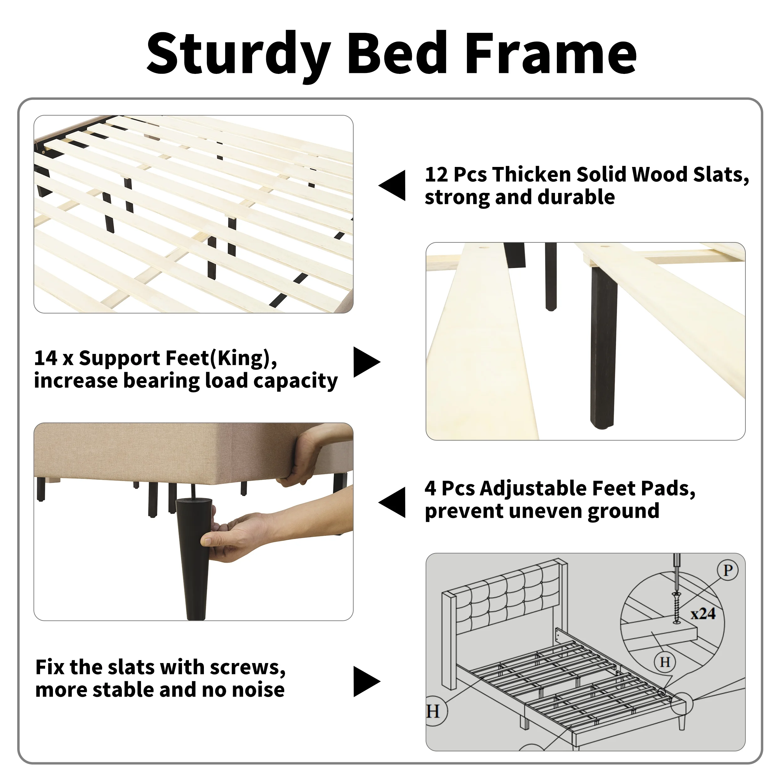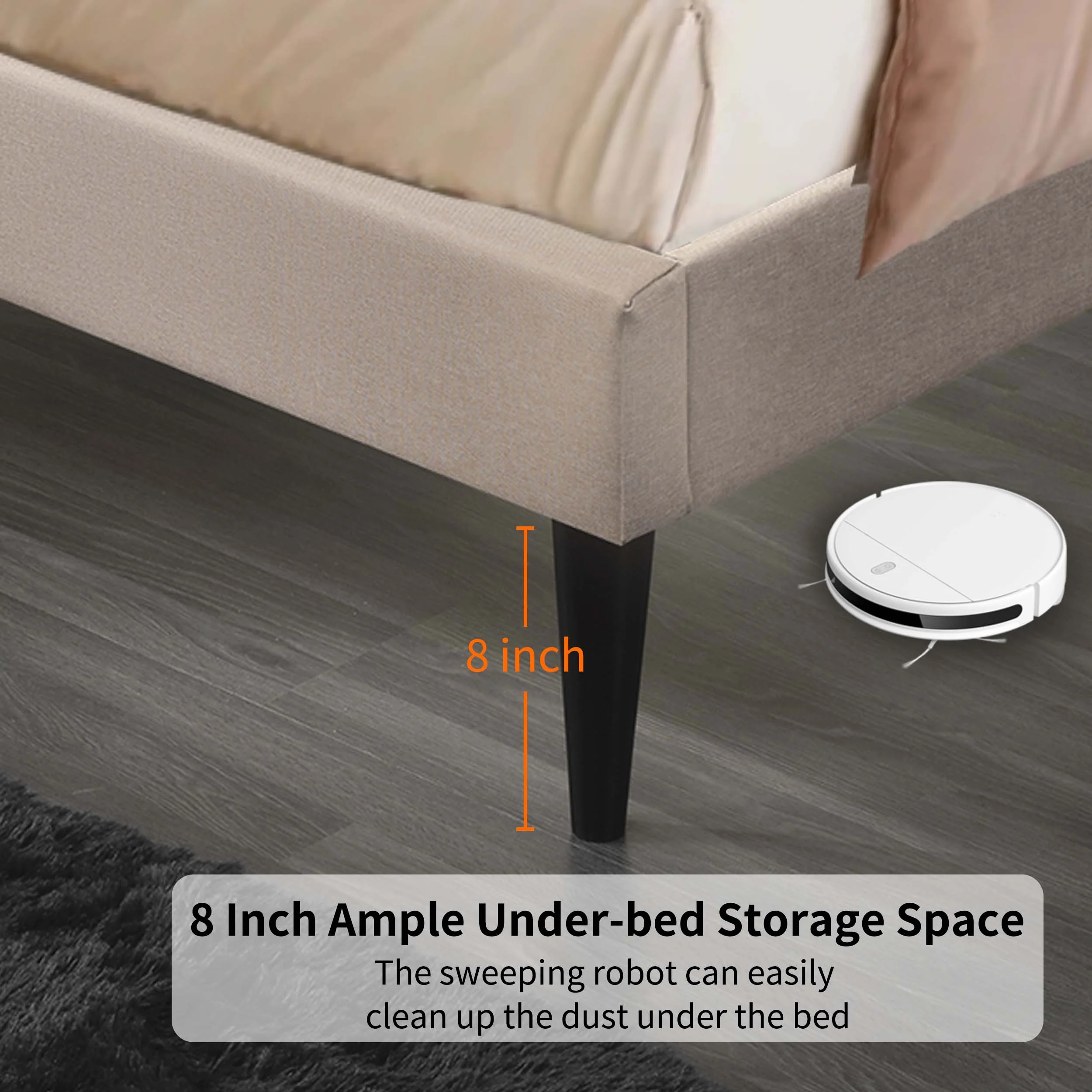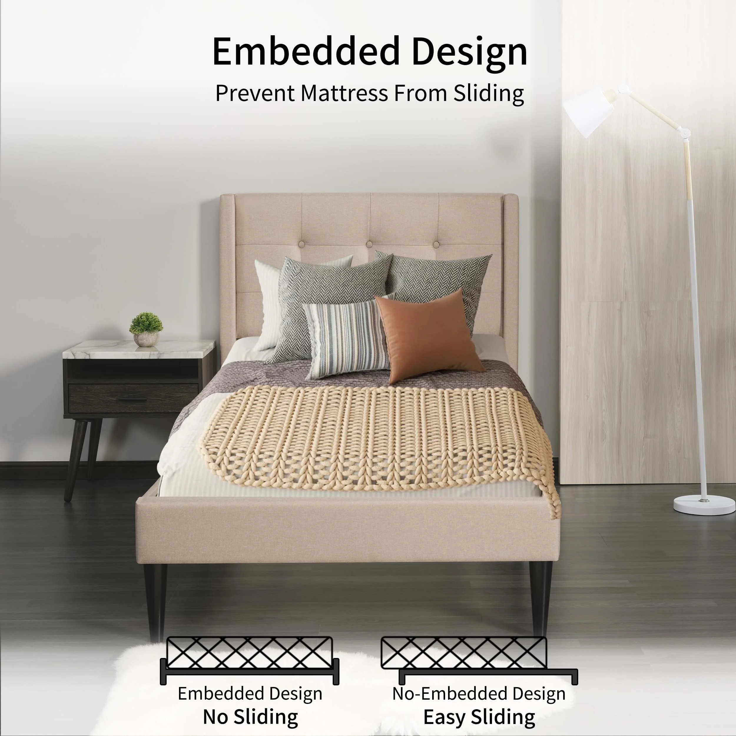 Larksperal Twin Bed Frame with Headboard, Bedroom Upholstered Platform Bed for Kids Teens Adults, Beige