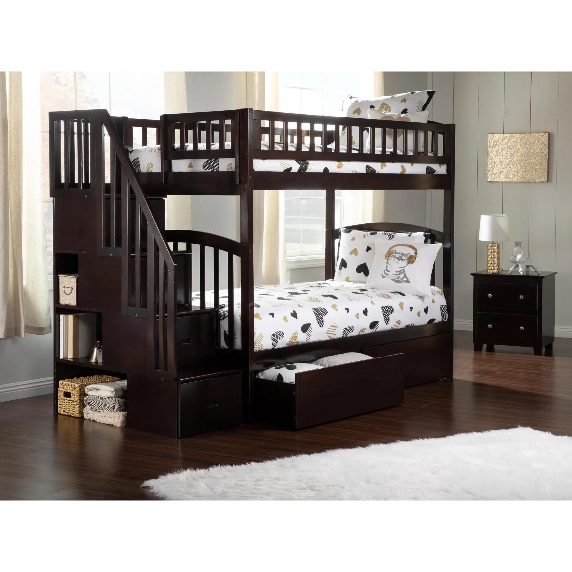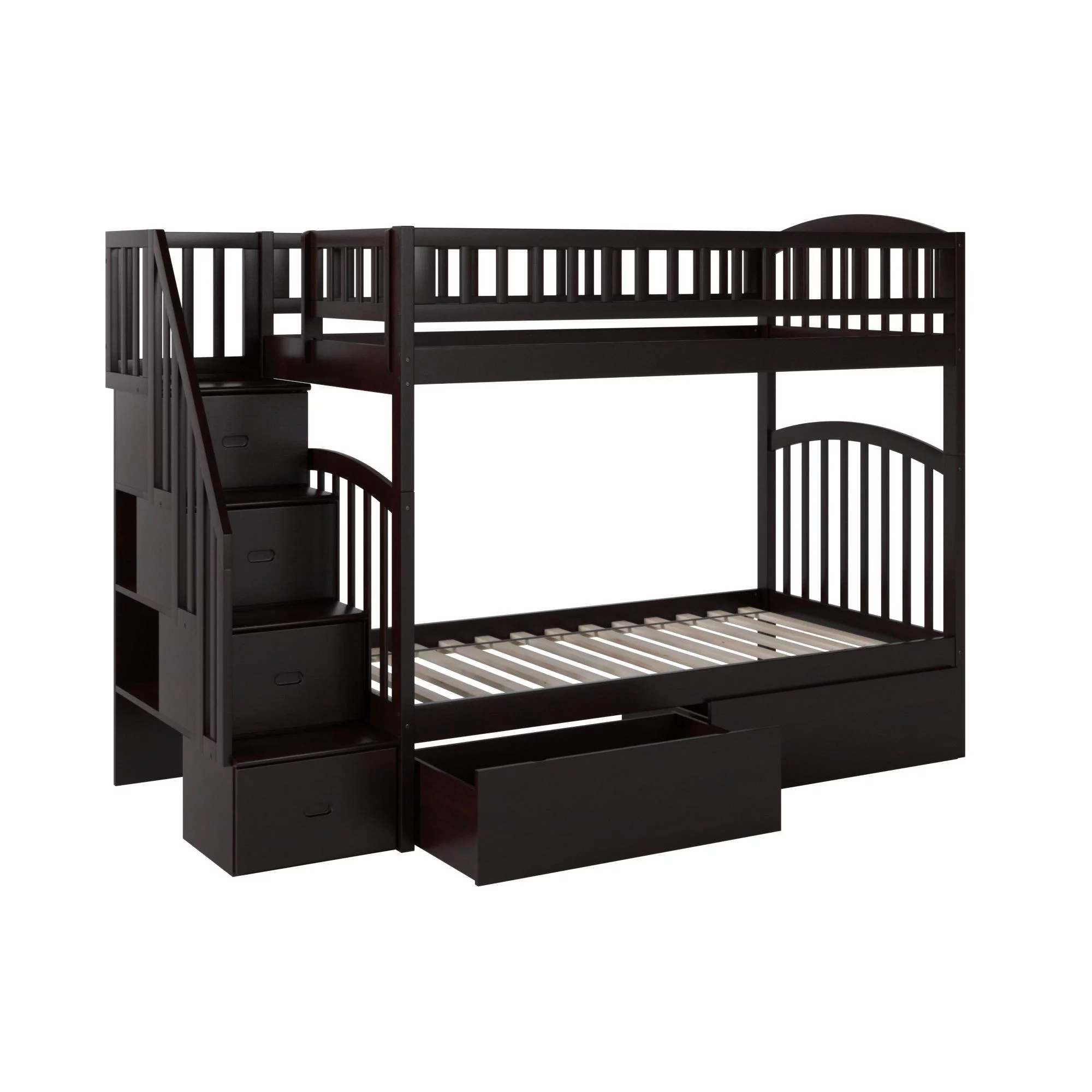 Westbrook Staircase Bunk Twin over Twin with 2 Urban Bed Drawers in Espresso