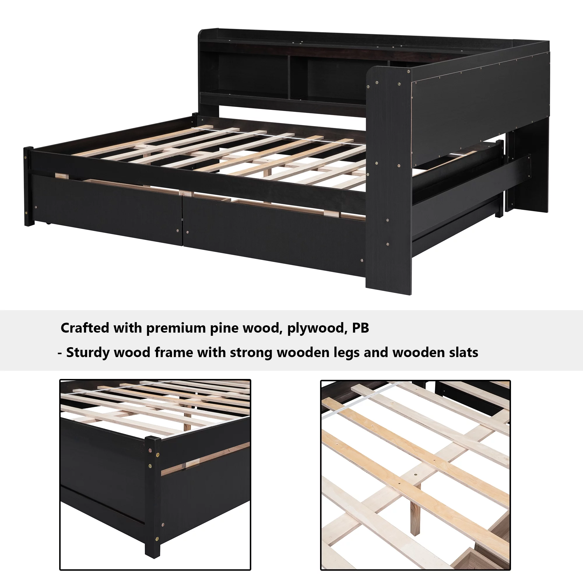 Baxton Studio Aras Contemporary/Modern Wood Storage Platform Bed, King, Ash Walnut