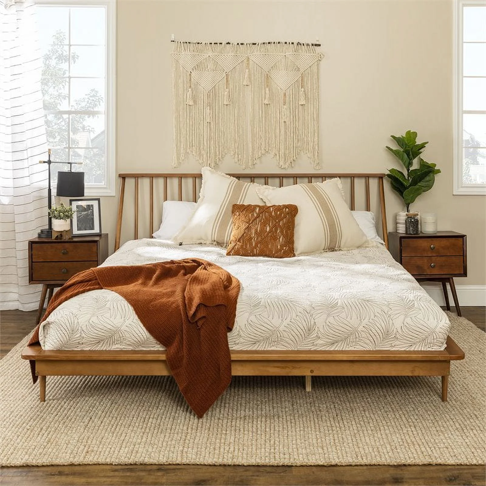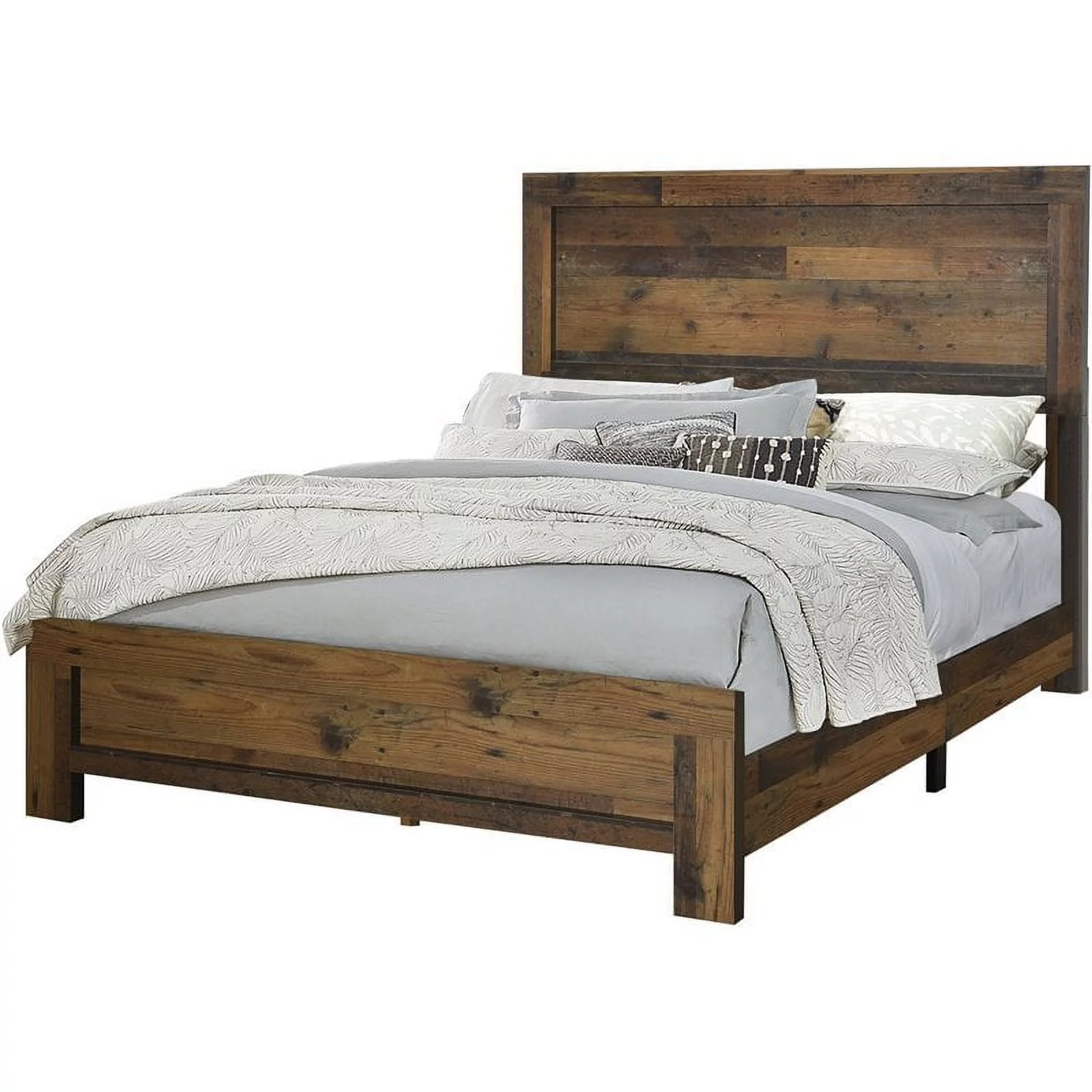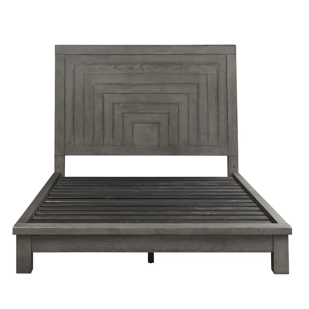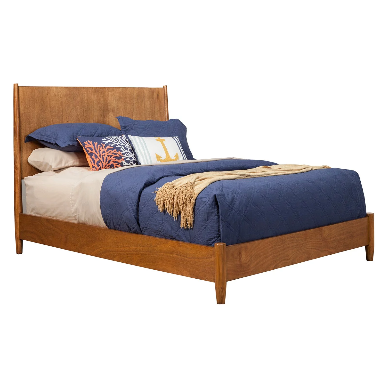 Alpine Furniture Flynn Mid Century Standard King Wood Panel Bed in Acorn (Brown)