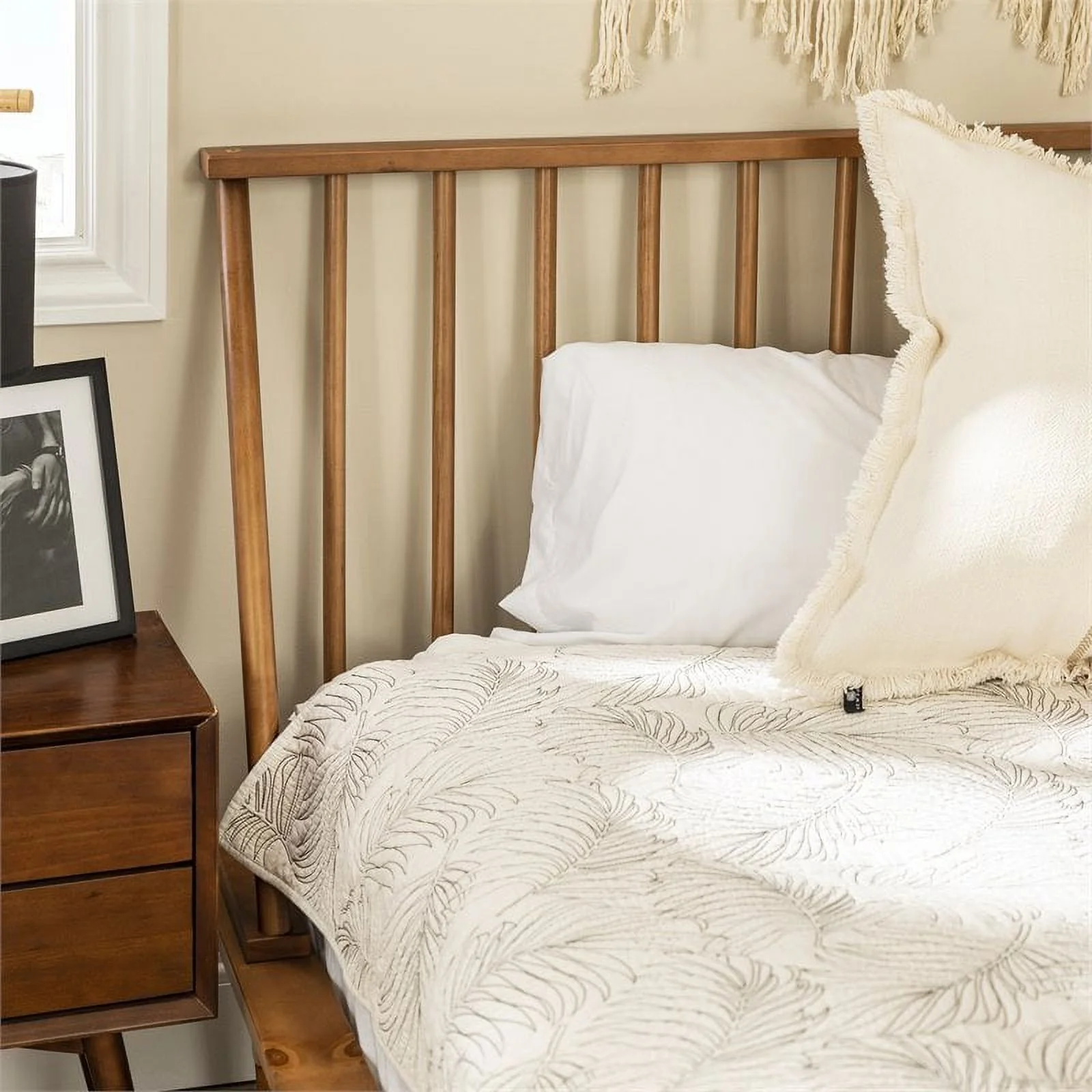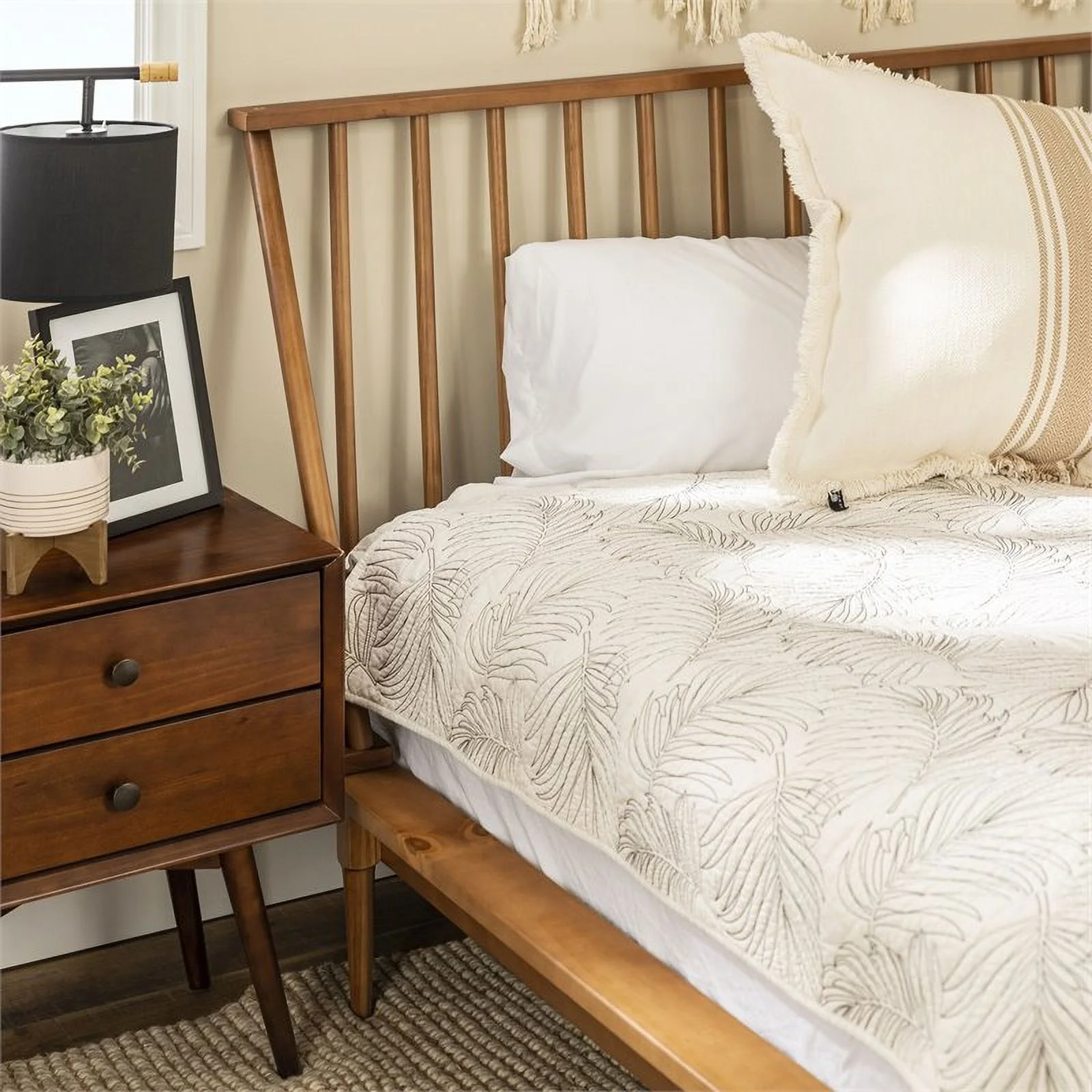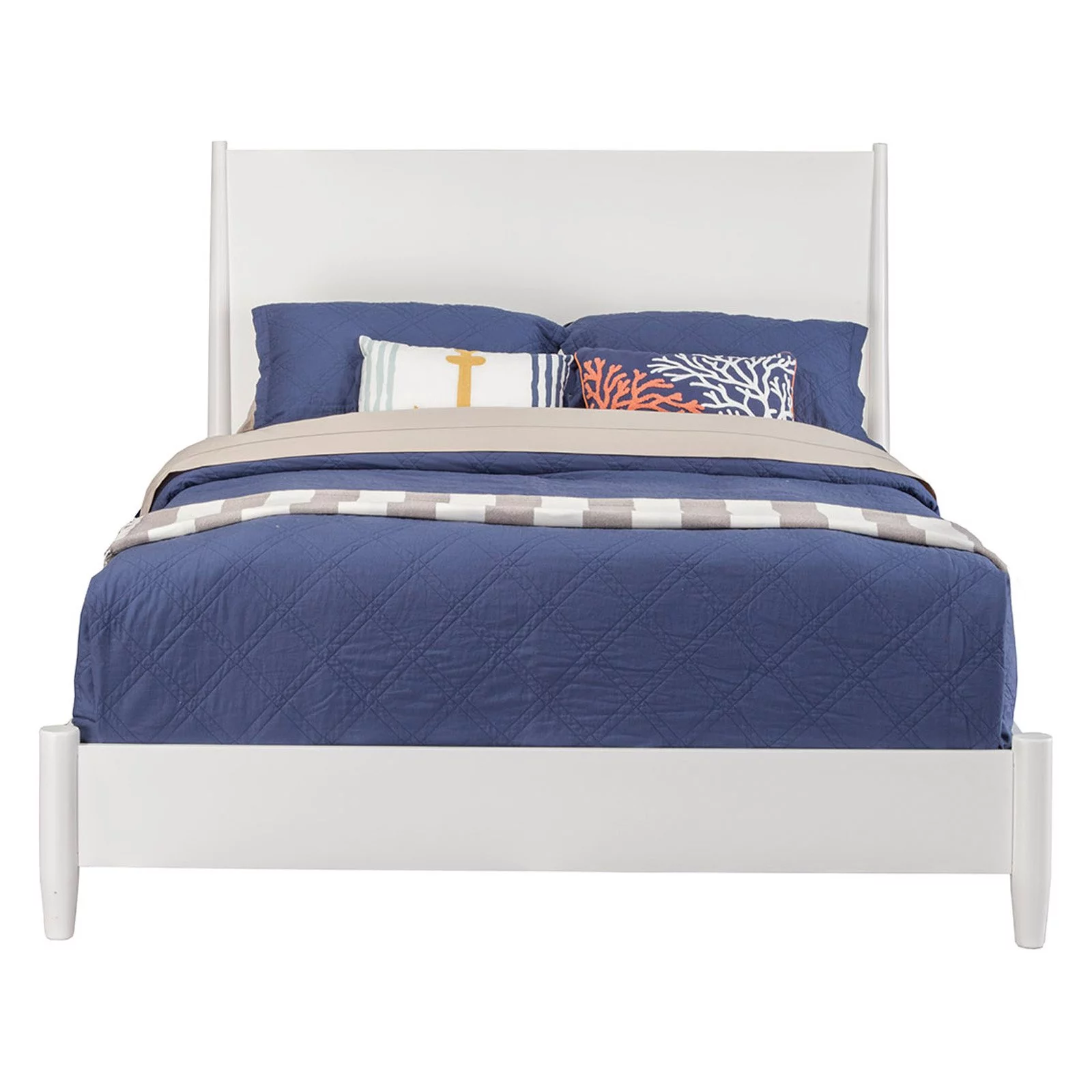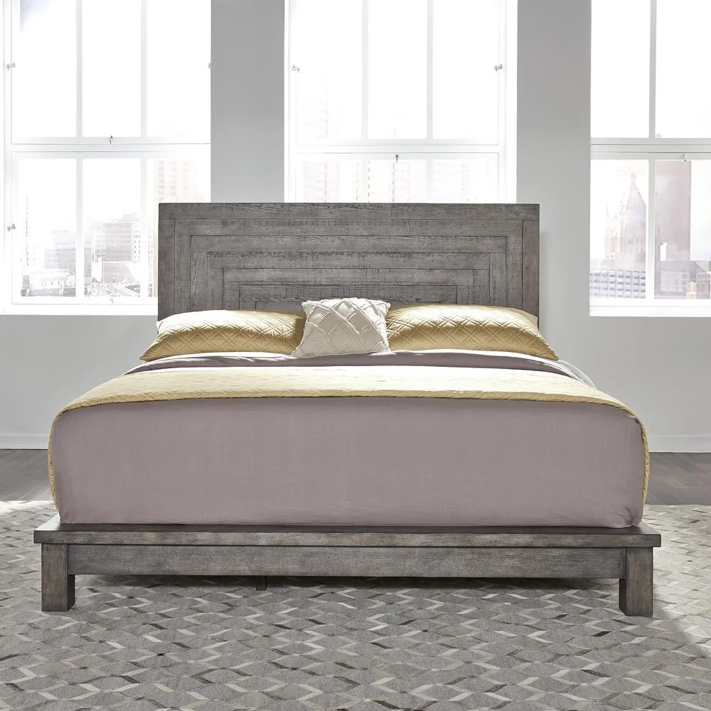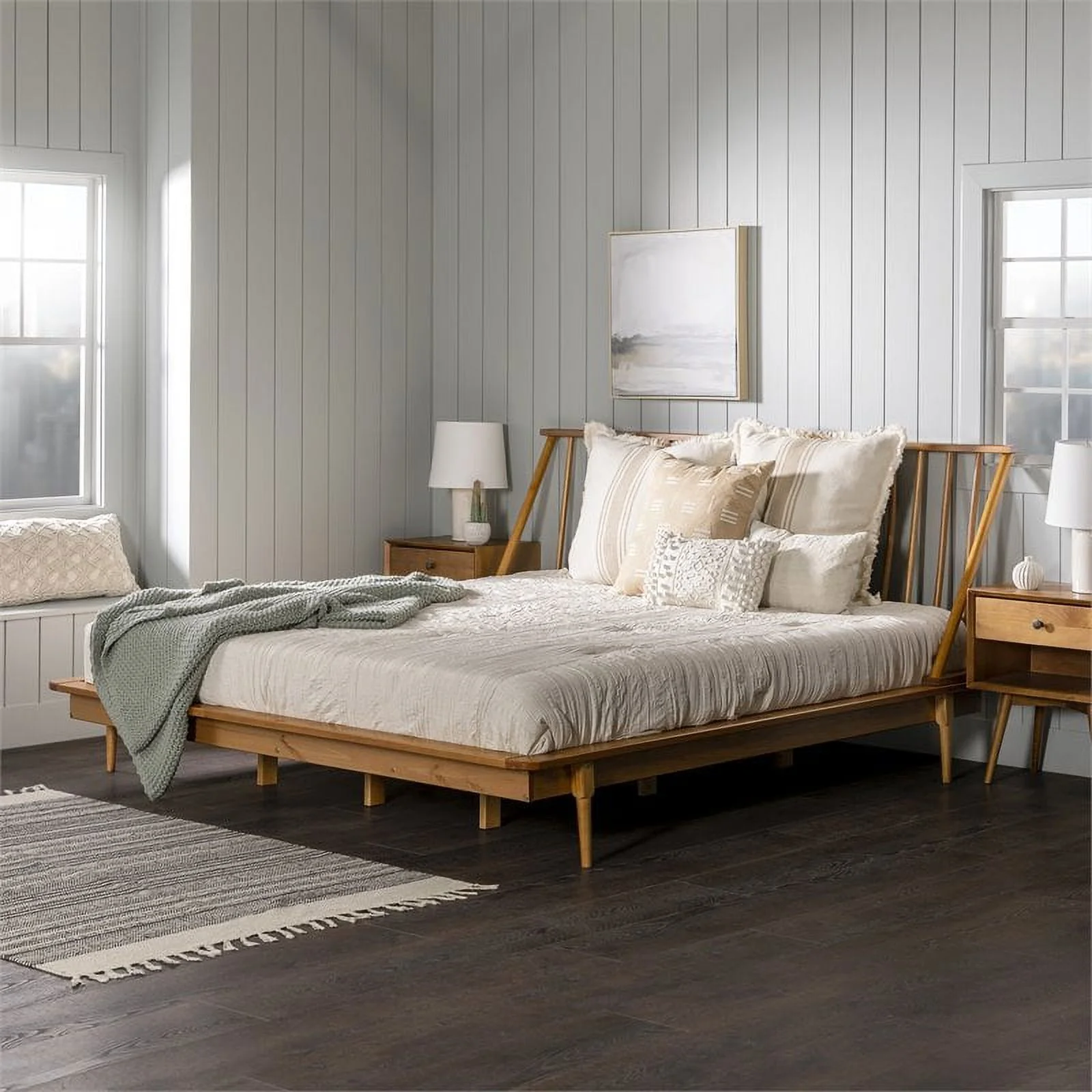 Alpine Furniture Flynn Mid Century Standard King Wood Panel Bed in Acorn (Brown)