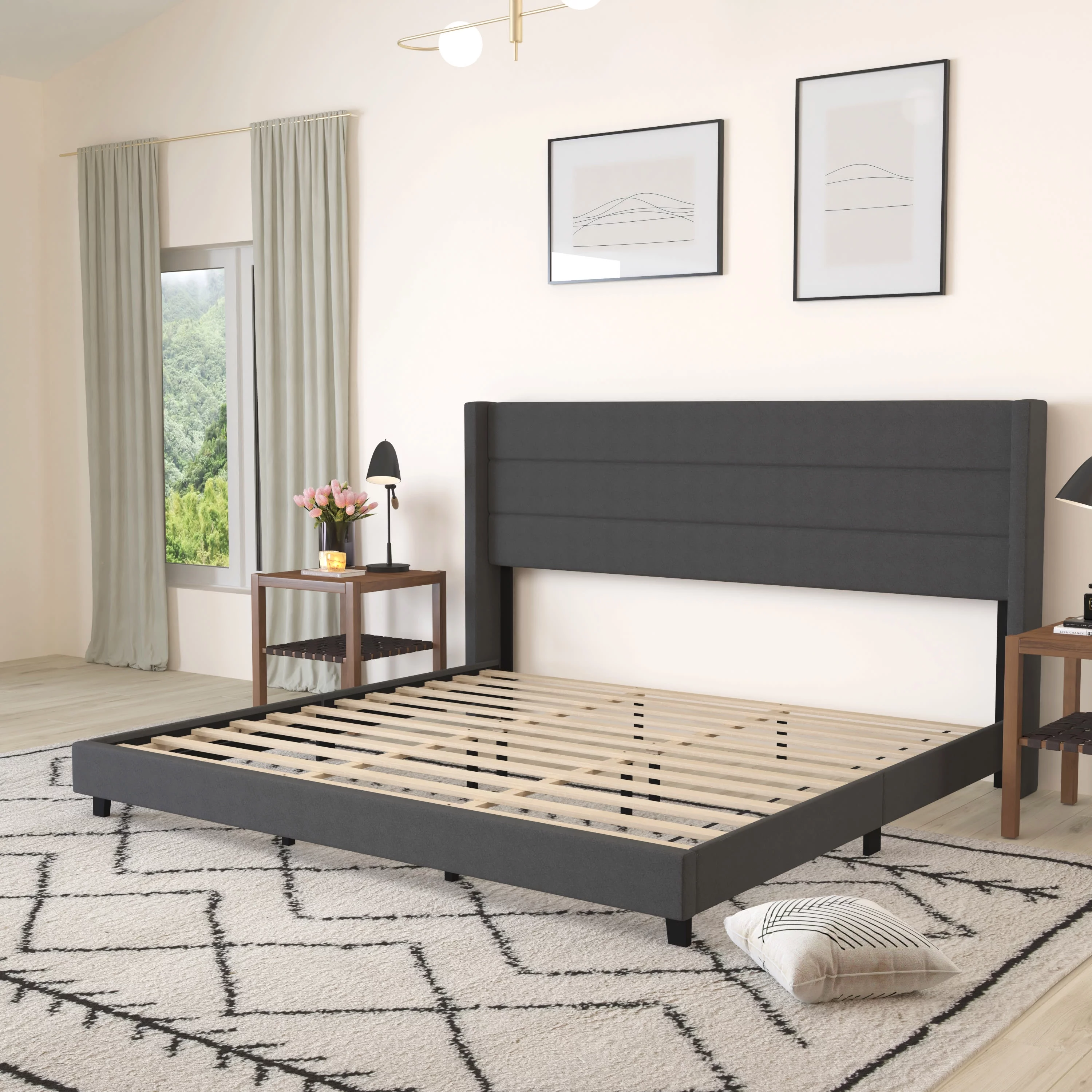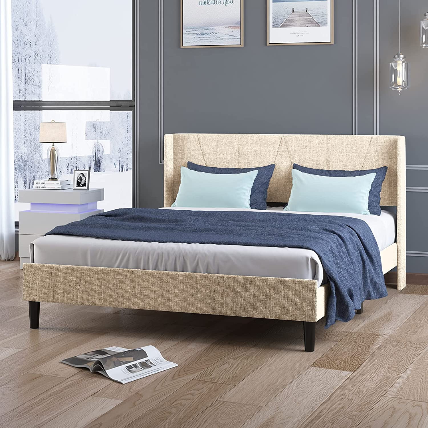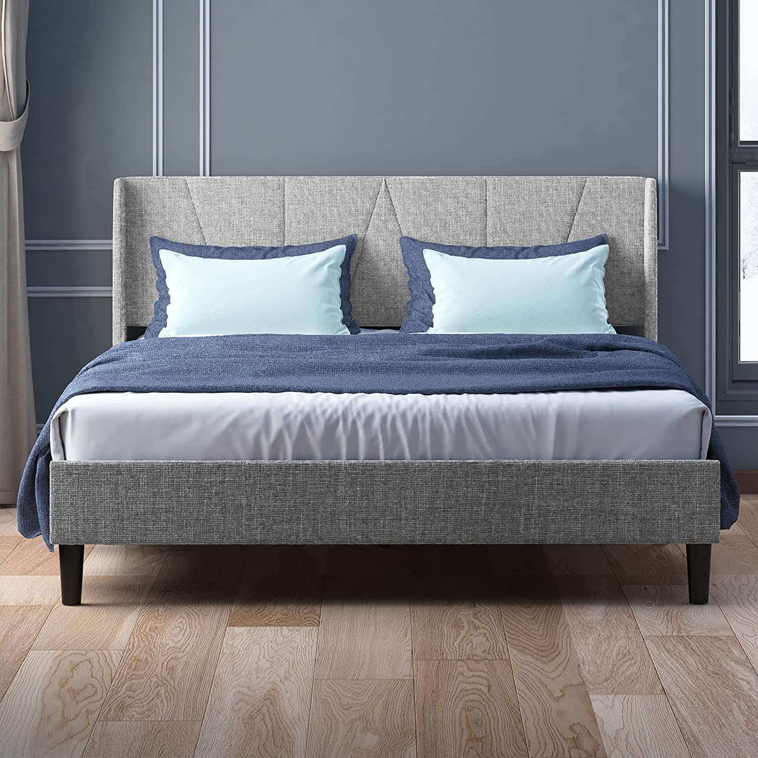 Flash Furniture Addison Collection Modern Fabric Upholstered Platform Bed, Light Grey, King