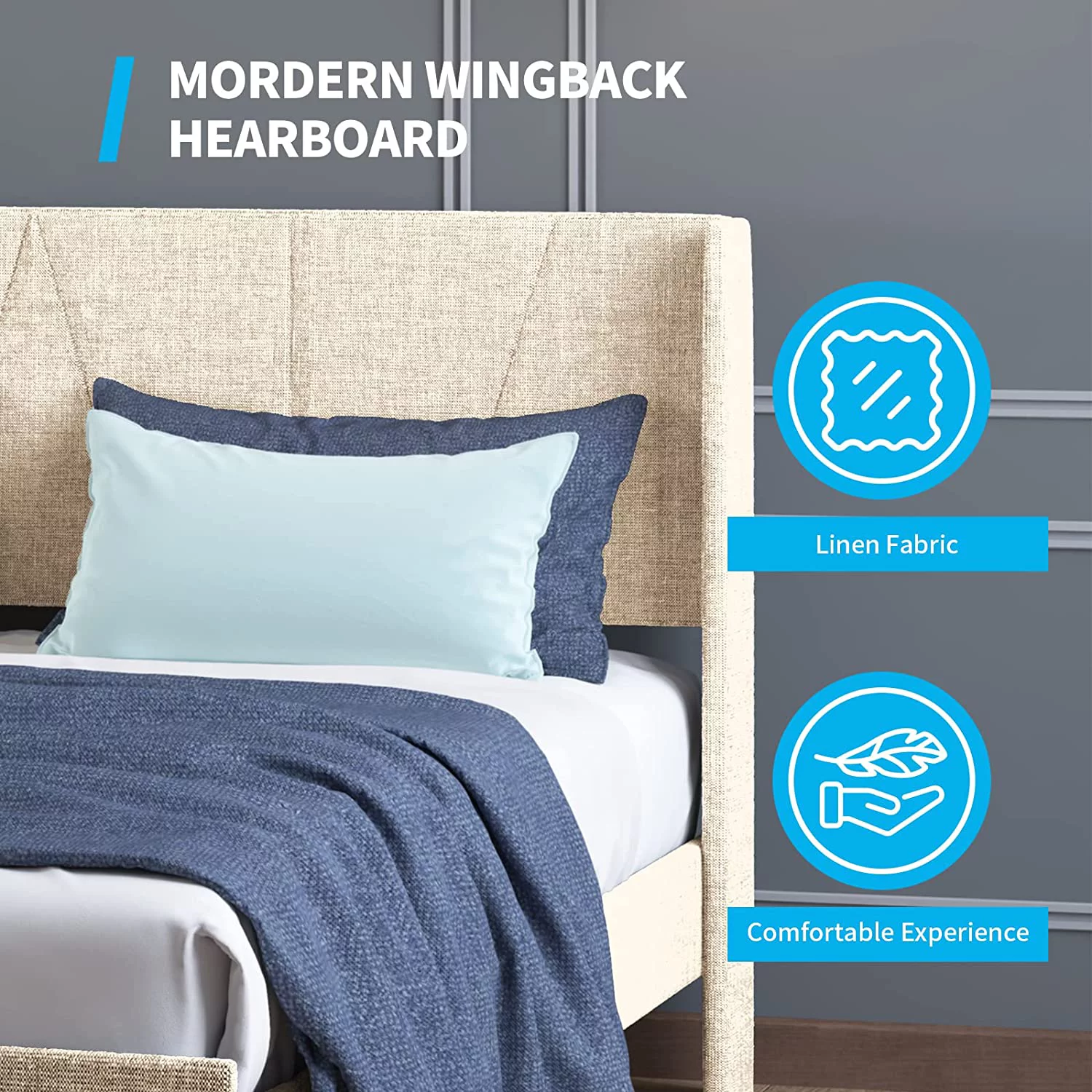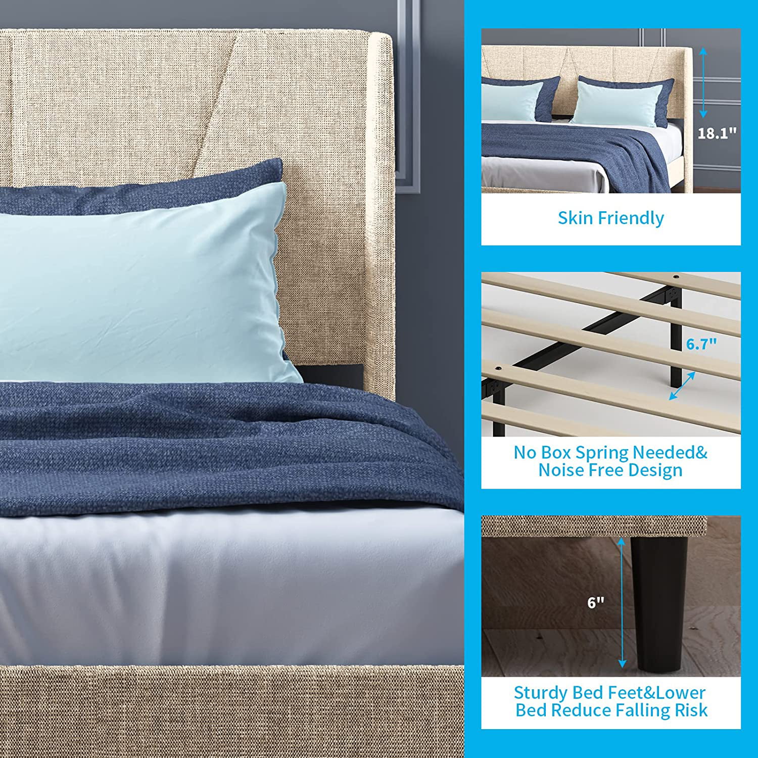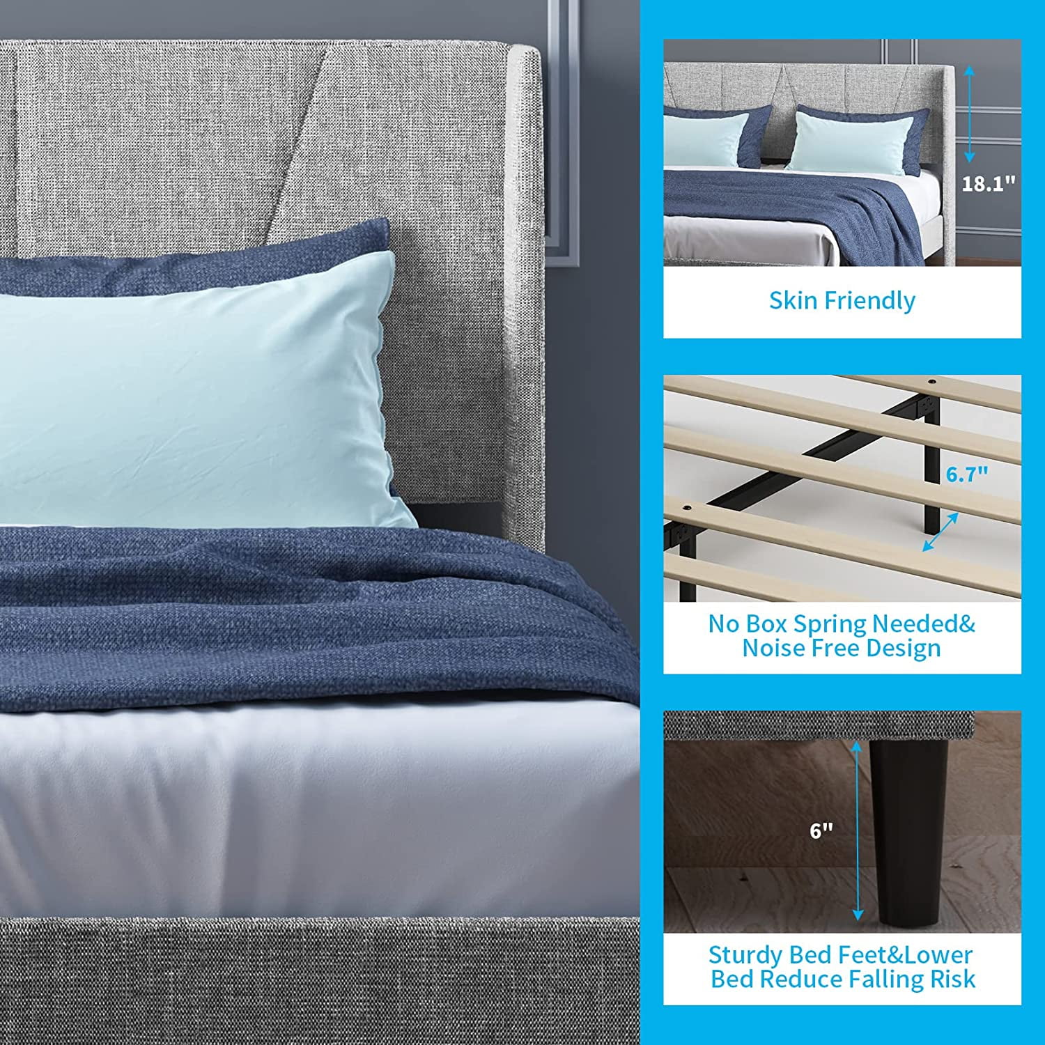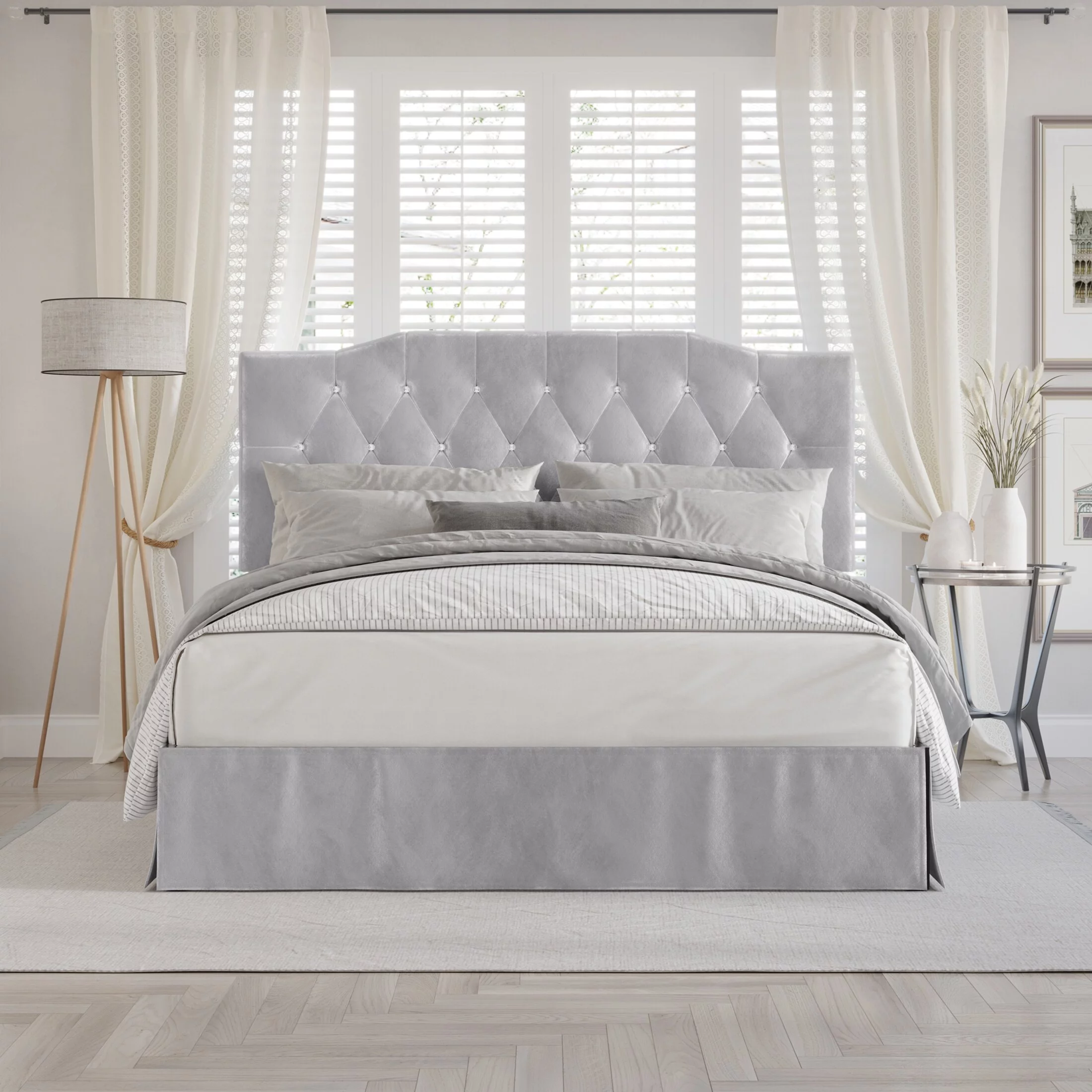 Flash Furniture Addison Collection Modern Fabric Upholstered Platform Bed, Light Grey, King
