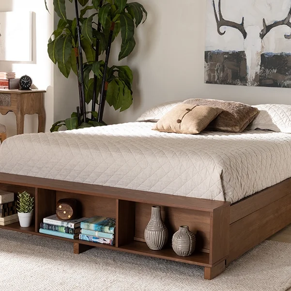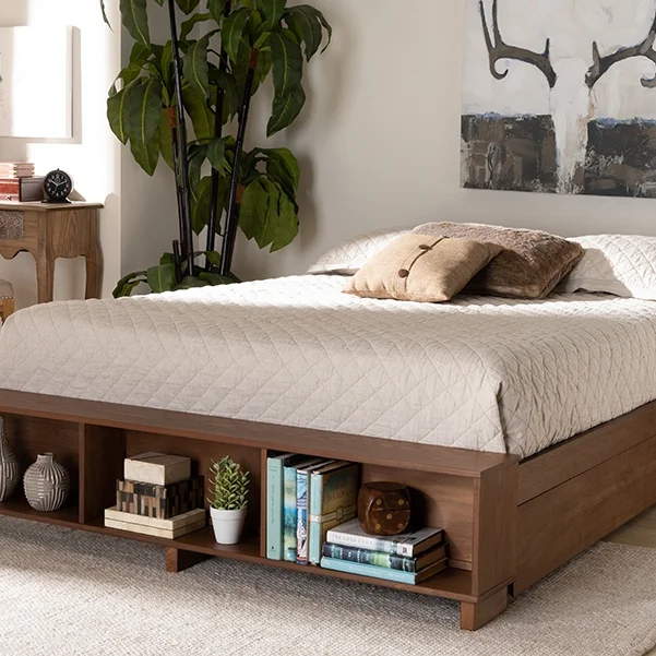 Baxton Studio Emiko Modern and Contemporary Walnut Brown Finished Wood King Size Platform Bed