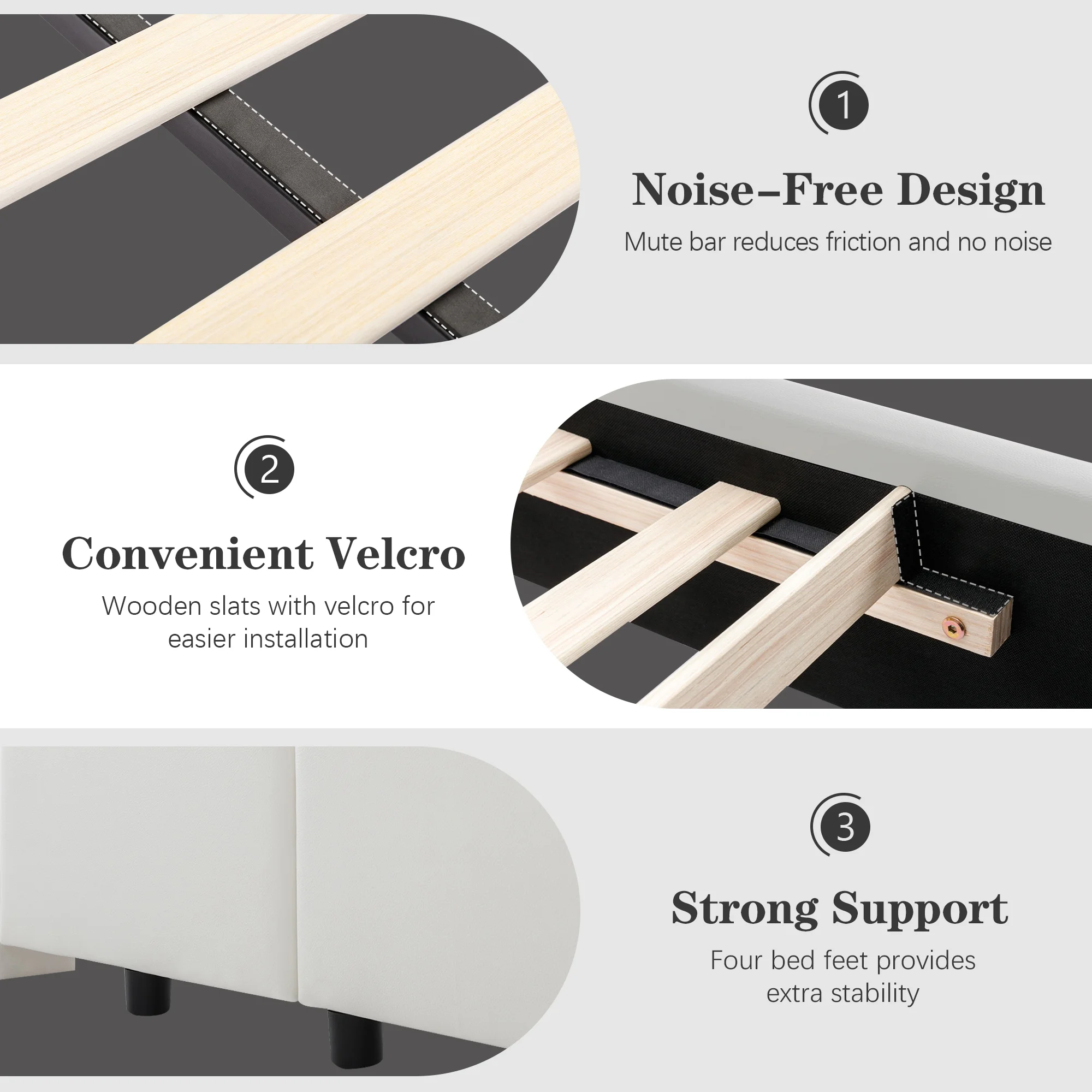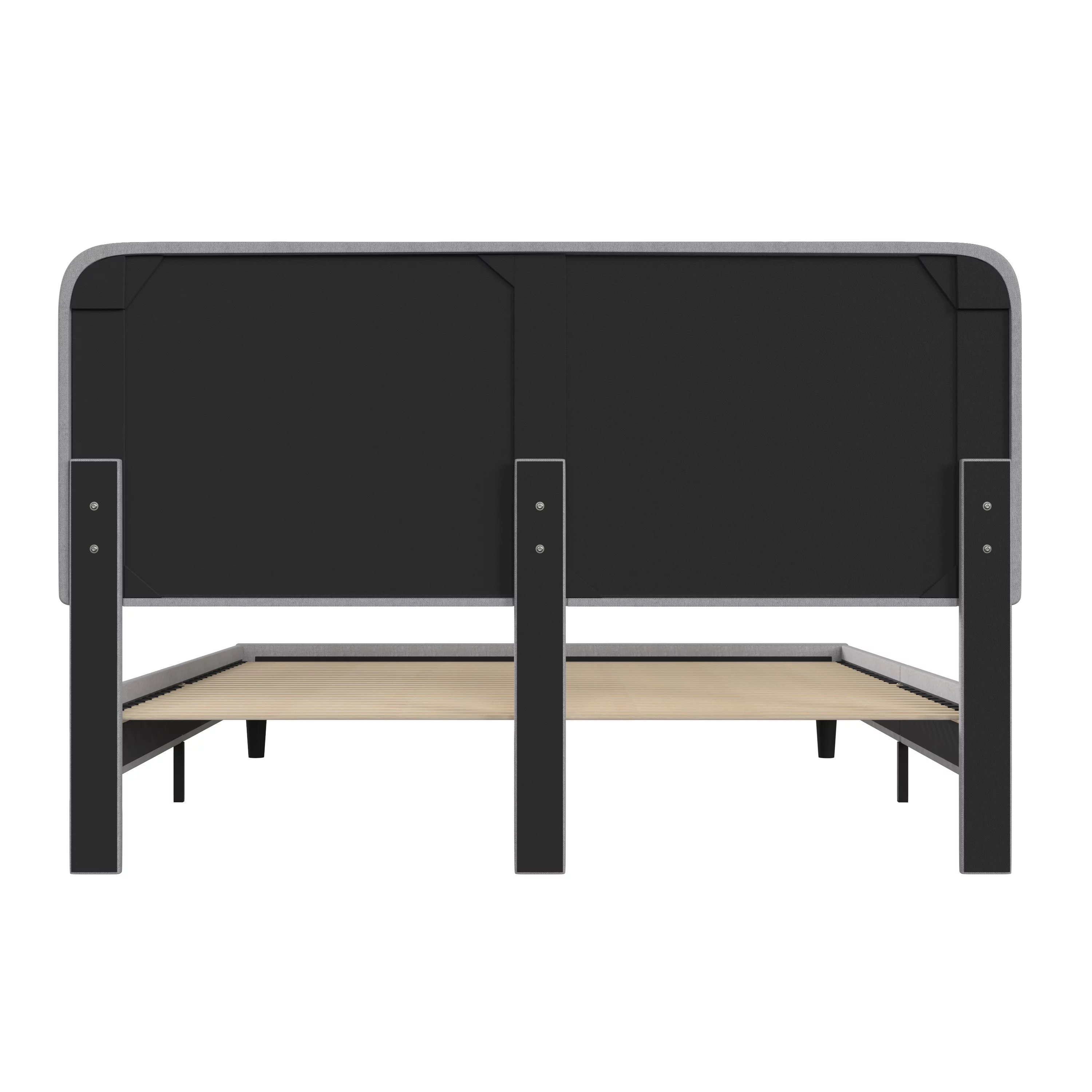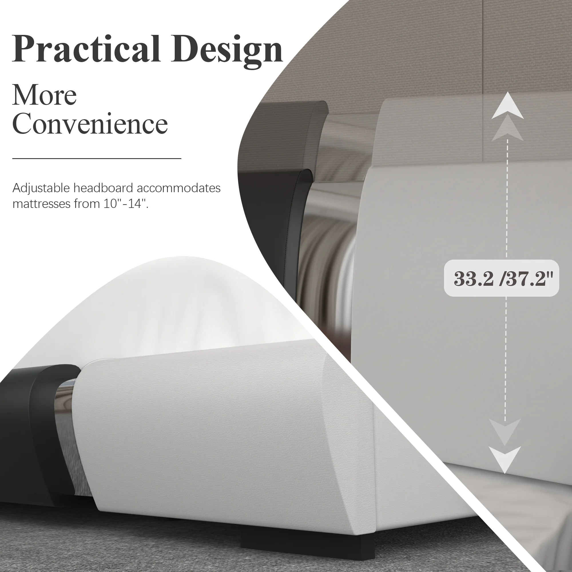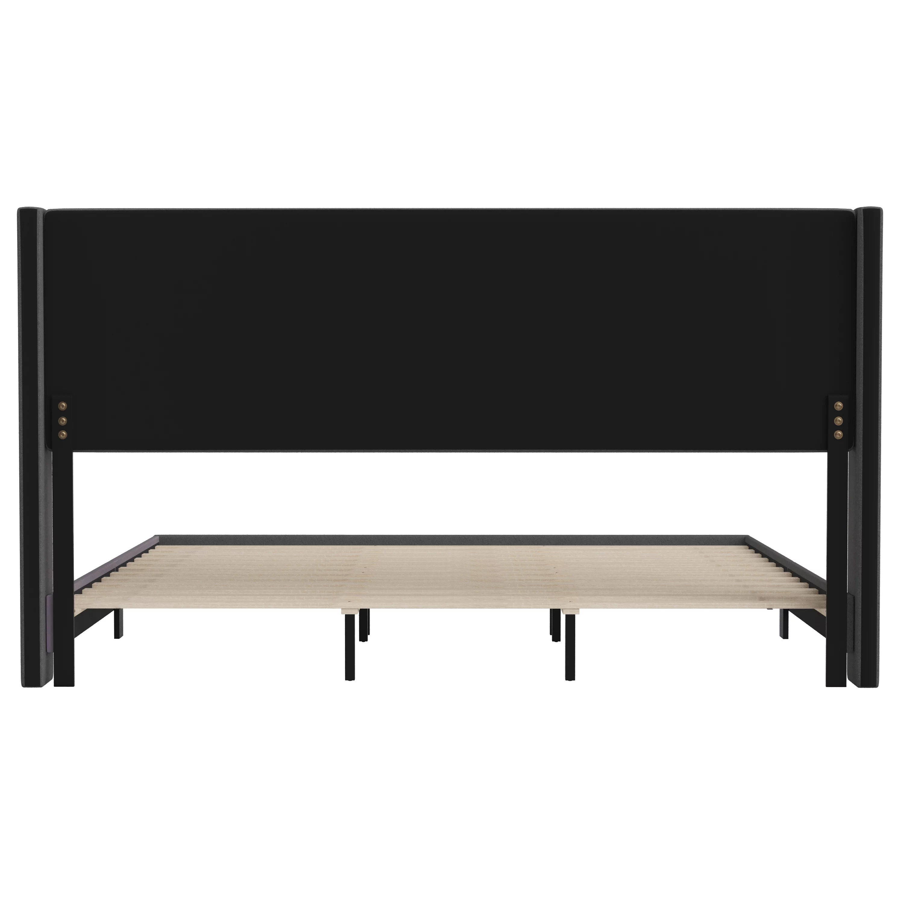 Kallabe Queen Size Modern Bed Frame with Iron Pieces Decor and Faux Leather Headboard, Black & White