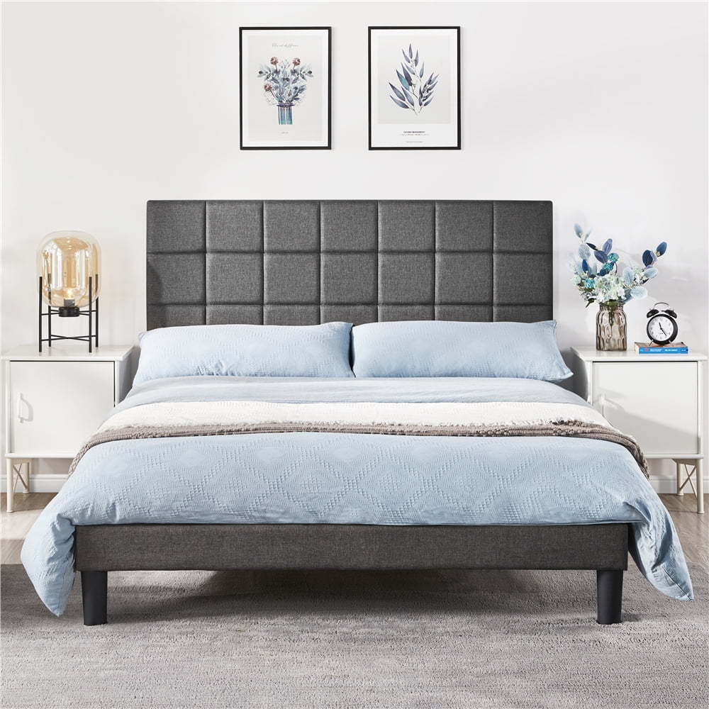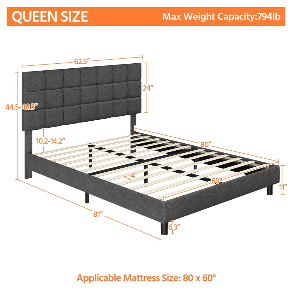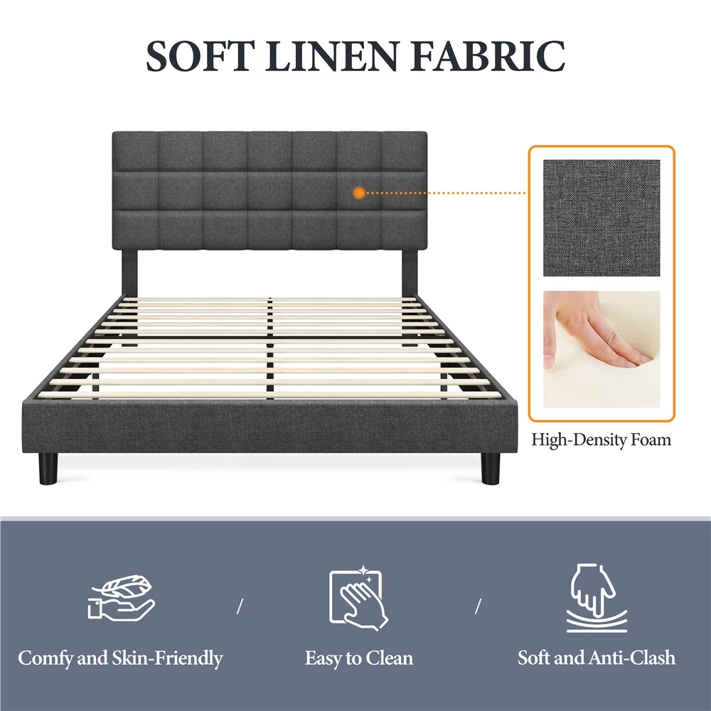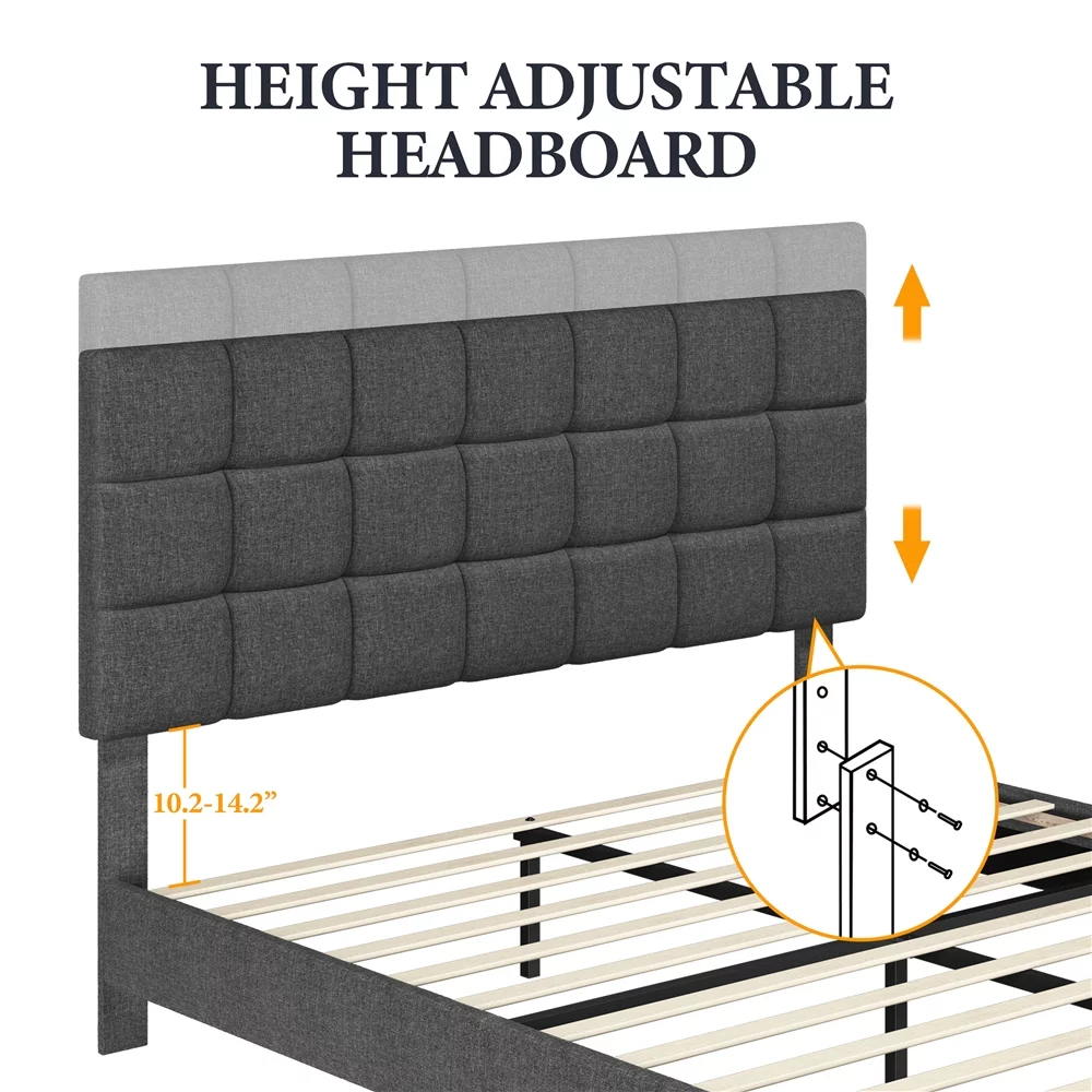 Yaheetech Modern Upholstered Platform Bed with Adjustable Tufted Headboard, Queen Size, Dark Gray