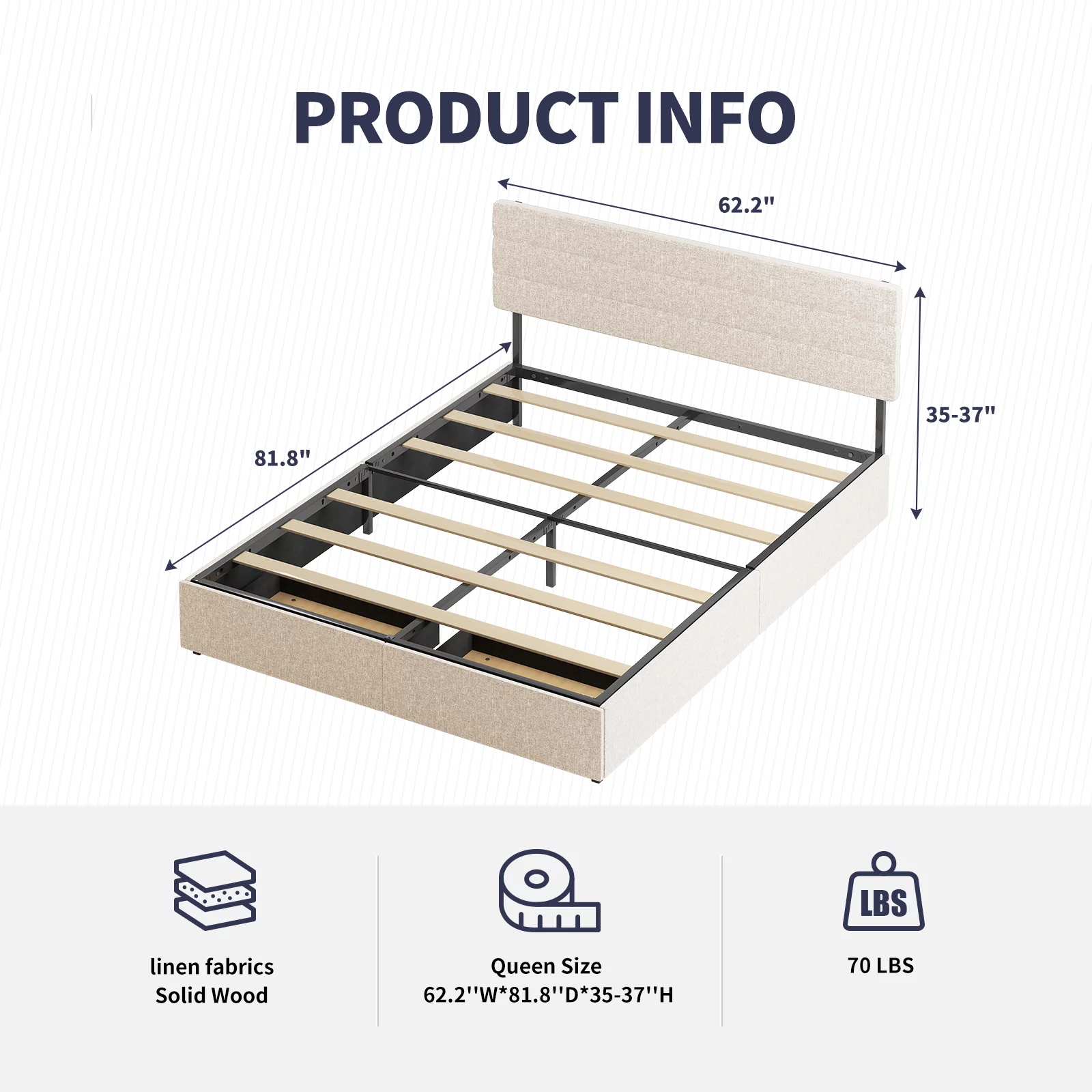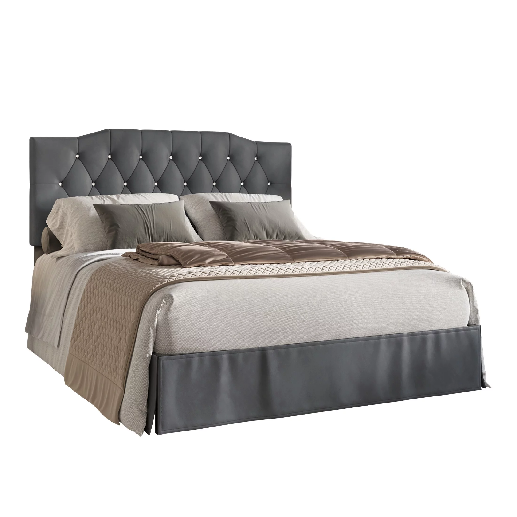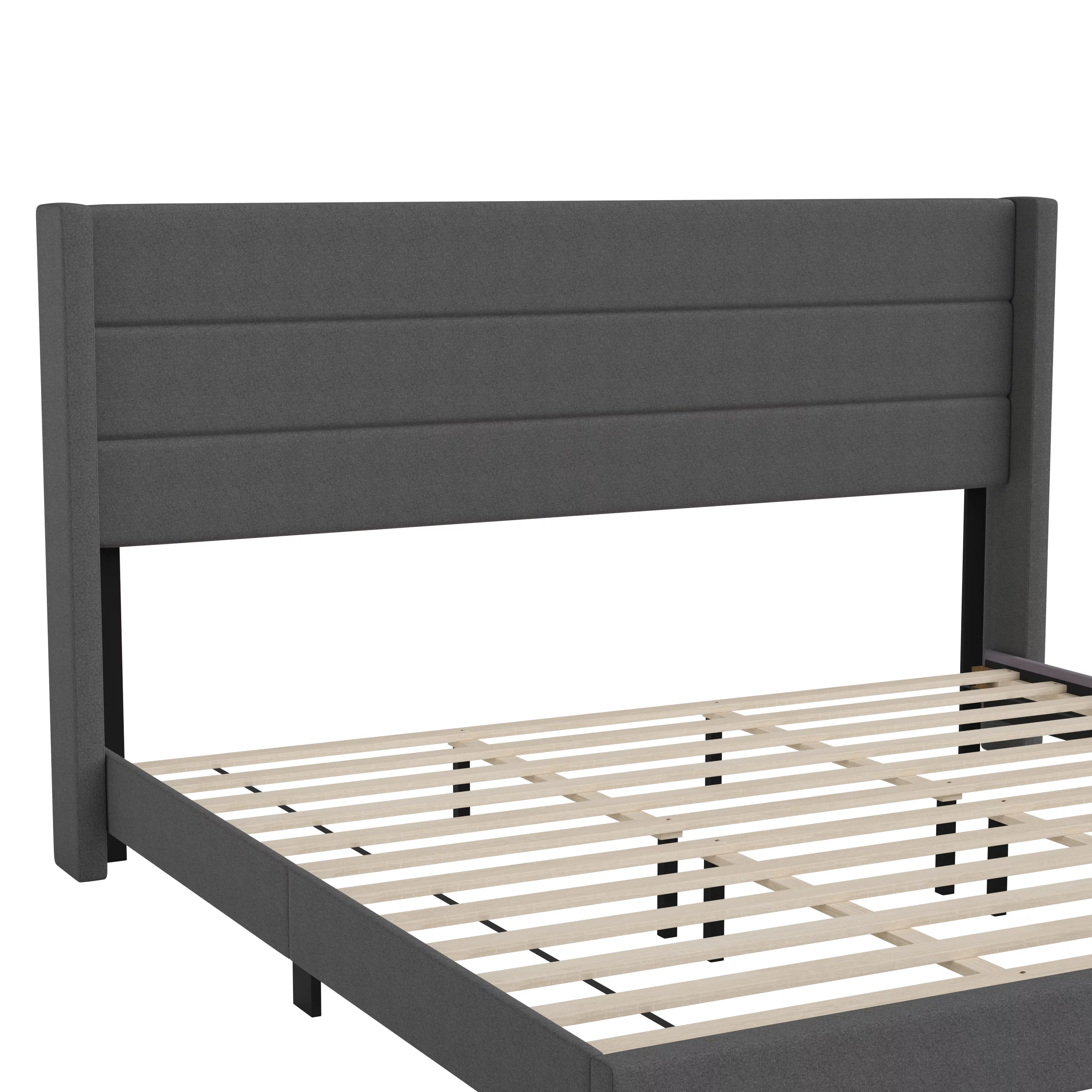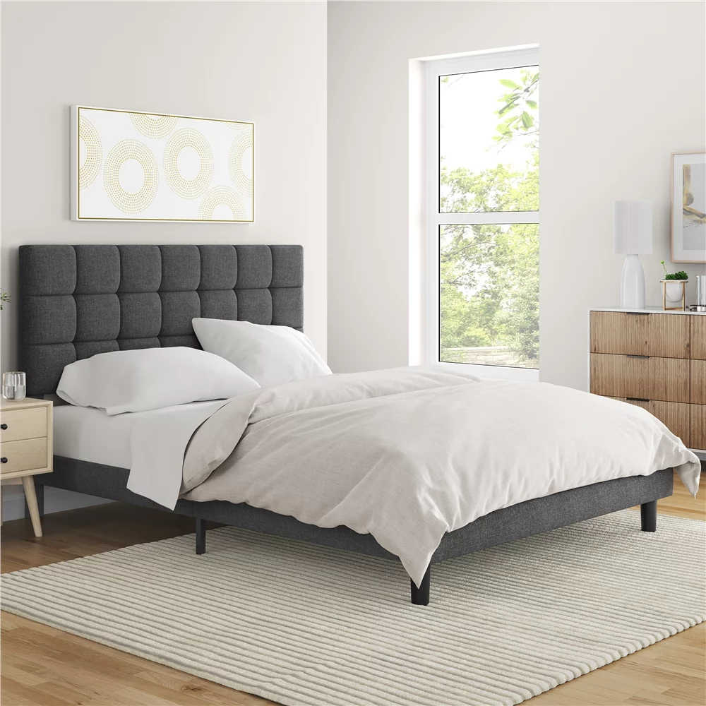 Yaheetech Modern Upholstered Platform Bed with Adjustable Tufted Headboard, Queen Size, Dark Gray