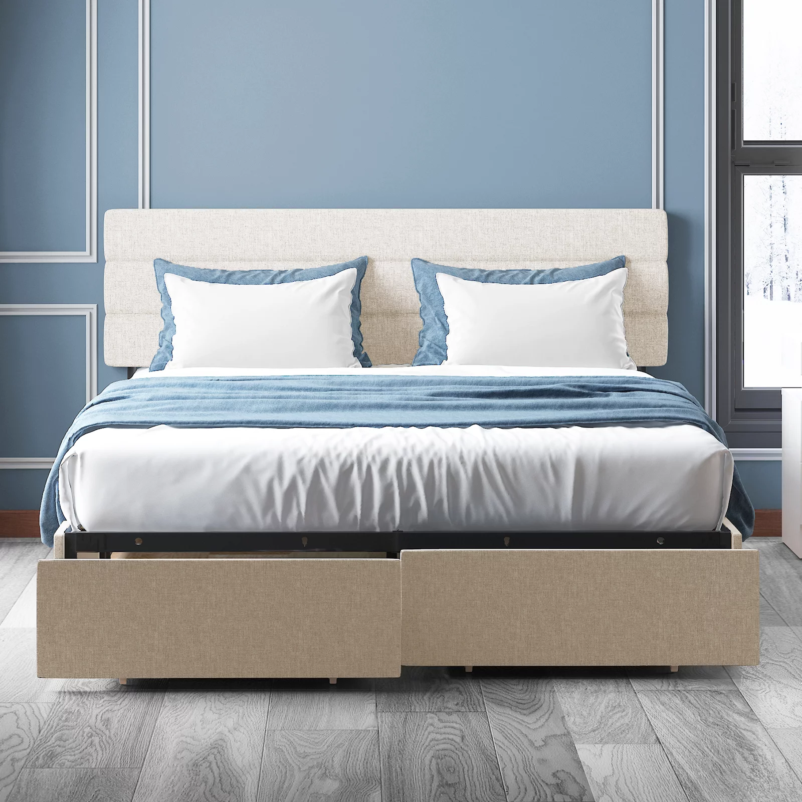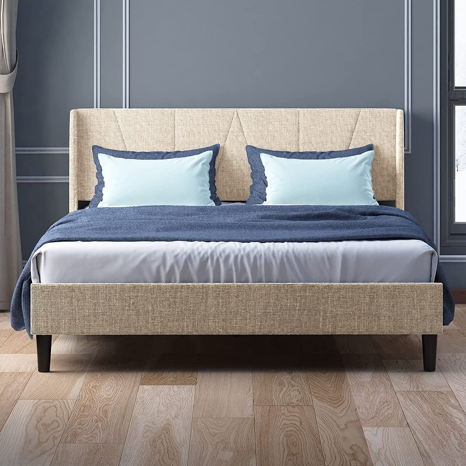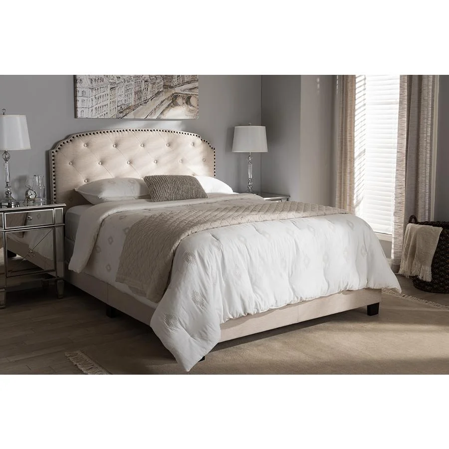 Baxton Studio Cassandra Modern and Contemporary Light Beige Fabric Upholstered King Size Bed