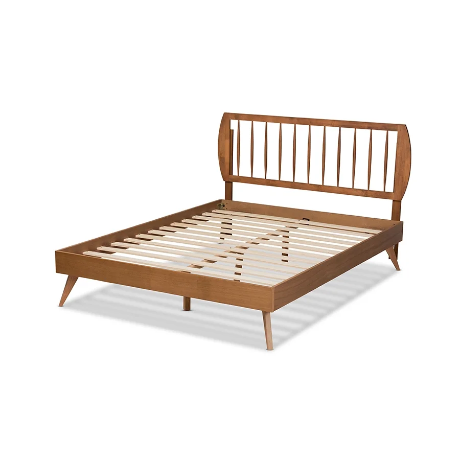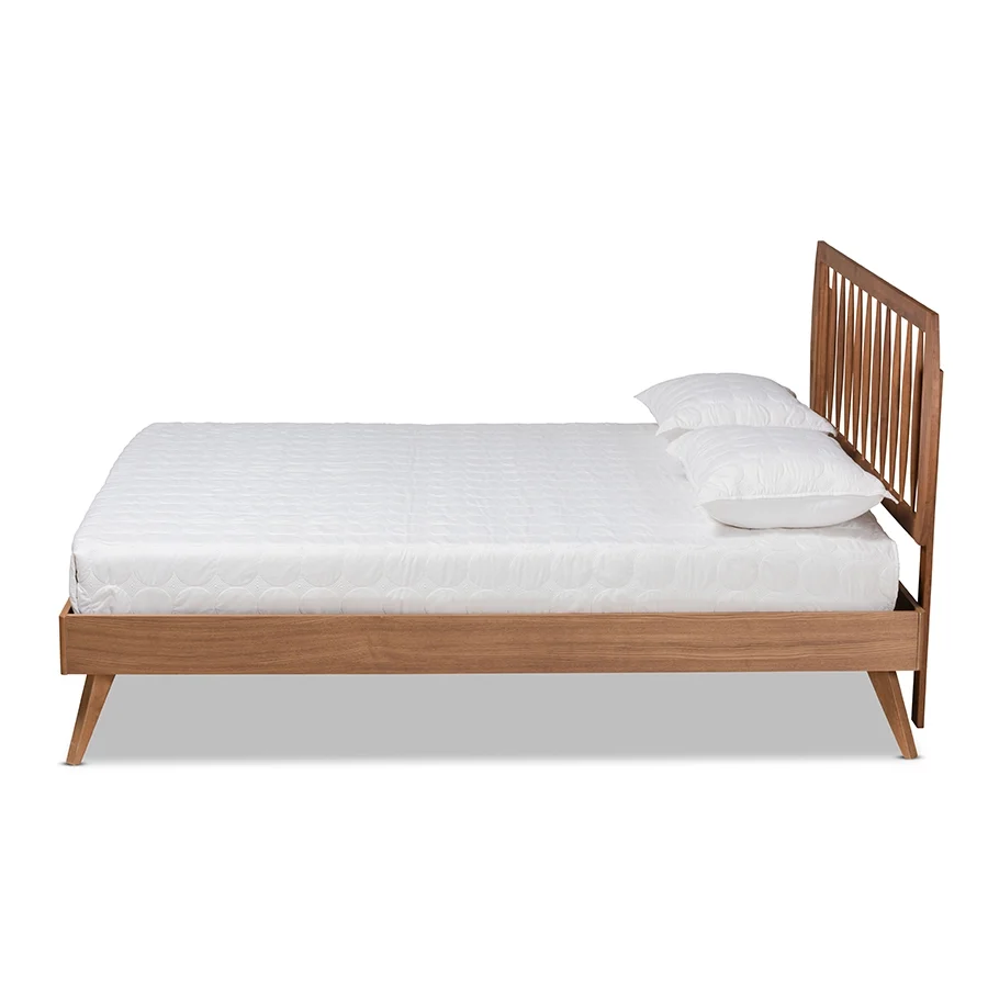 Baxton Studio Aimi Mid-Century Modern Walnut Brown Finished Wood King Size Platform Bed