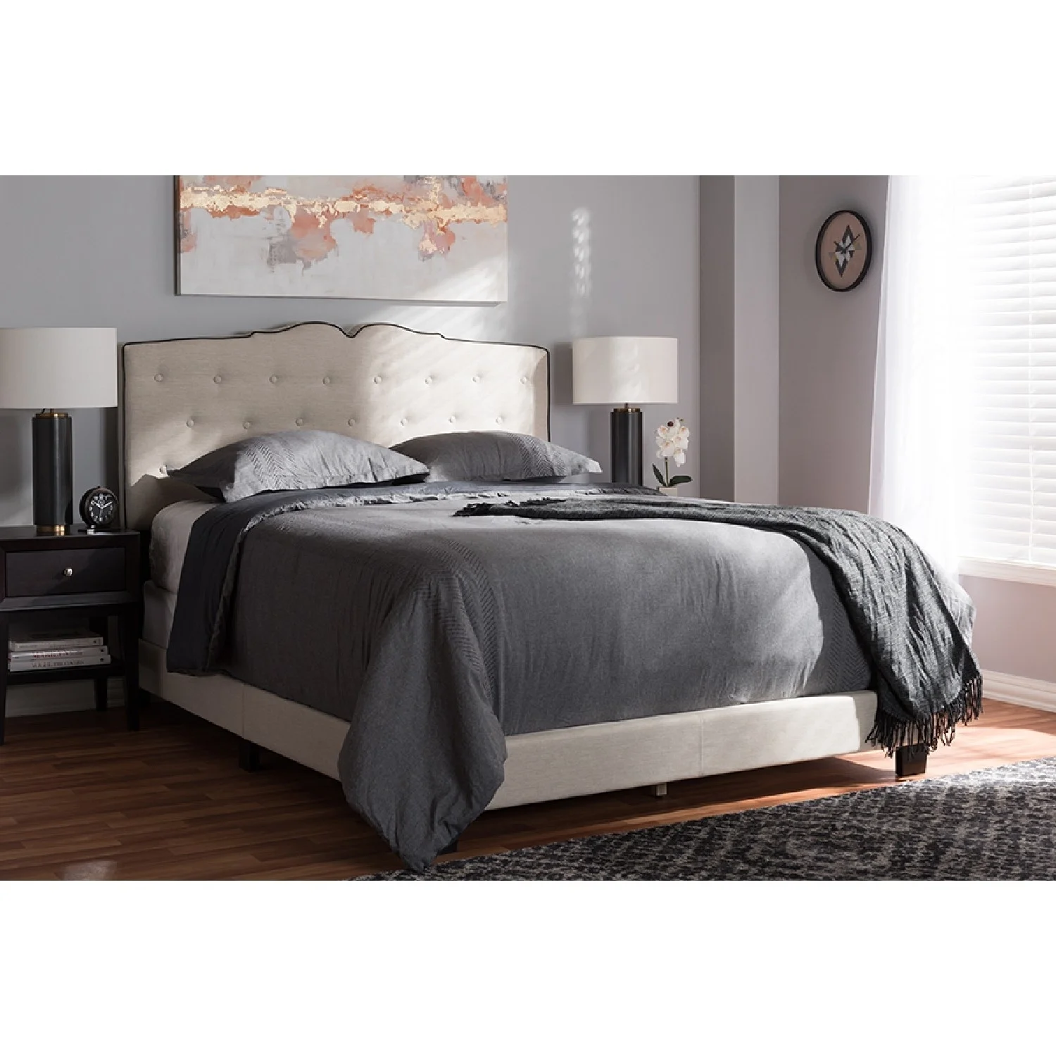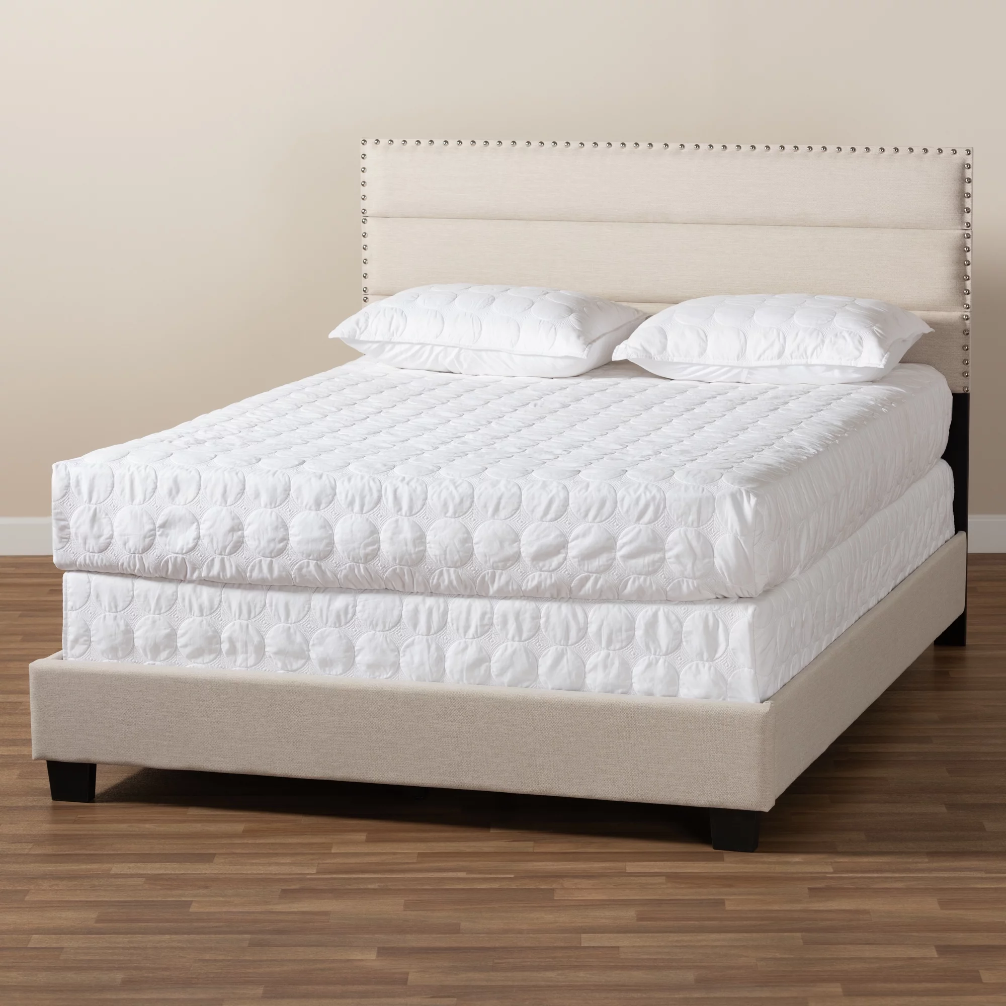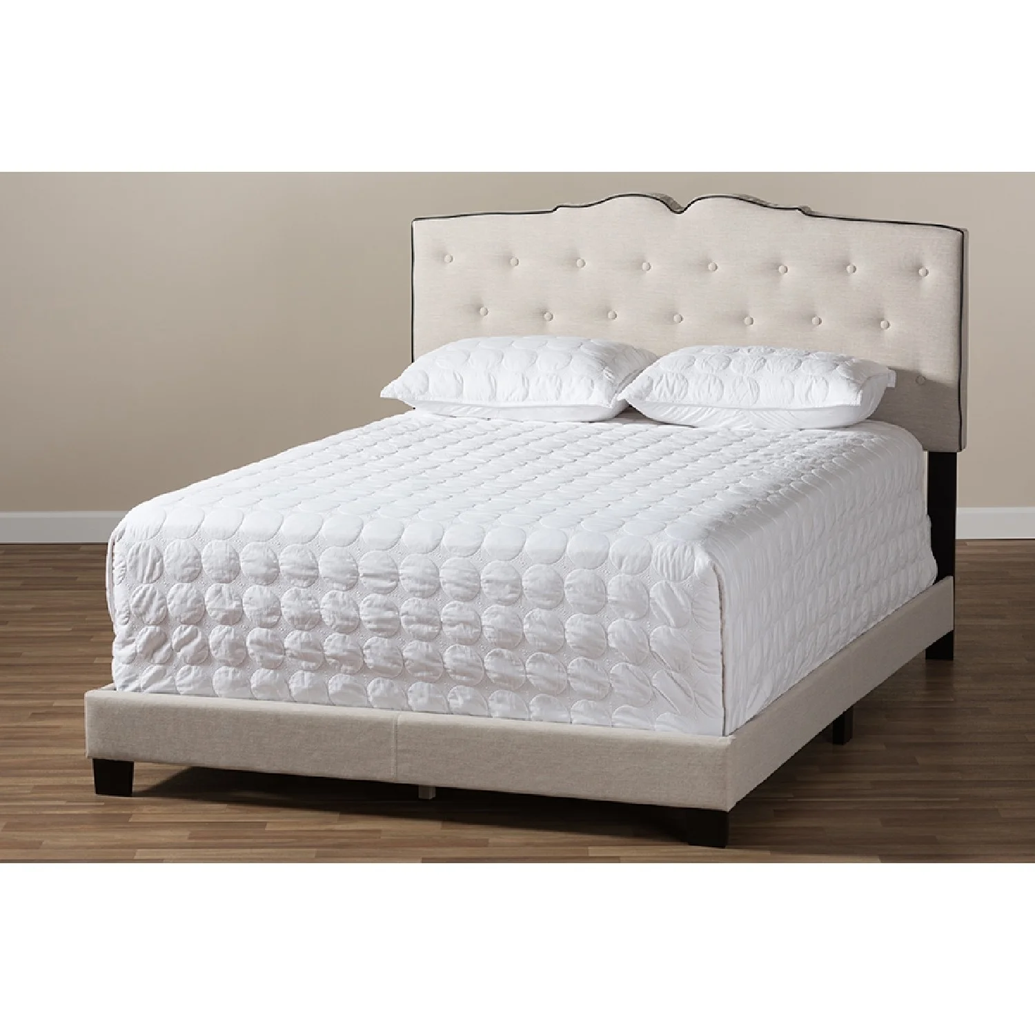 Baxton Studio Marion Modern Transitional Beige Fabric Upholstered Button Tufted King Size Panel Bed
