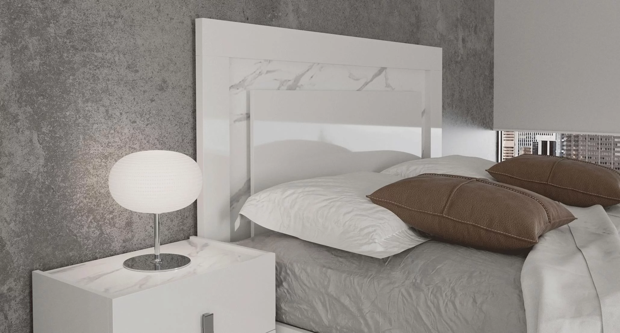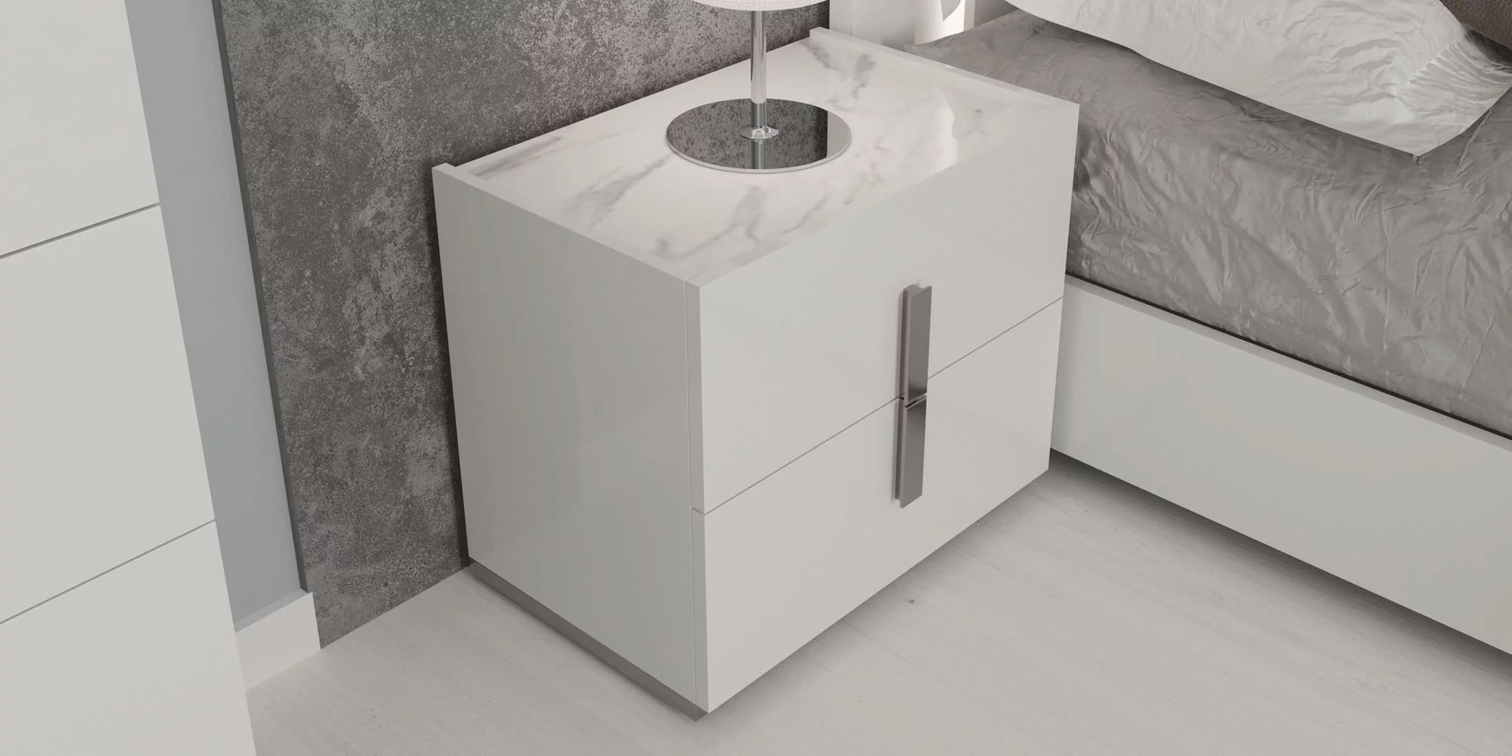 Glossy White King Bed Set 3 w/ LED Headboard CARRARA ESF Modern MADE IN ITALY