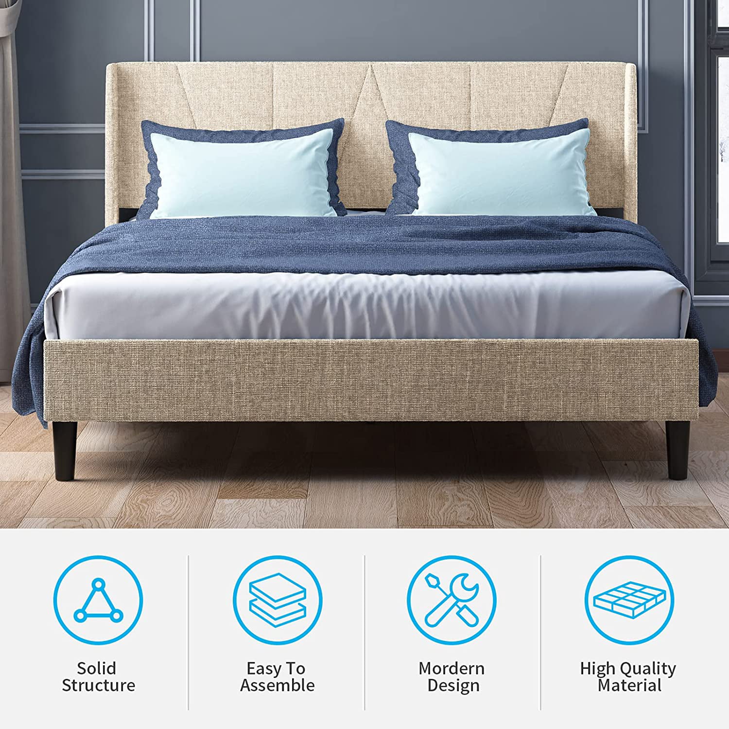 Baxton Studio Ansa Modern and Contemporary Beige Fabric Upholstered King Size Bed