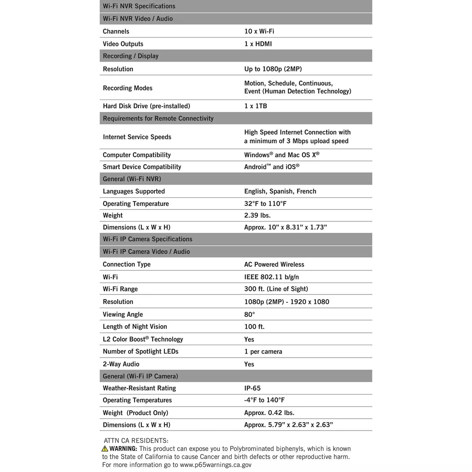 10 Channel 4K Wi-Fi NVR Security System with 1TB Hard Drive and 6 Wi-Fi IP 4K Deterrence Cameras with 2-Way Audio