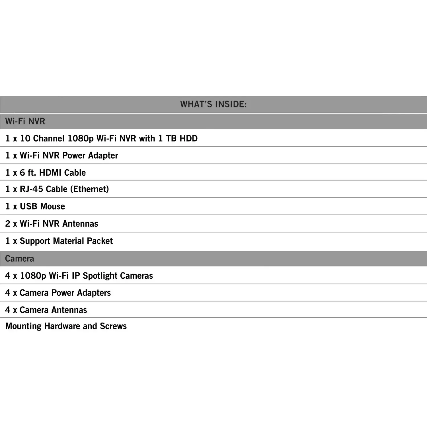 Night Owl CL-2WNP1-4L Expandable 10 Channel Wi-Fi NVR w/ (4) 1080p Wi-Fi IP Spotlight Cameras & 1TB Hard Drive