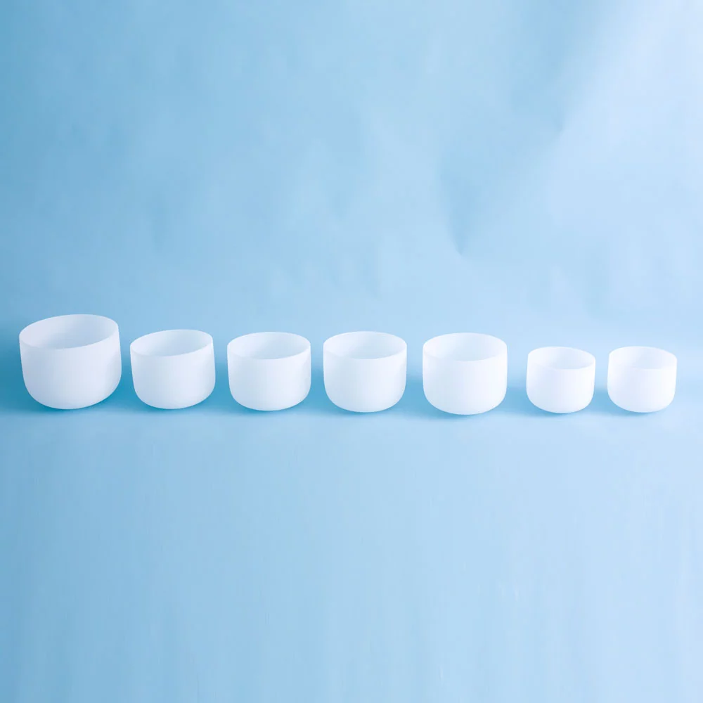 ENERGYSOUND 432Hz Chakra Tuned Set of 7 Frosted Quartz Crystal Singing Bowl 7-12 "