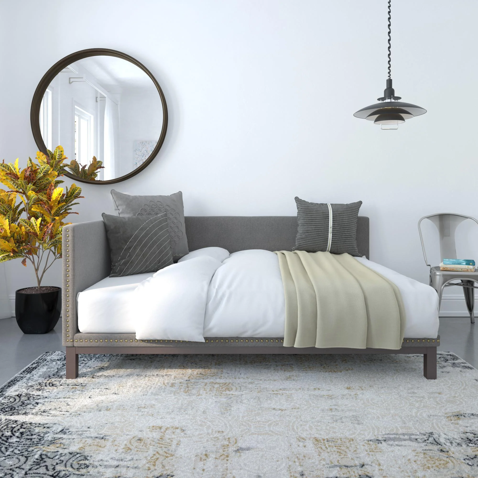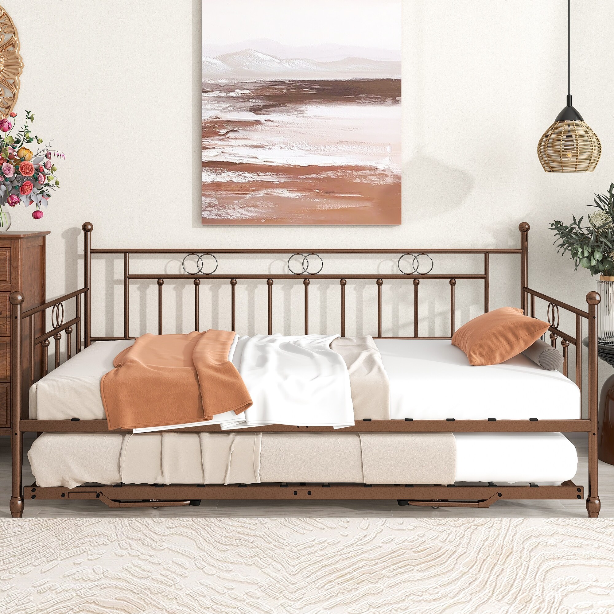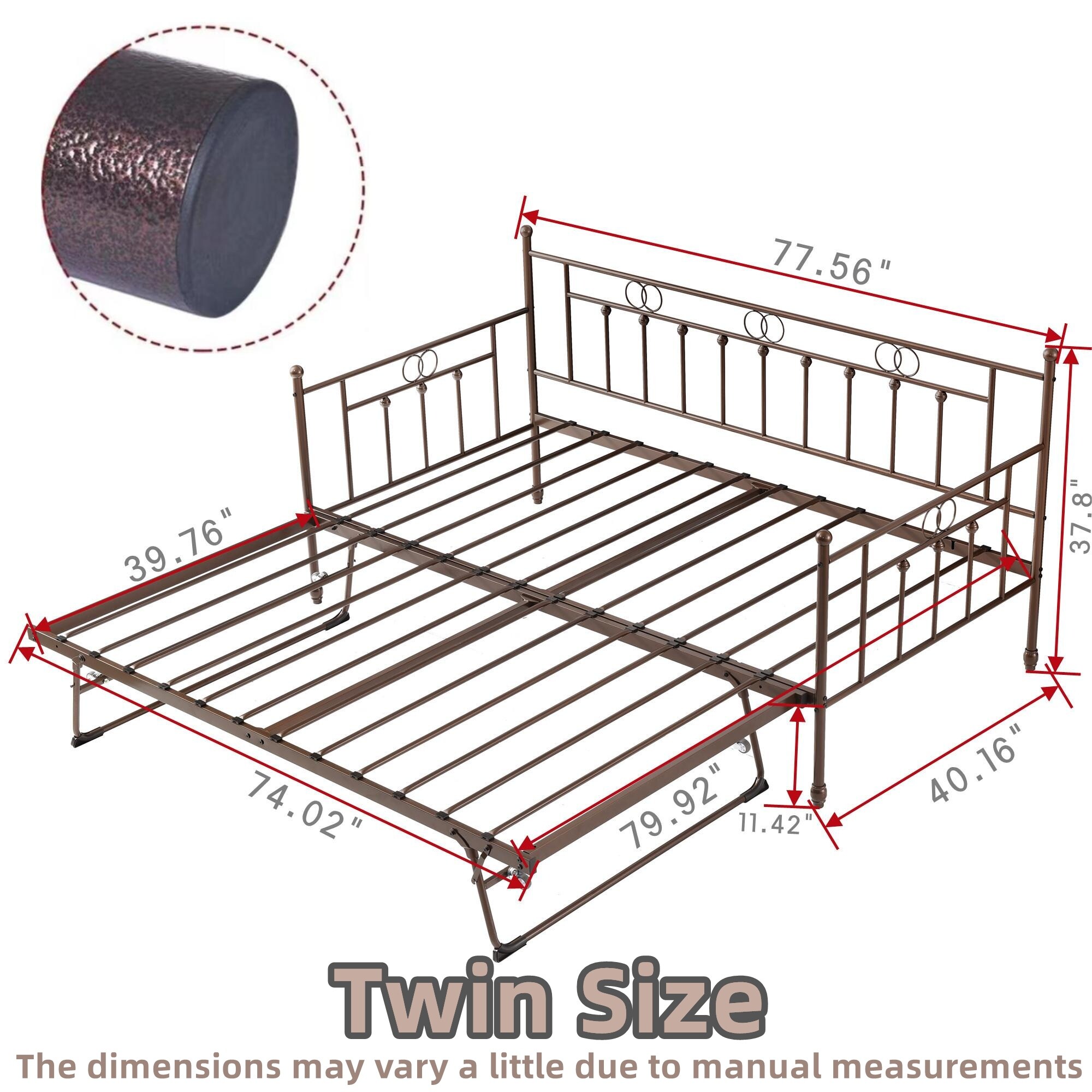 MERAX Twin Size Metal Daybed with Adjustable Trundle, Pop Up Trundle Silver