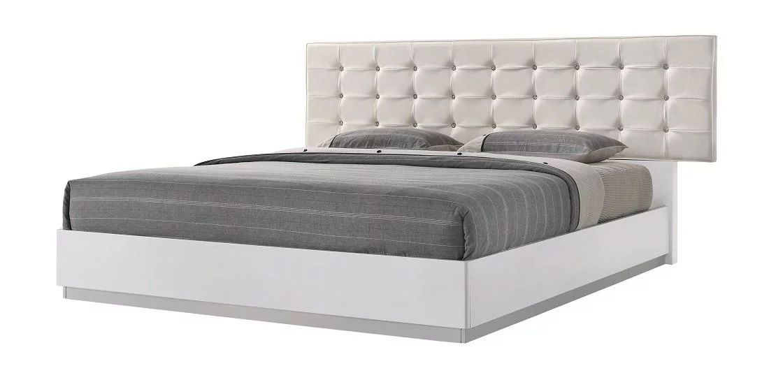 Modern White Lacquer & Premium Leather Full Size Bedroom Set 5Pcs J&M Verona