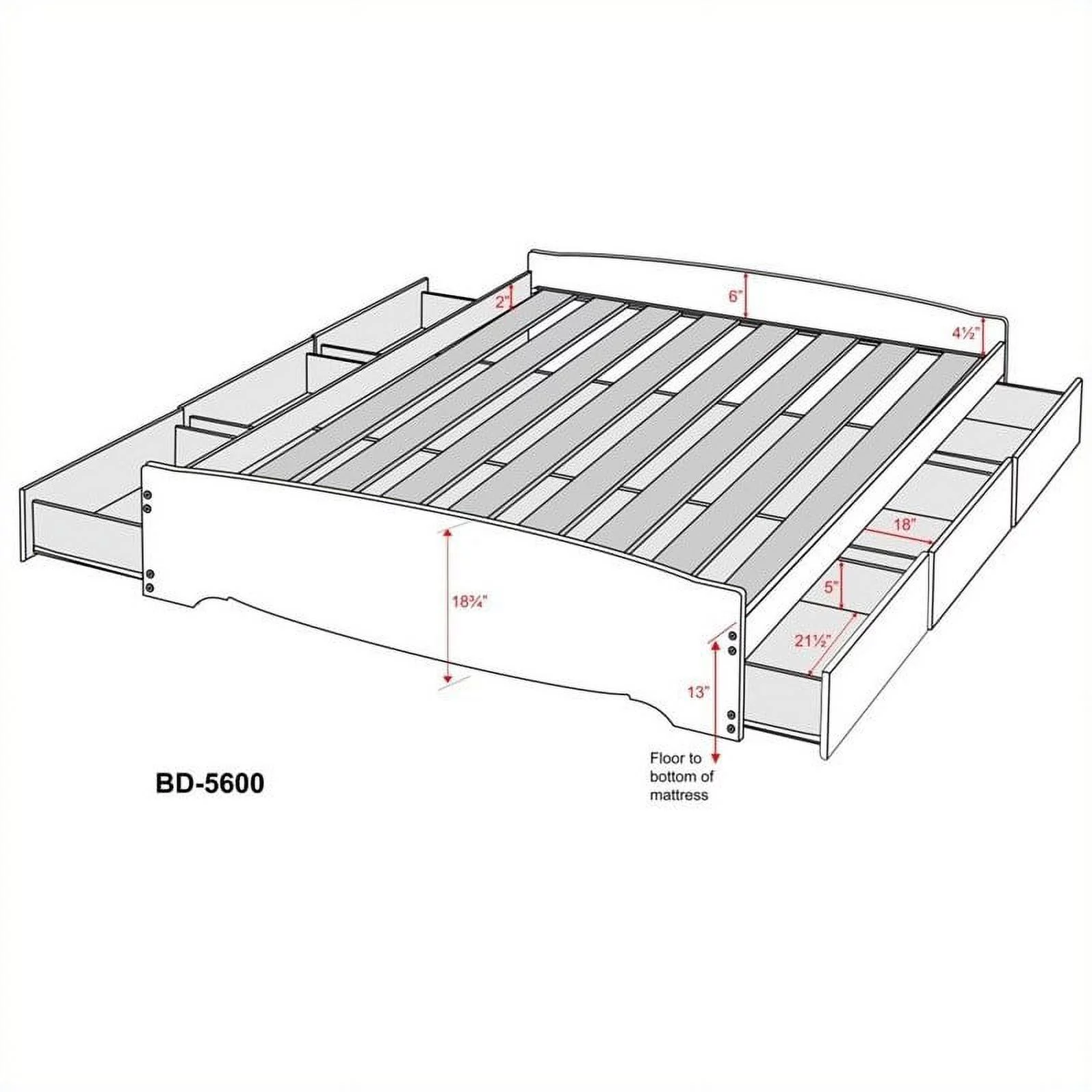 Picket House Furnishings Charlotte Youth Full Platform 5PC Bedroom Set in White