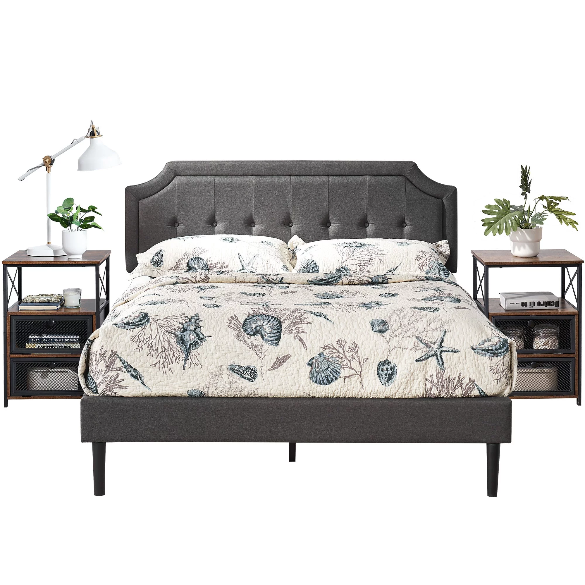 VECELO 3-Piece Bedroom Sets Upholstered Platform Bed Frame and 2 Nightstand