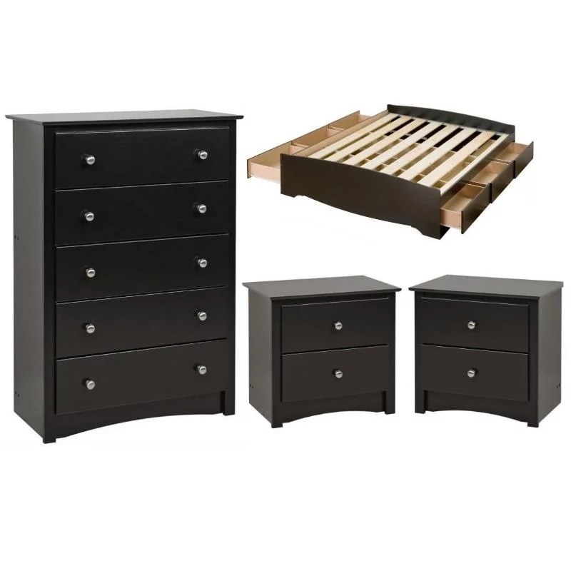 Home Square 4-Piece Set with Storage Bed 5-Drawer Chest and 2 Nightstands