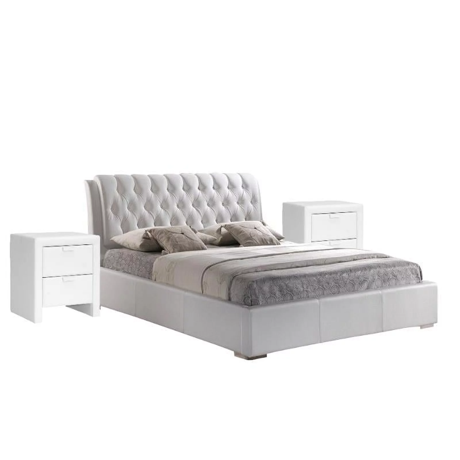 Contemporary Style 3pc Full Size Low-Profile Bed and 2x Nightstands Bedroom Furniture Set Beige Finish