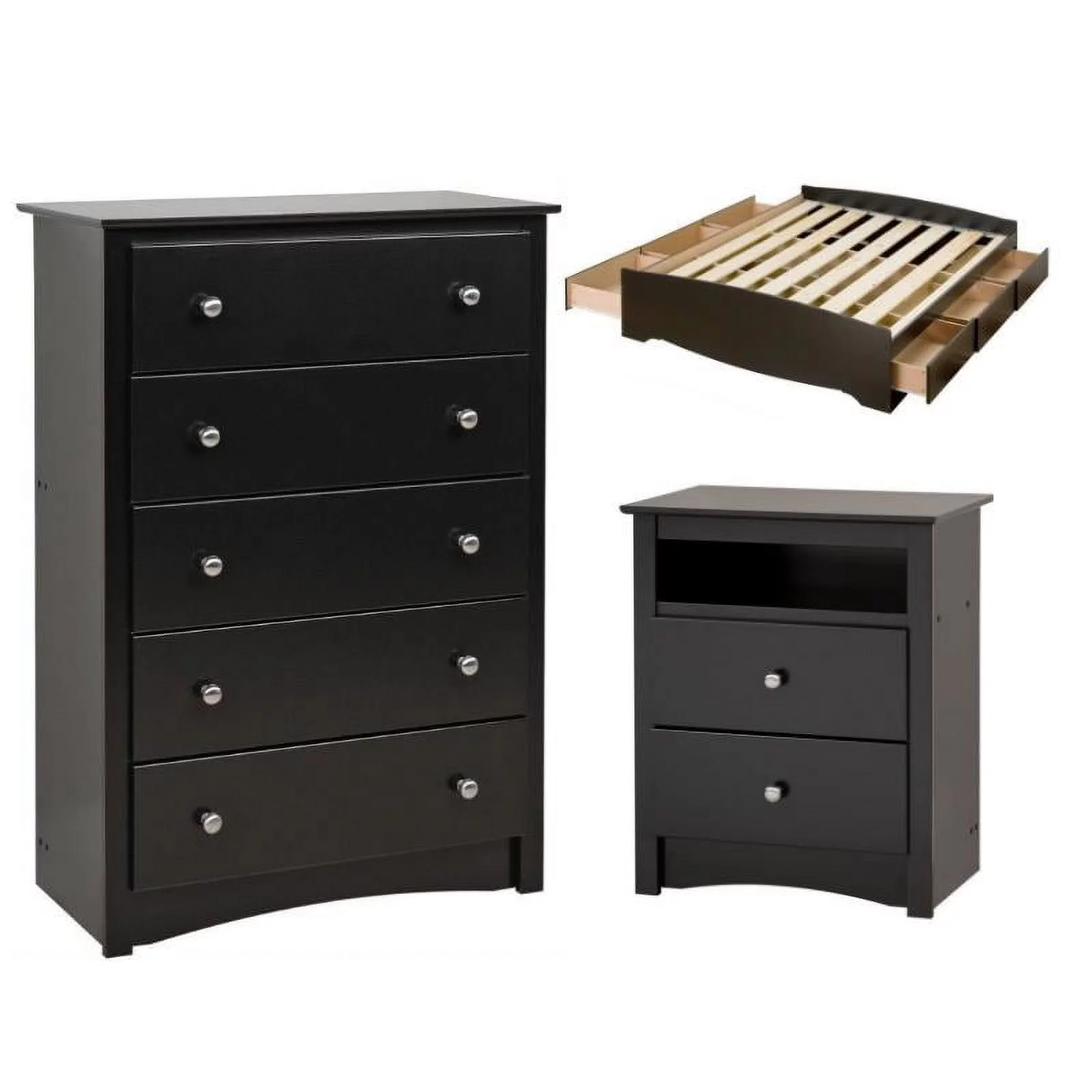 Home Square 3-Piece Set with Storage Bed 5-Drawer Chesst and Tall Night Stand