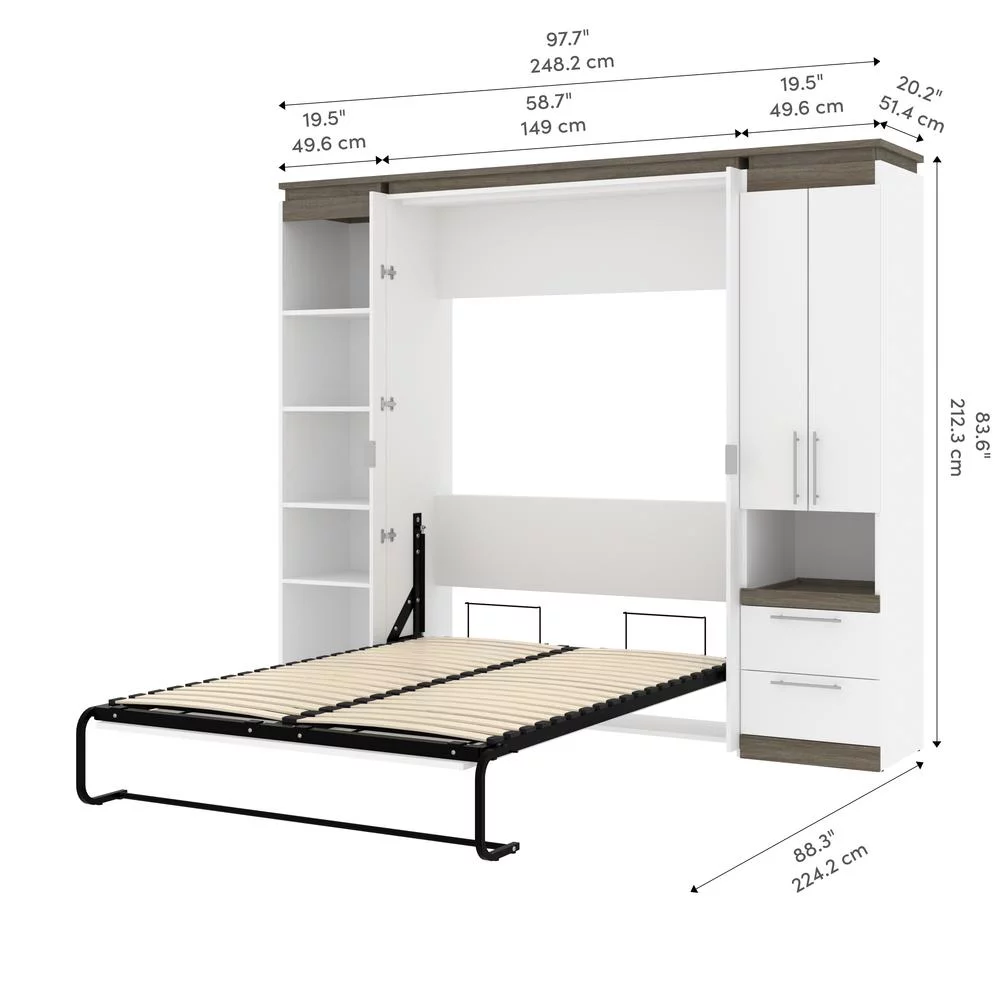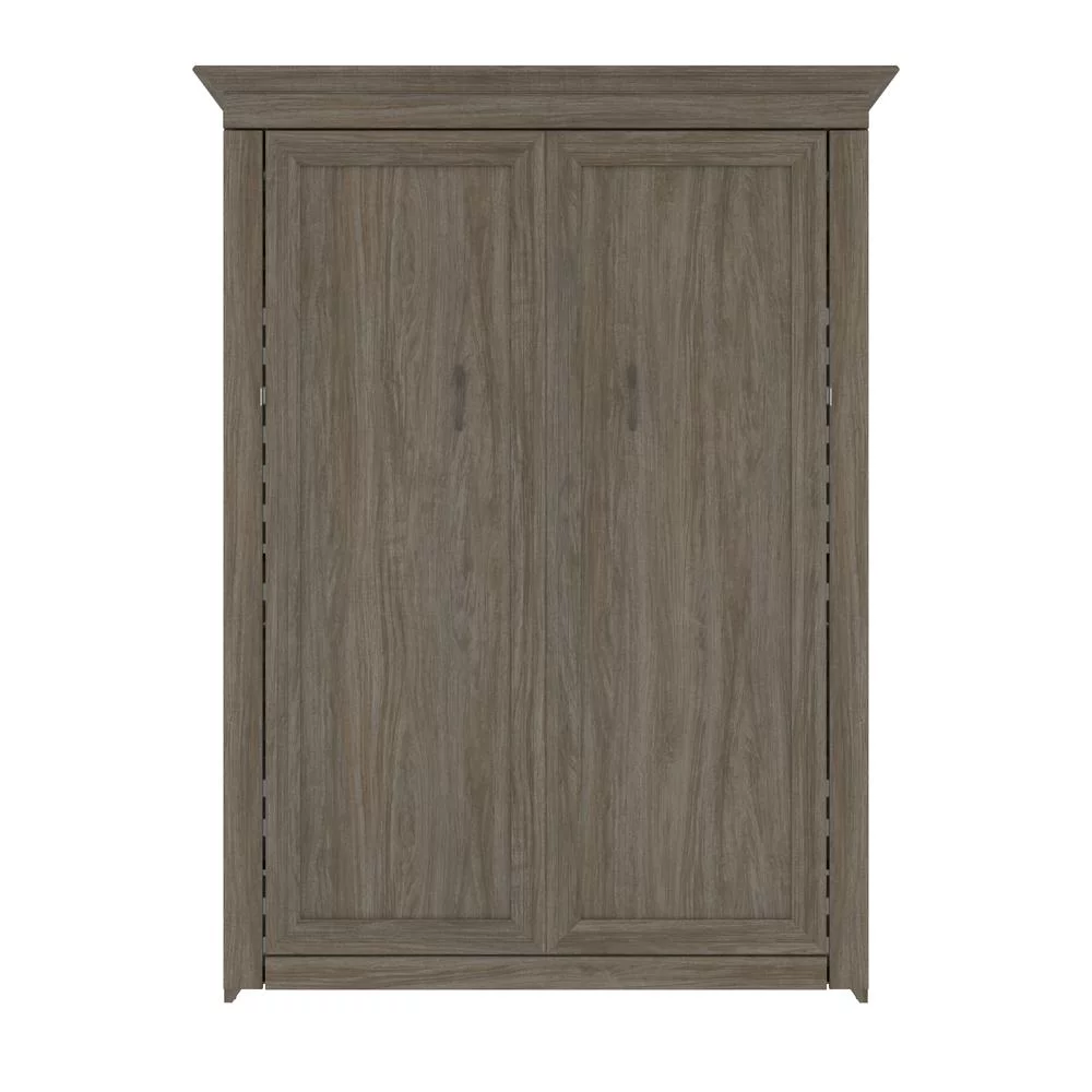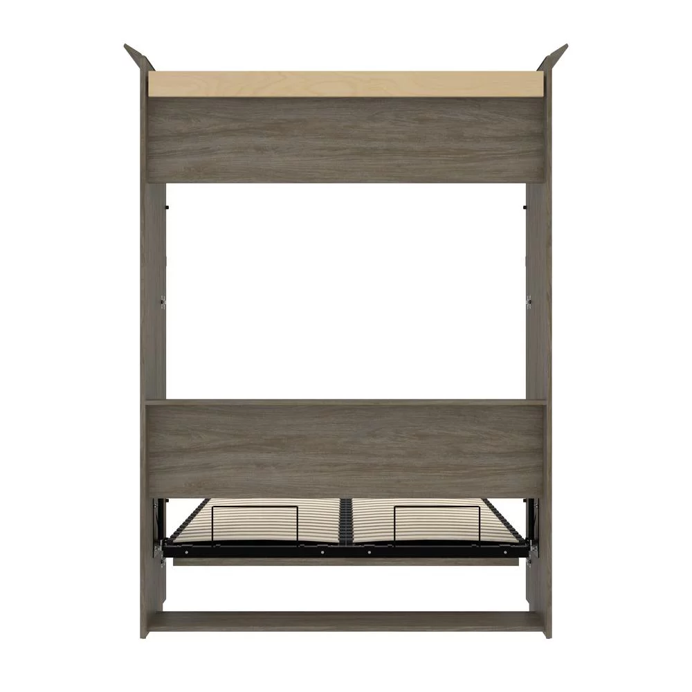 Atlin Designs Wood Full Murphy Bed and Narrow Storage in Bark Gray/White