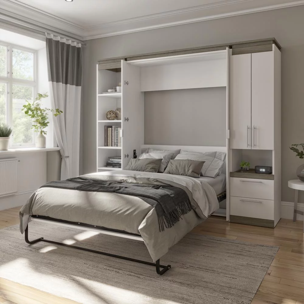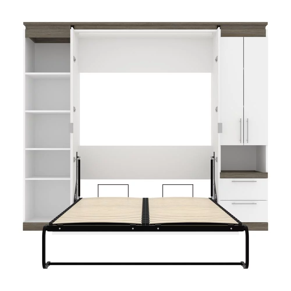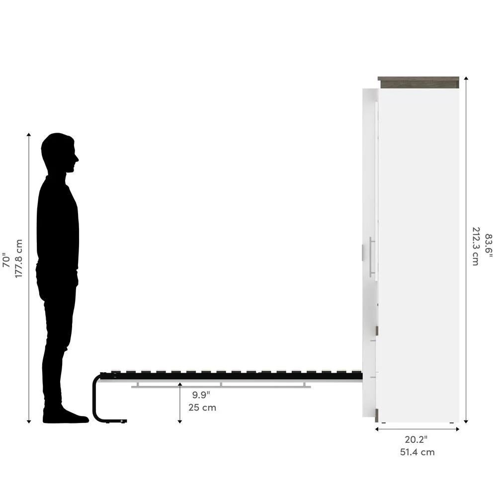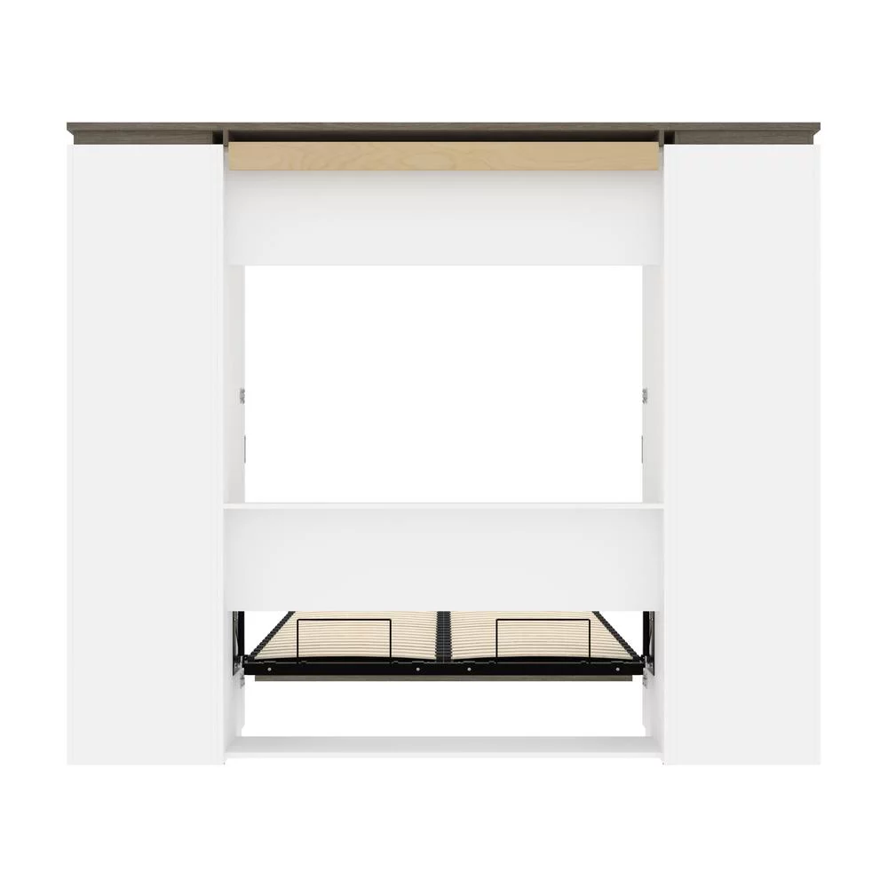 Atlin Designs Wood Full Murphy Bed and Narrow Storage in Bark Gray/White