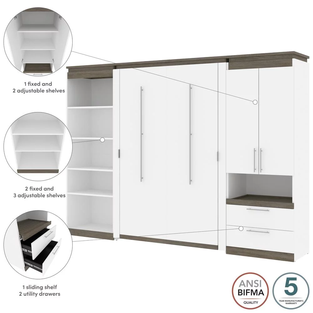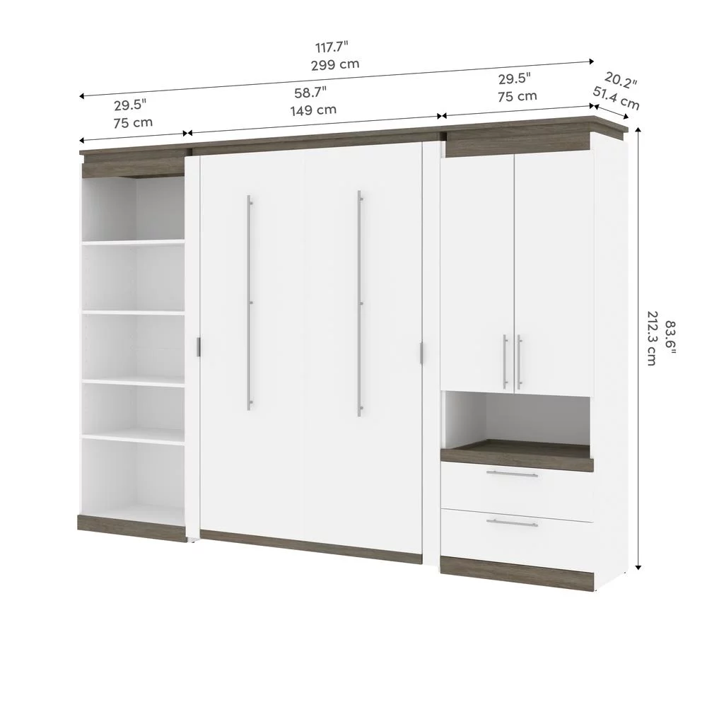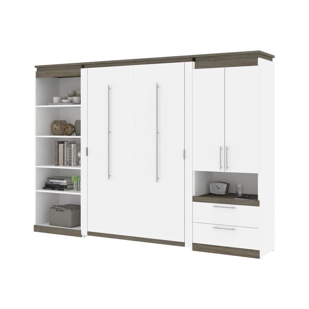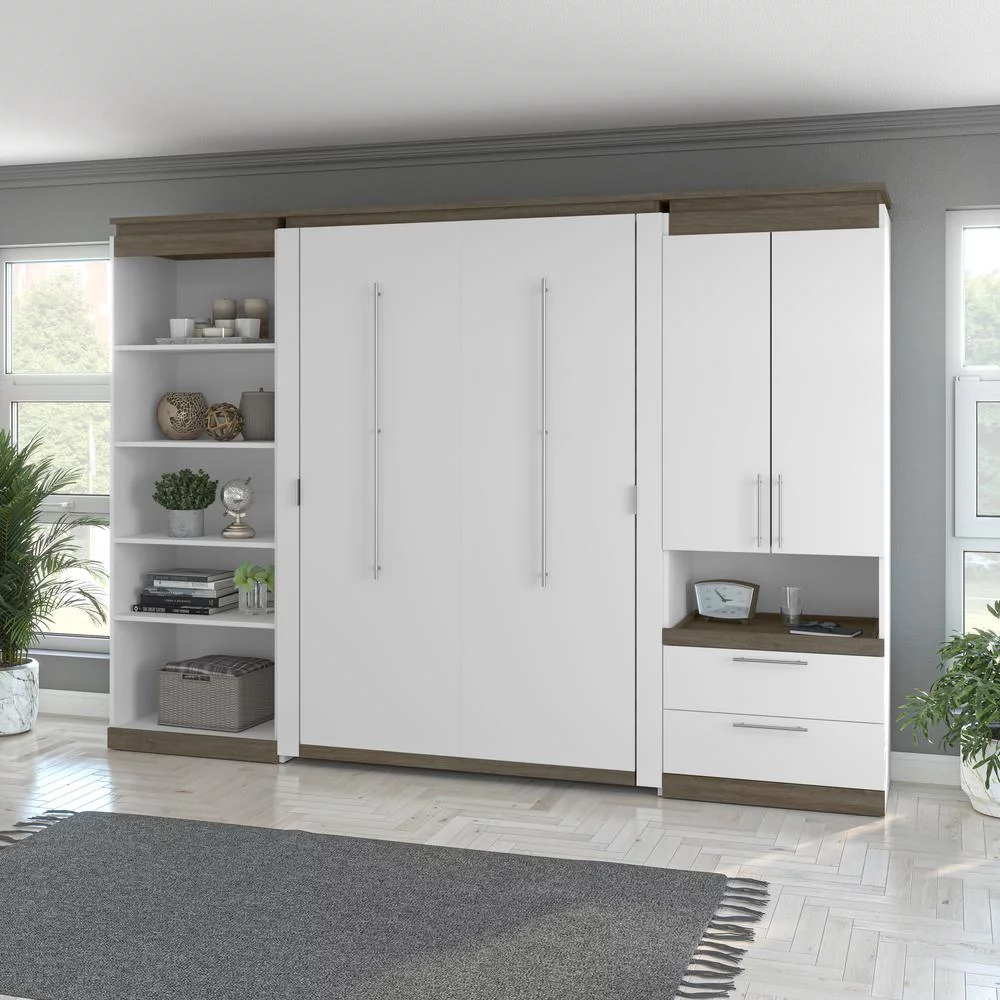 Bestar Orion 118" Full Murphy Bed with Multifunctional Storage in White
