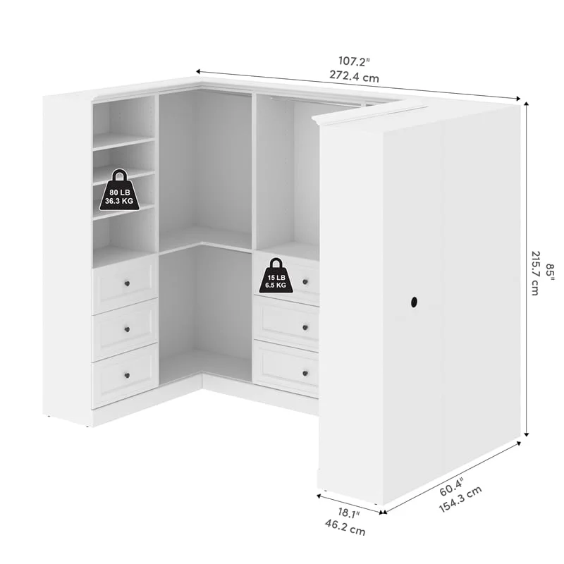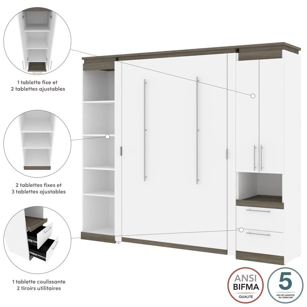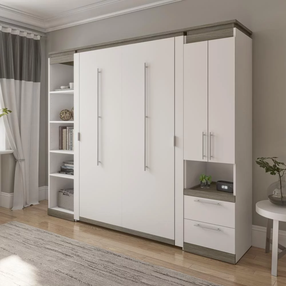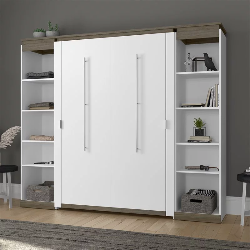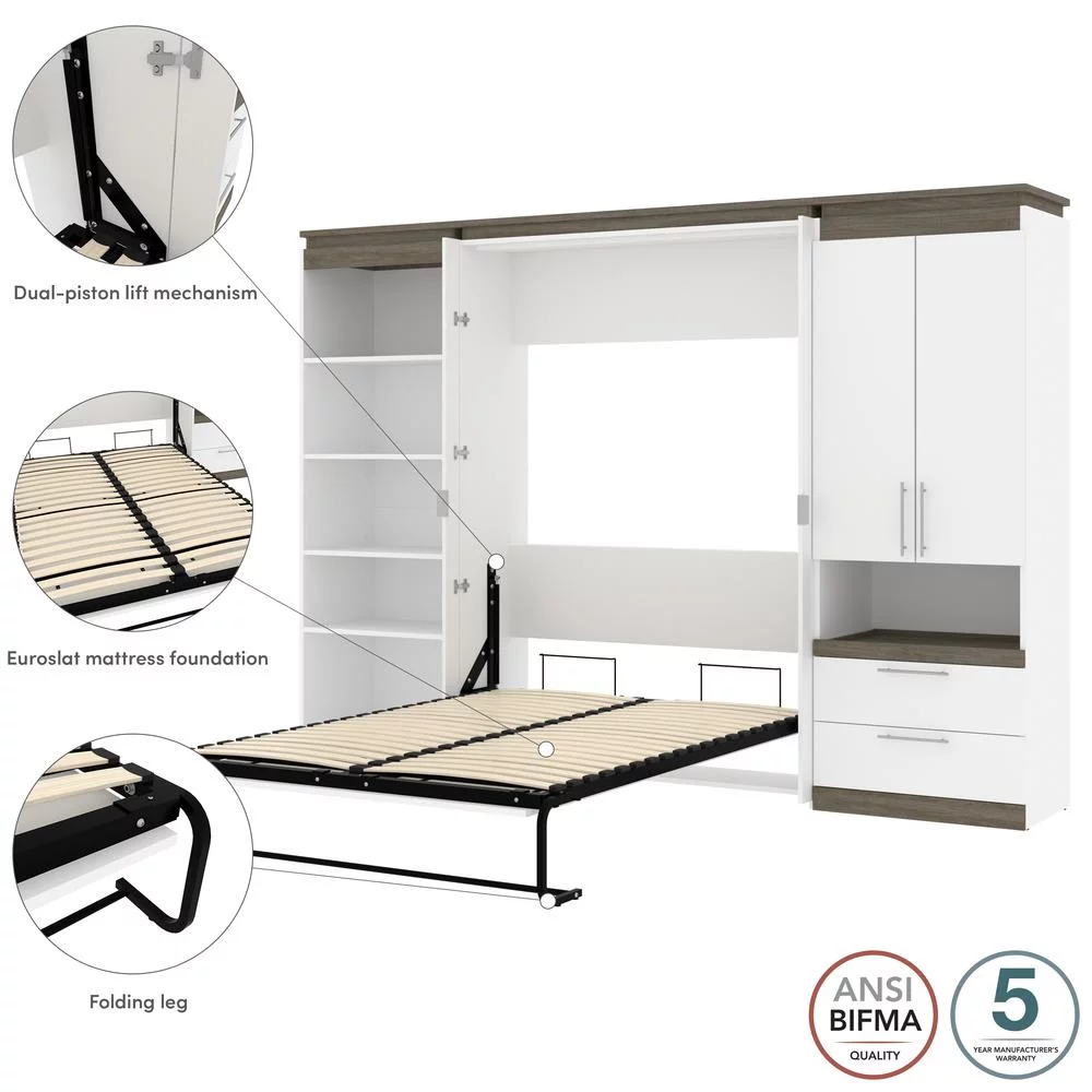 Bestar Orion 118" Full Murphy Bed with Multifunctional Storage in White