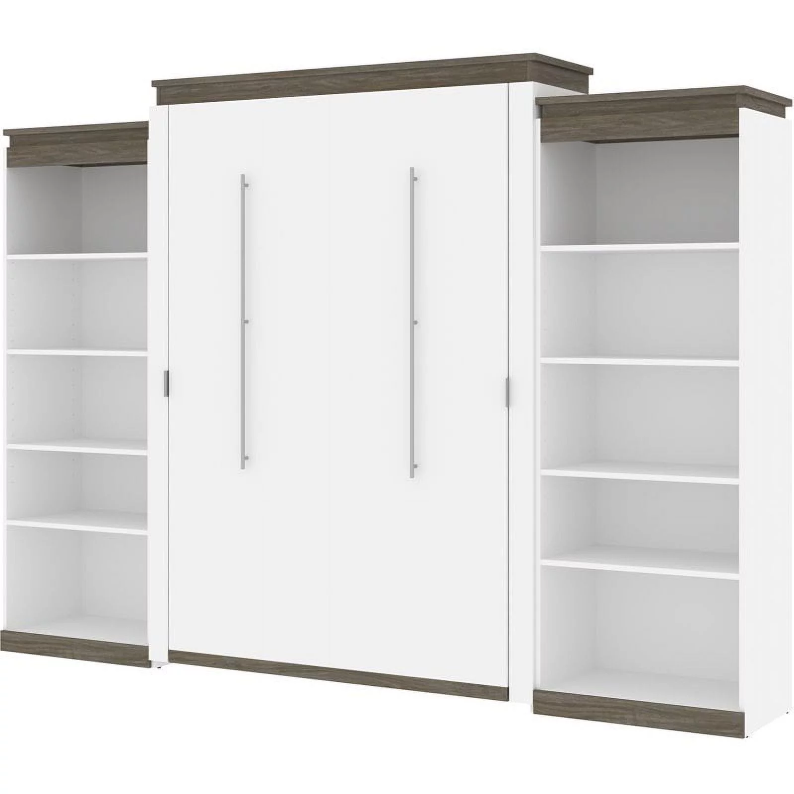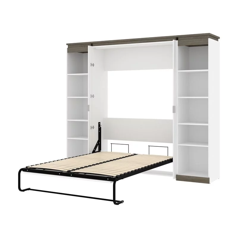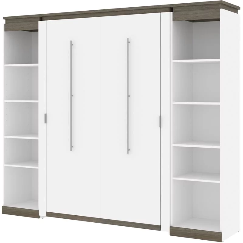 Atlin Designs 98" Full Murphy Bed with 2 Narrow Bookcases in White