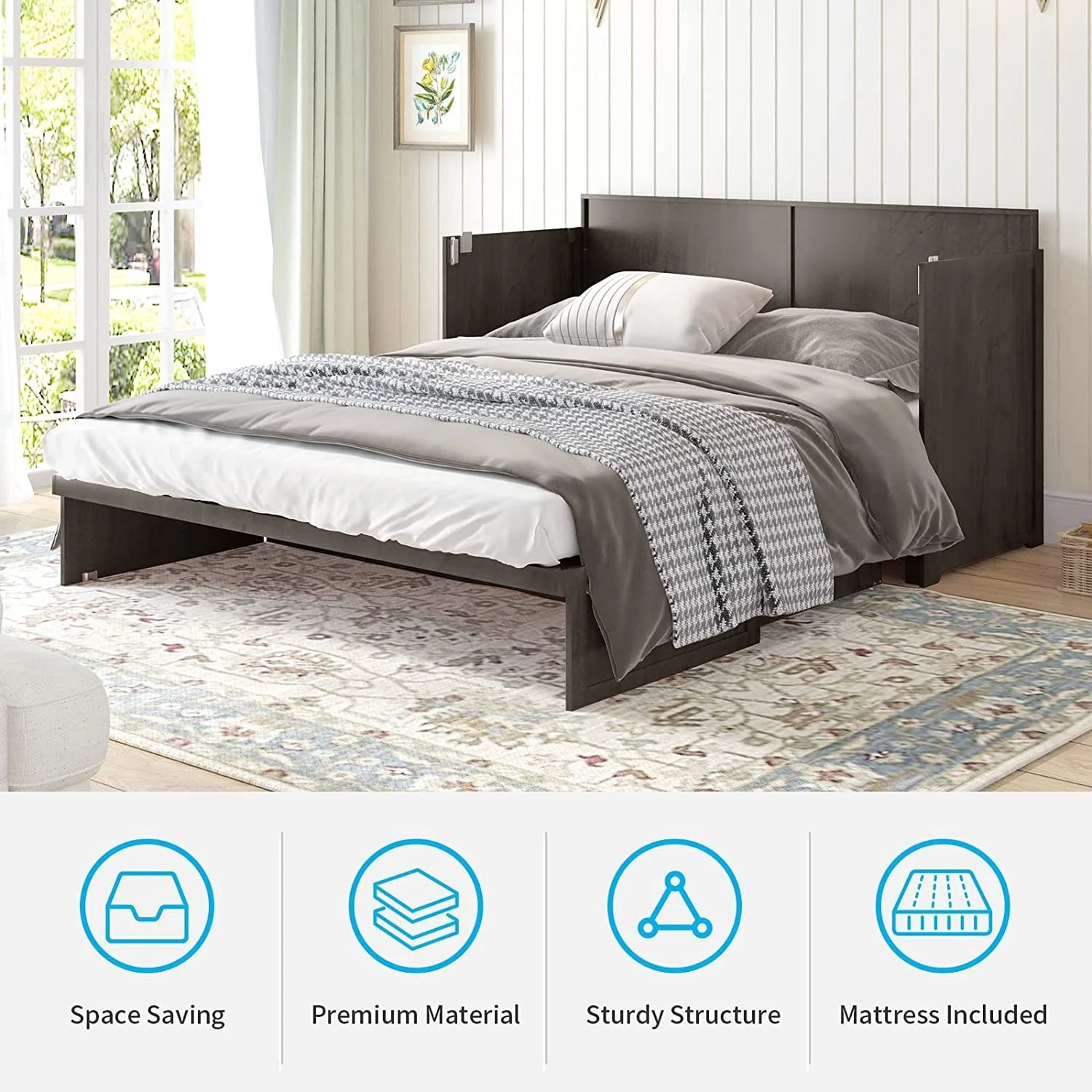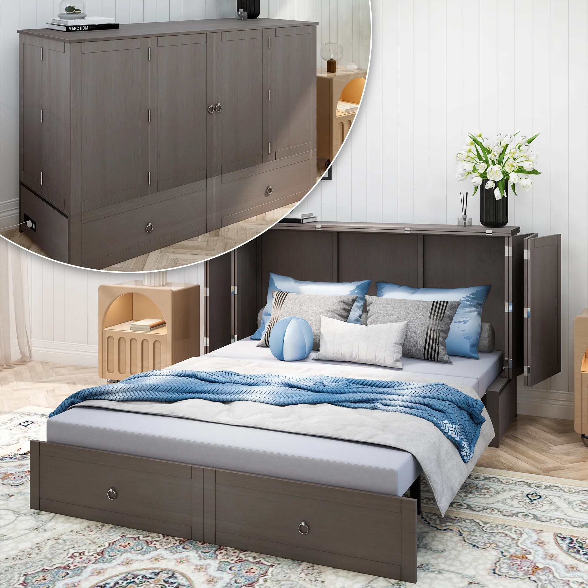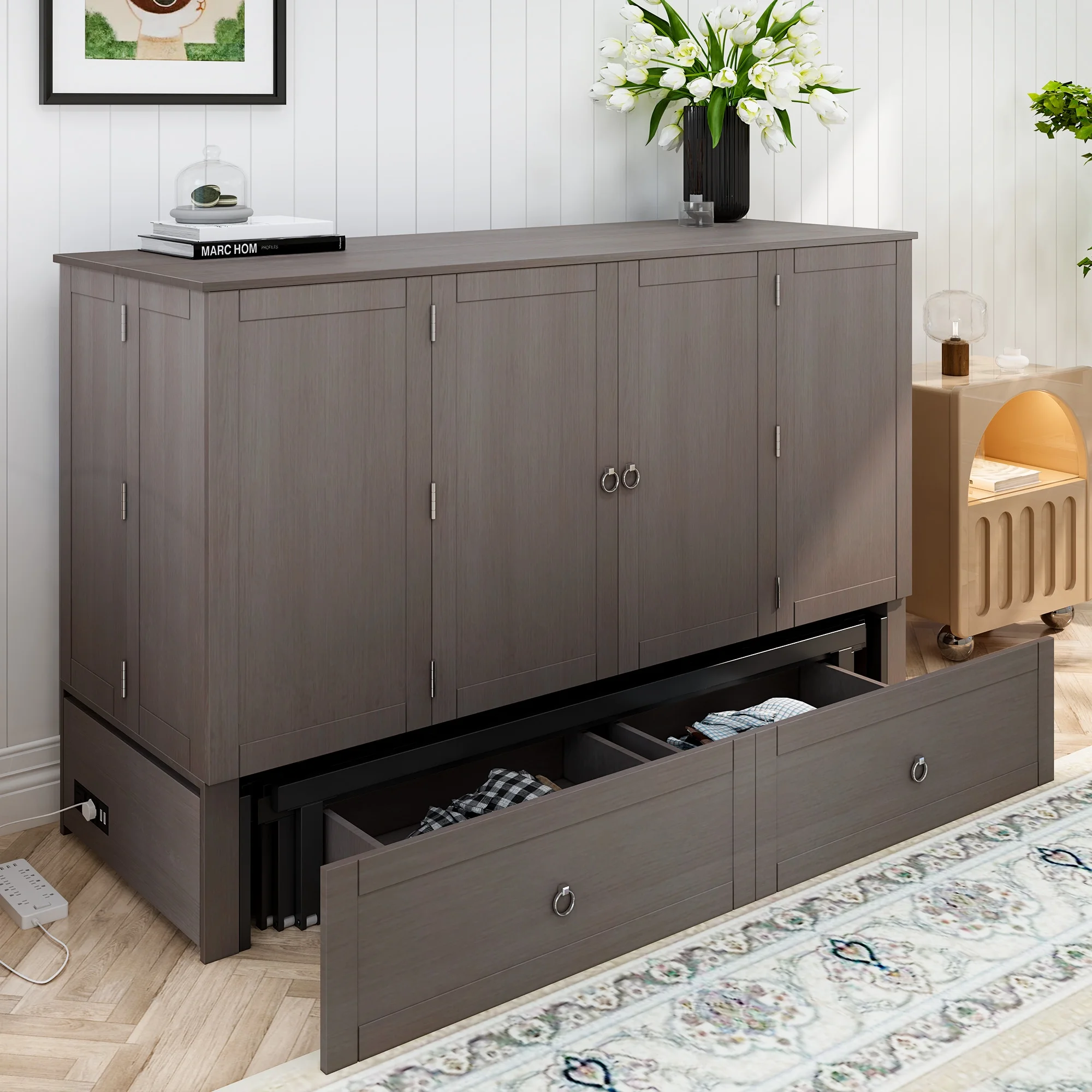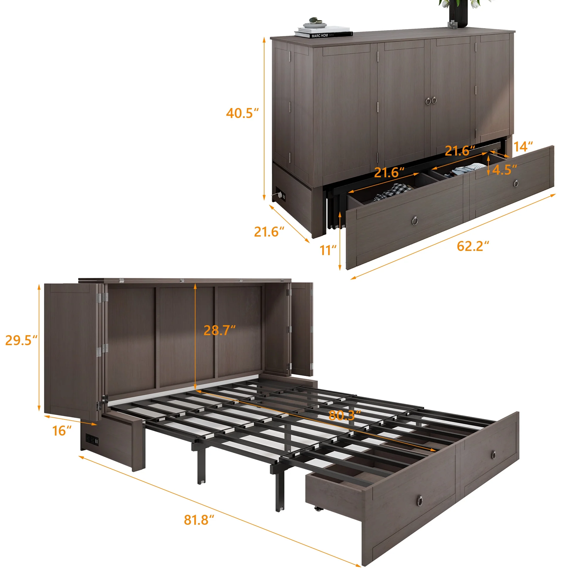 CoSoTower Queen Size Murphy Bed with Built-In Charging Station, Antique Grey