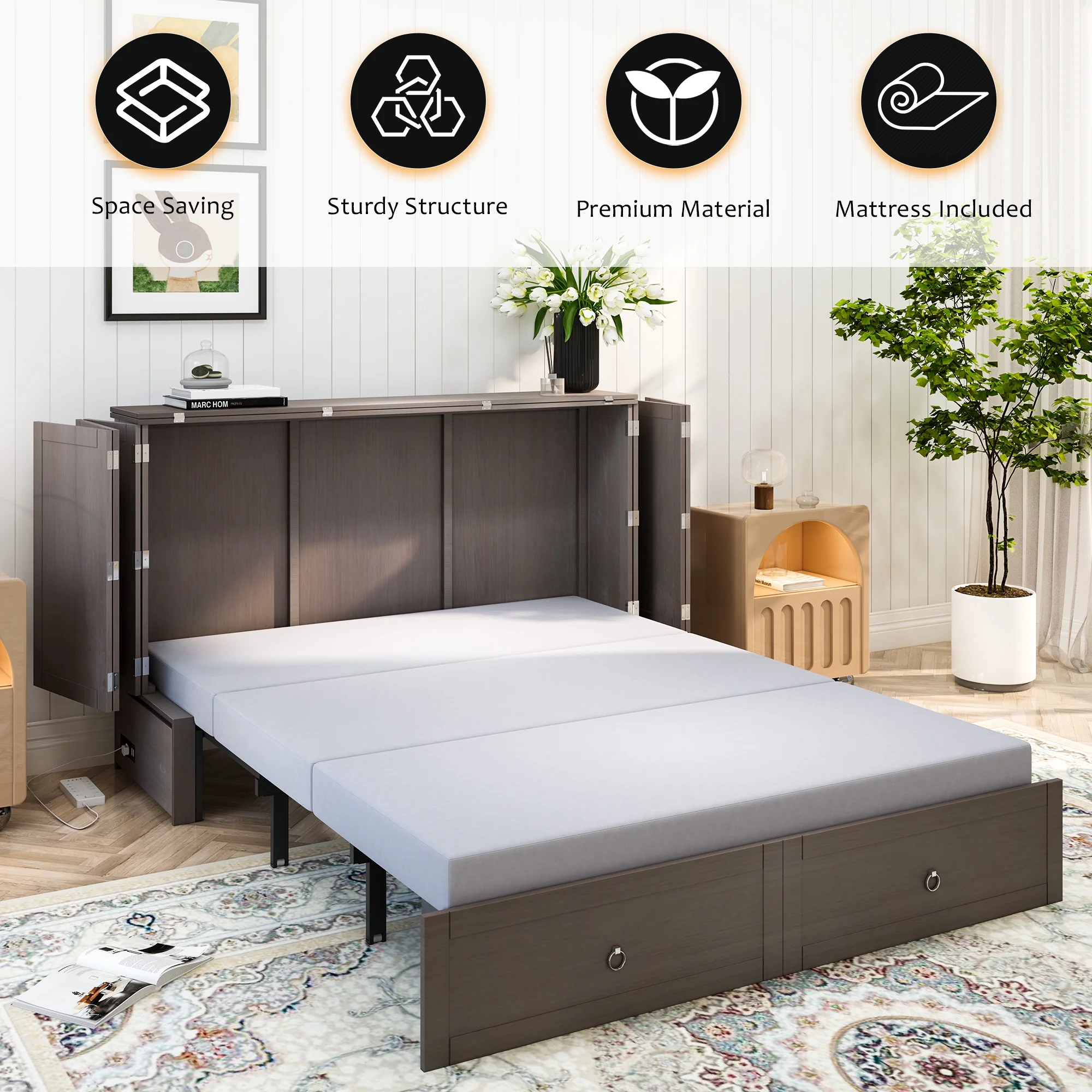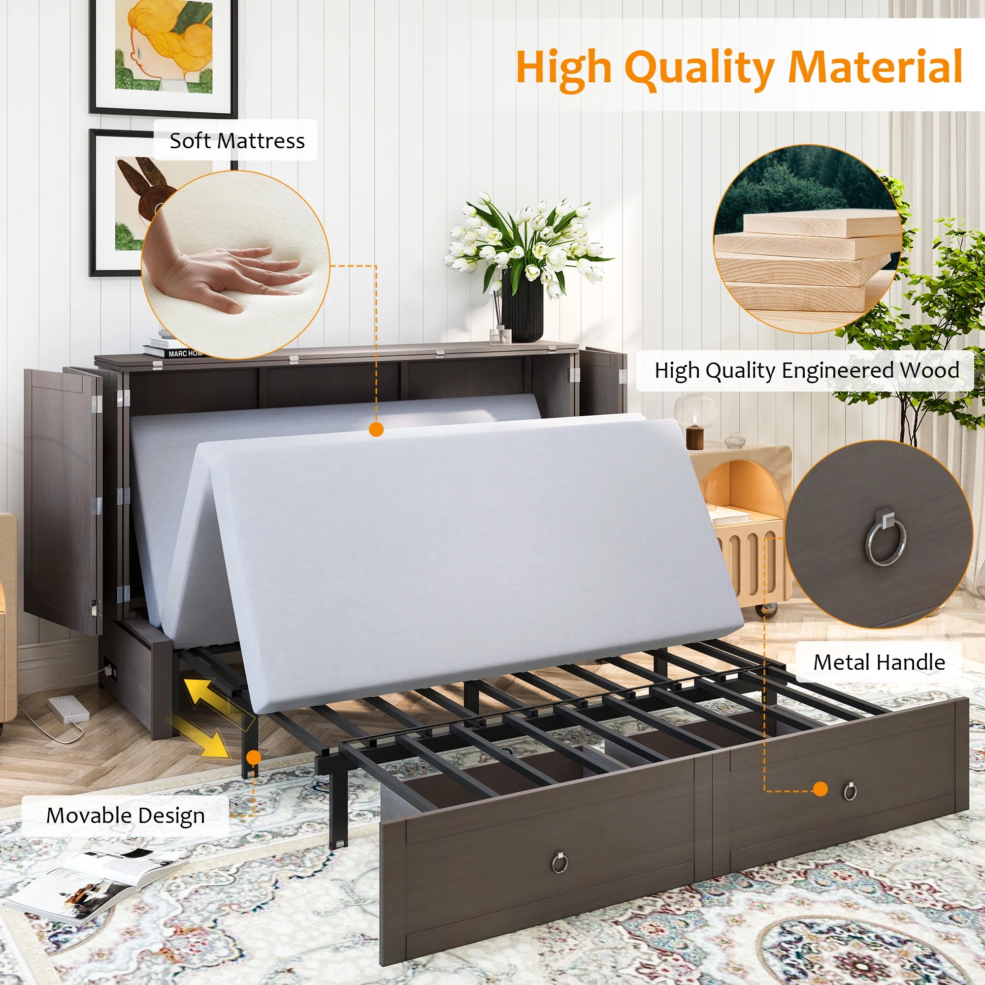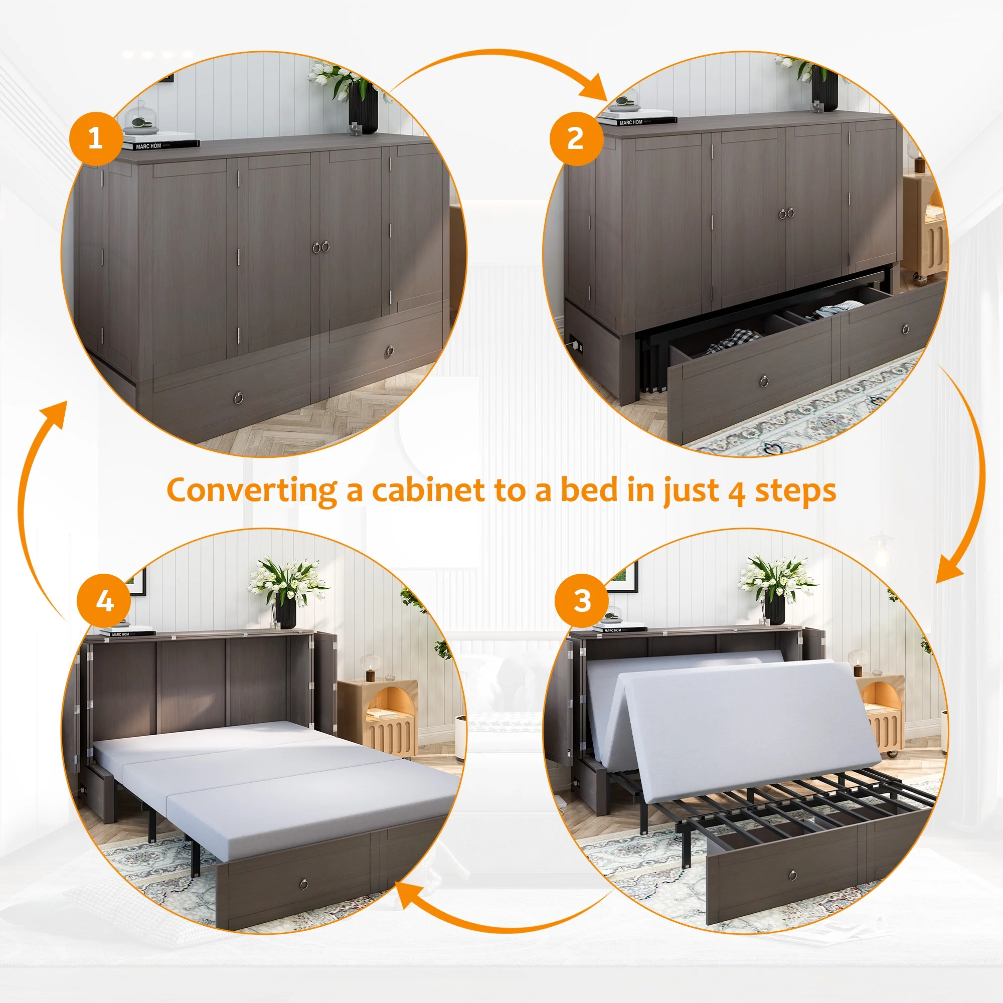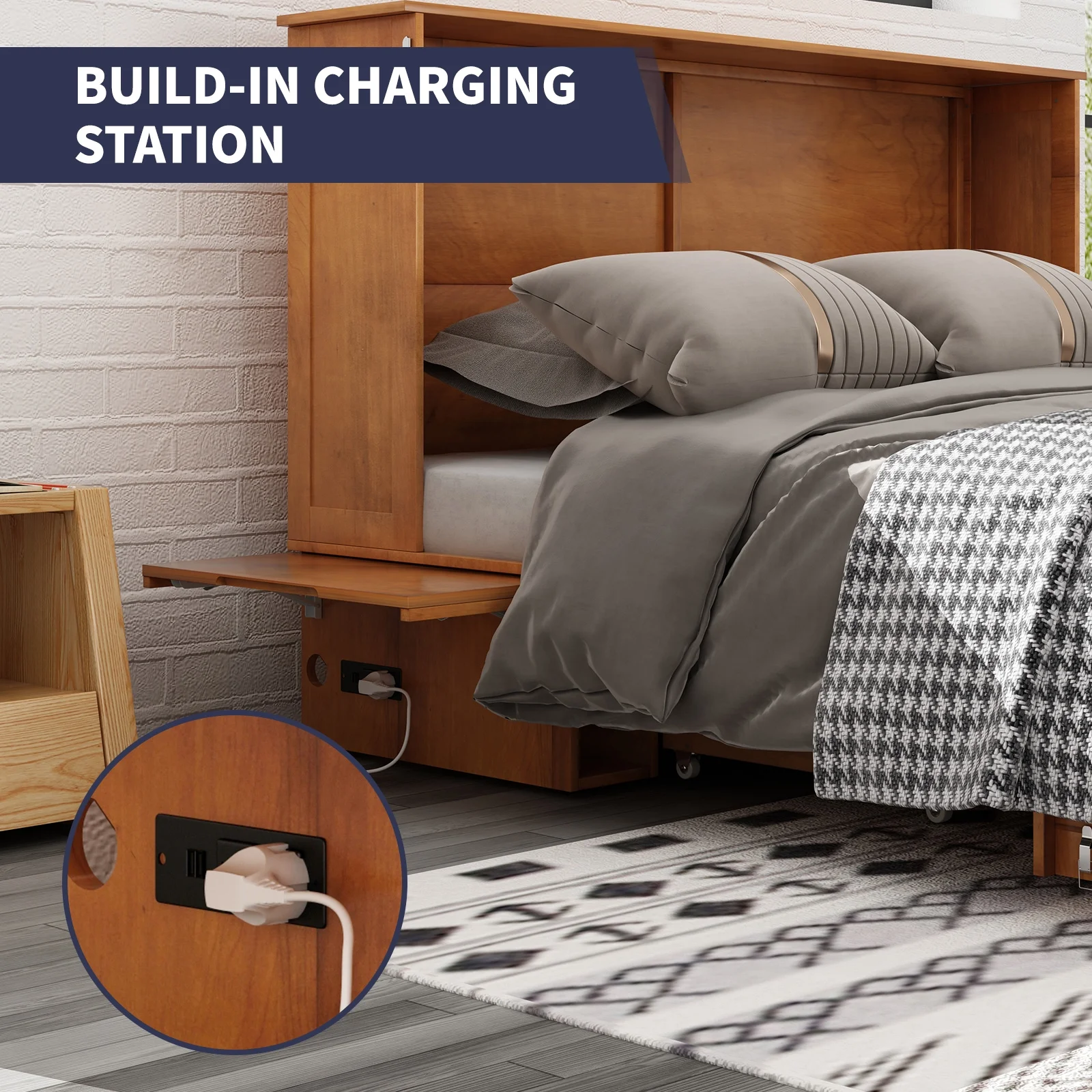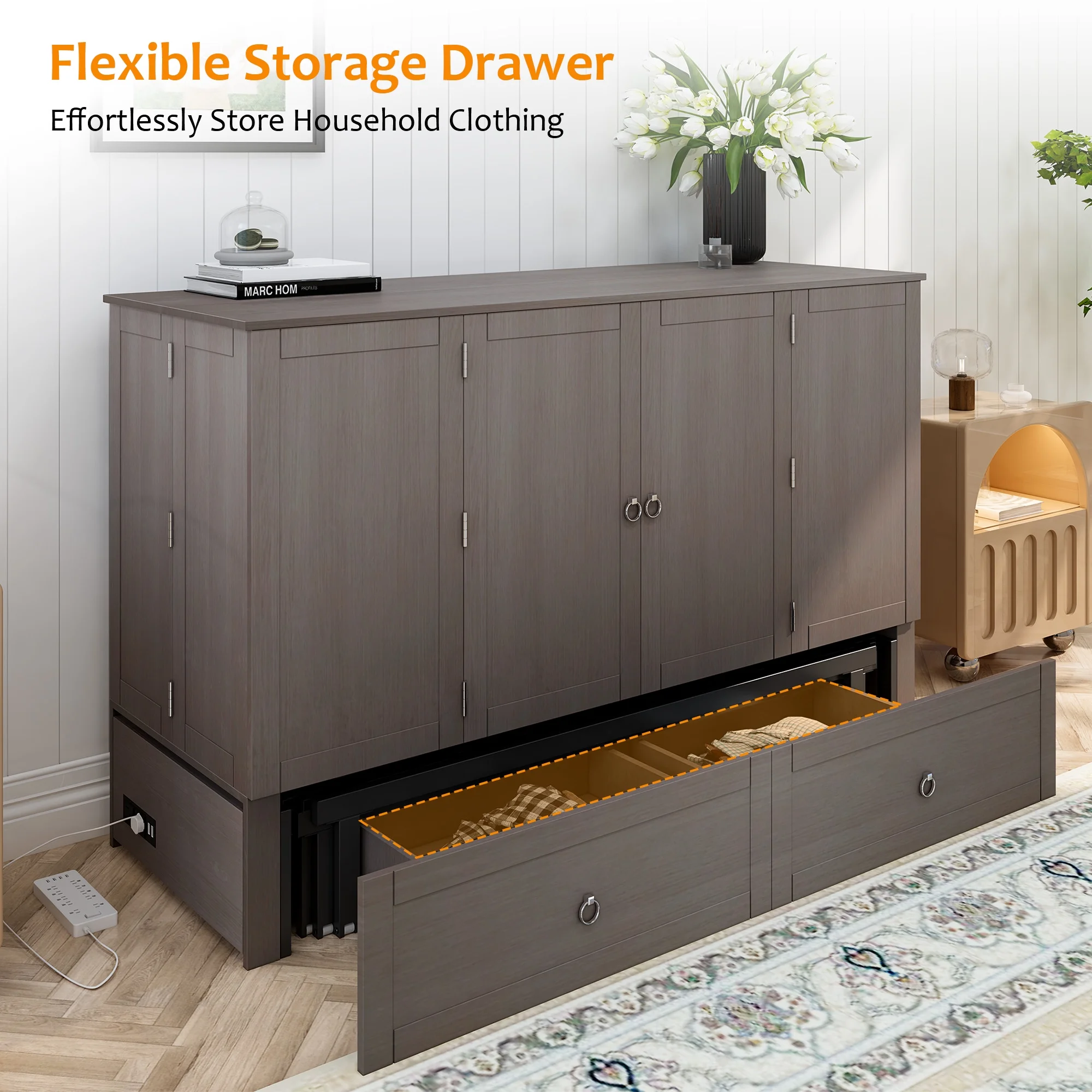 CoSoTower Queen Size Murphy Bed with Built-In Charging Station, Antique Grey