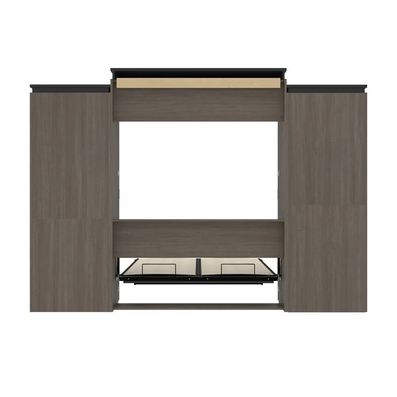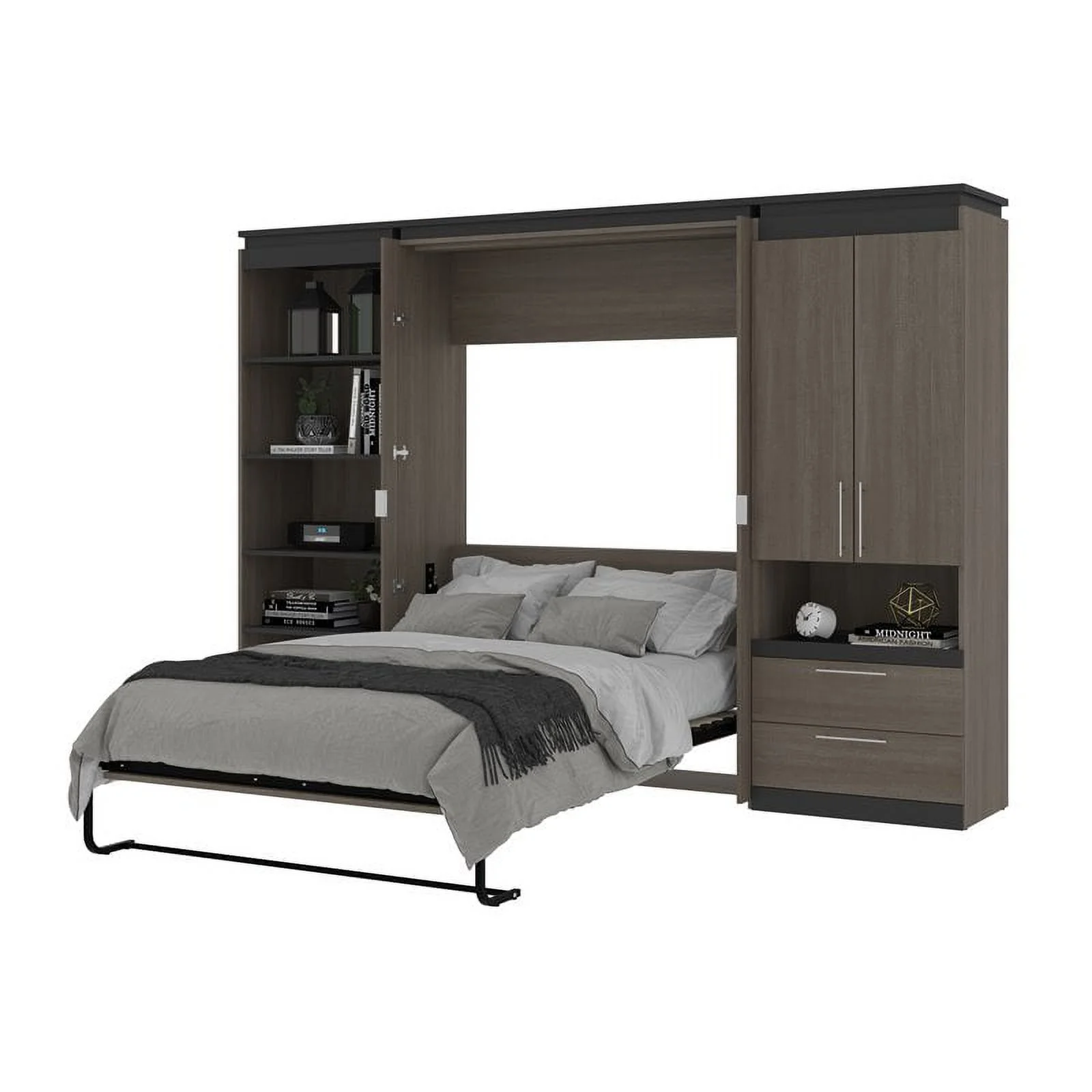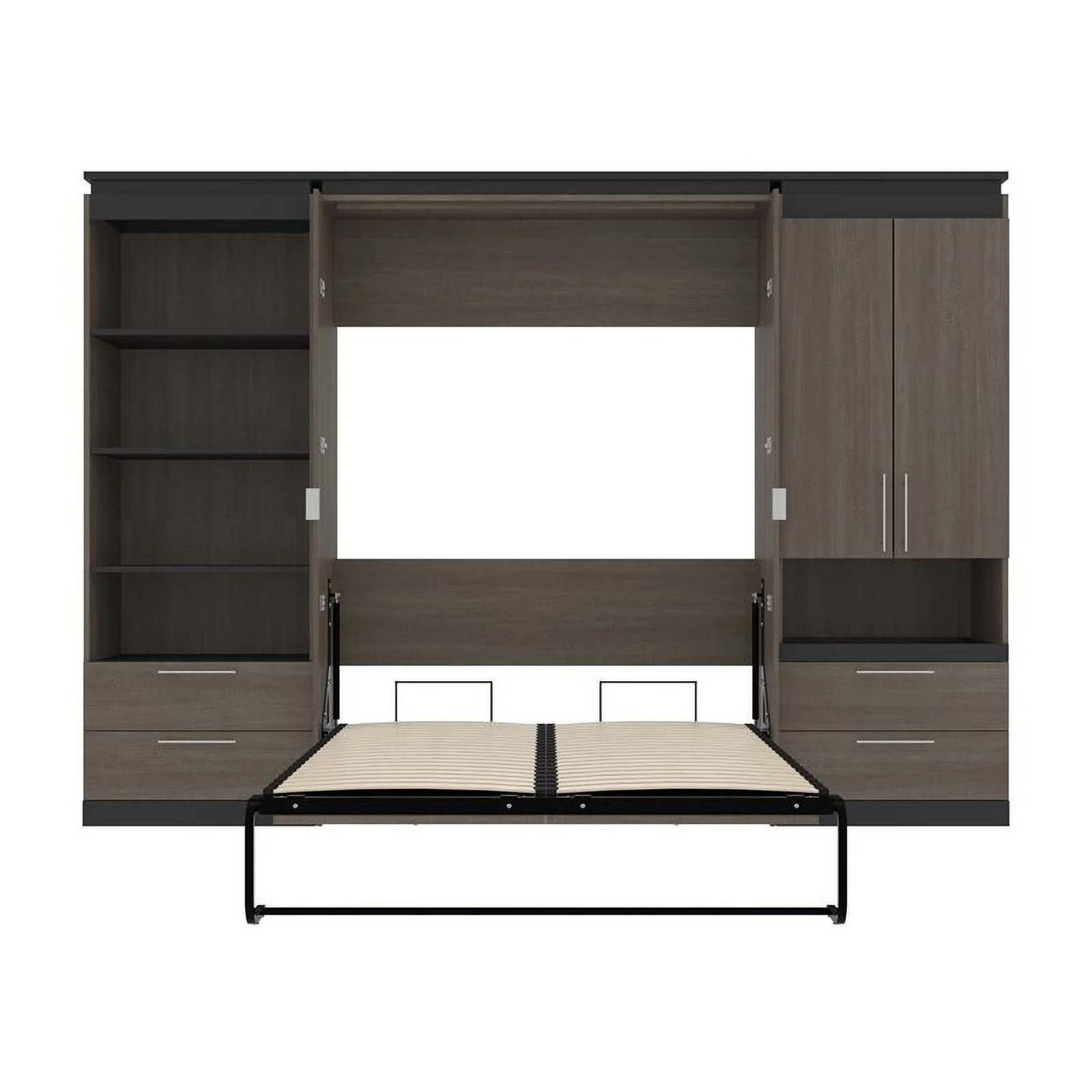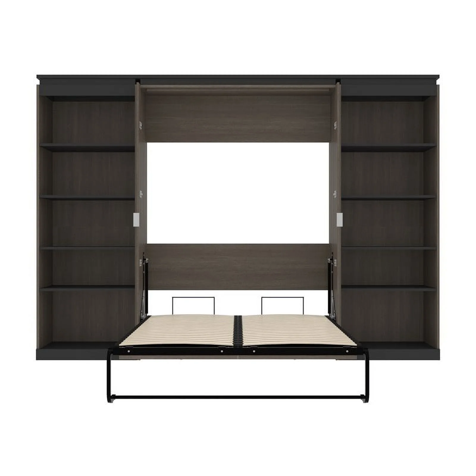 Bestar Orion 124" Queen Murphy Bed with Multifunctional Storage in Bark Gray