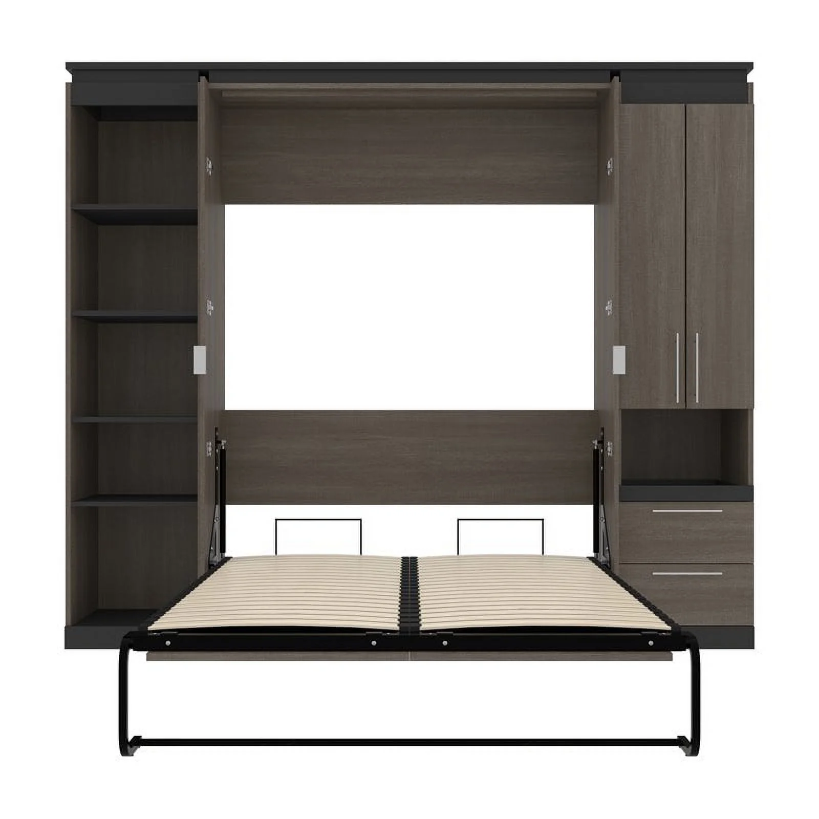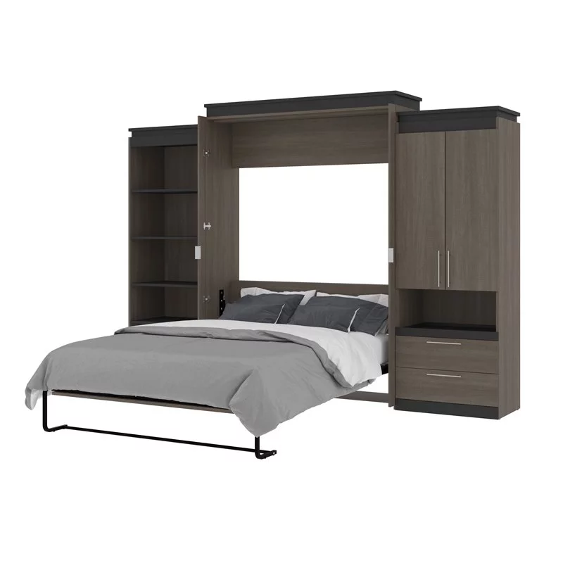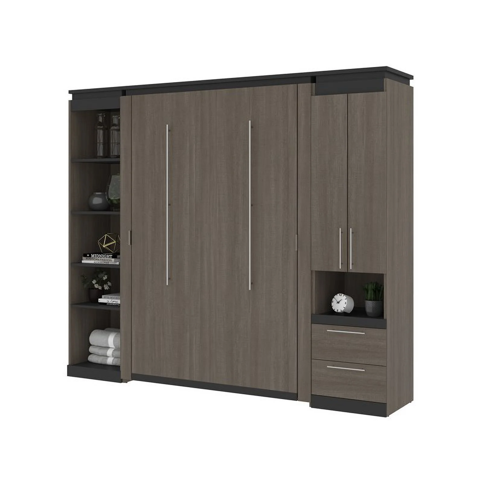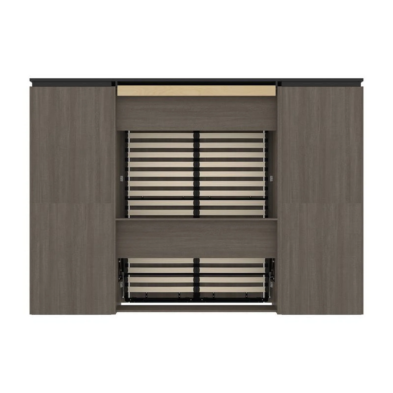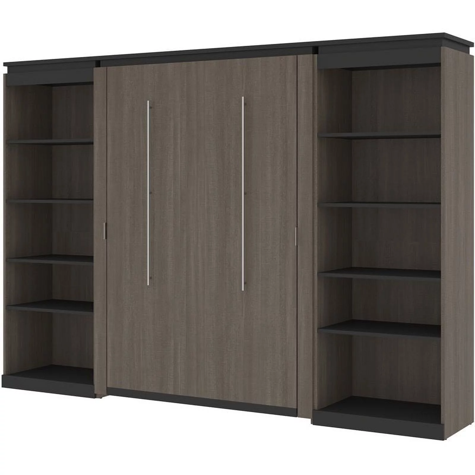 Bestar Orion 124" Queen Murphy Bed with Multifunctional Storage in Bark Gray