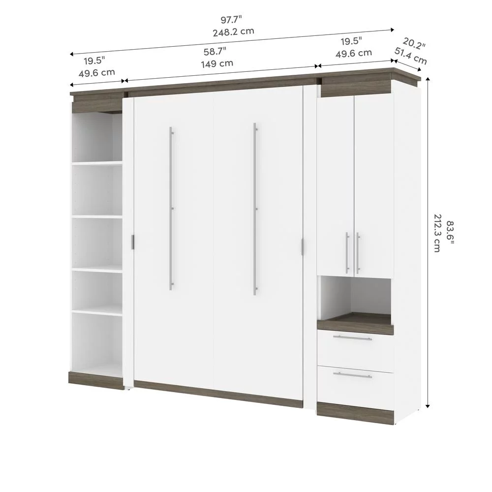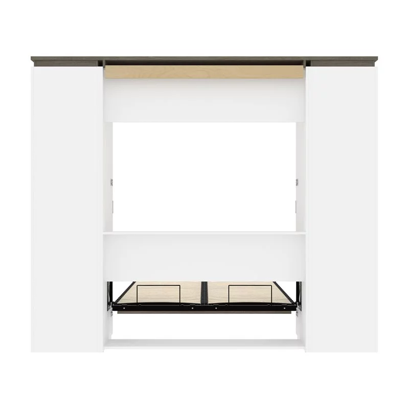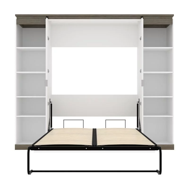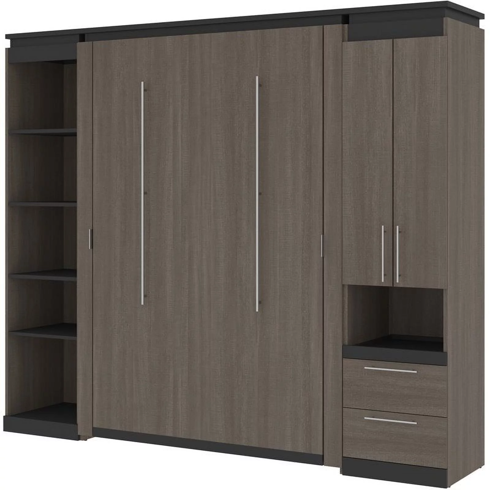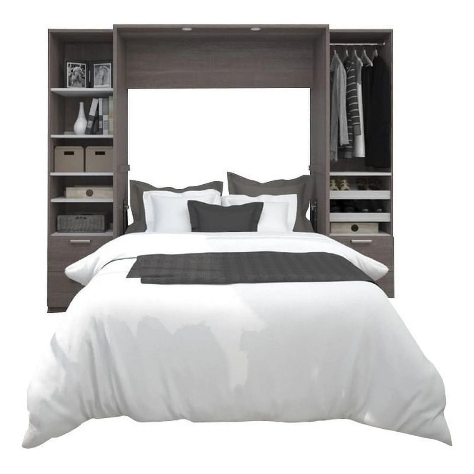 Bestar Orion 124" Queen Murphy Bed with Multifunctional Storage in Bark Gray