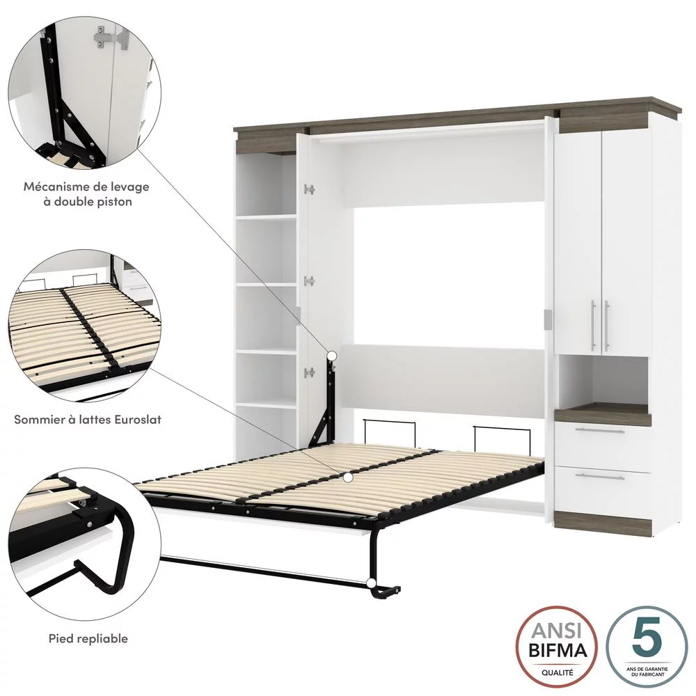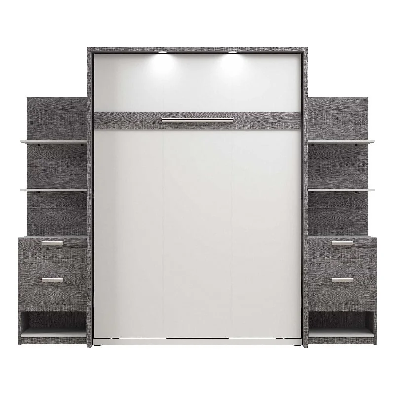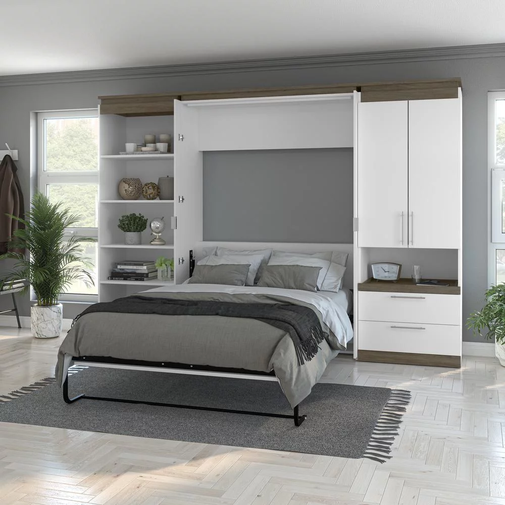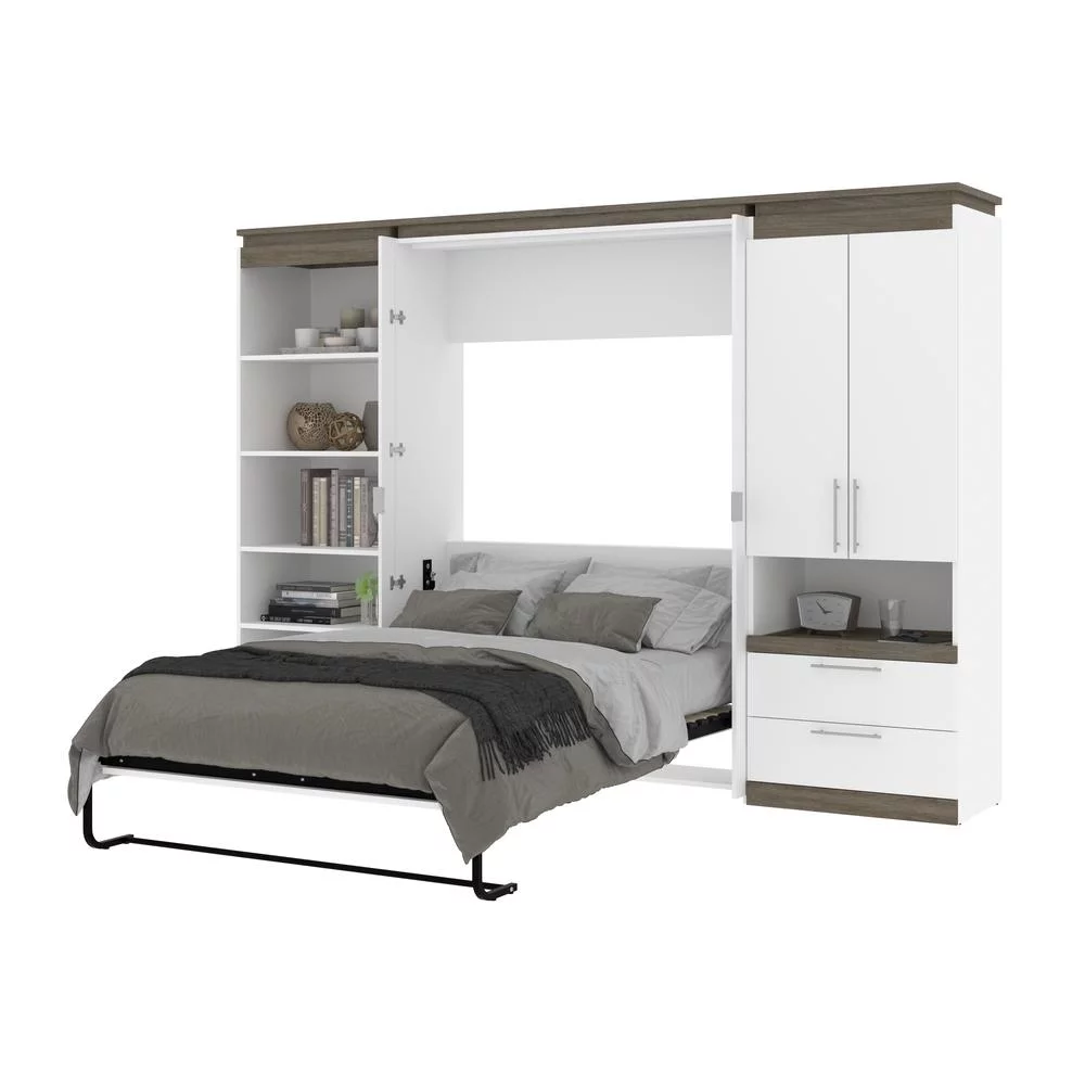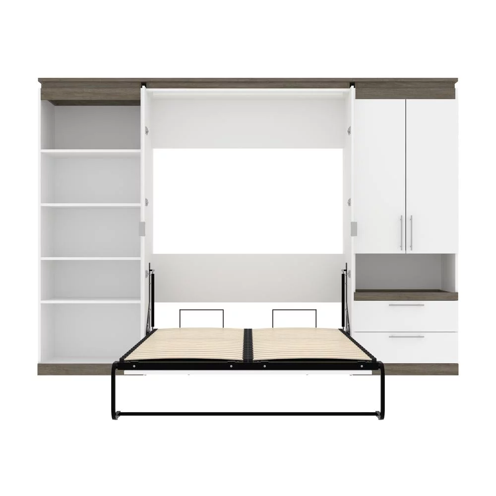 Bestar Orion 124" Queen Murphy Bed with Multifunctional Storage in Bark Gray
