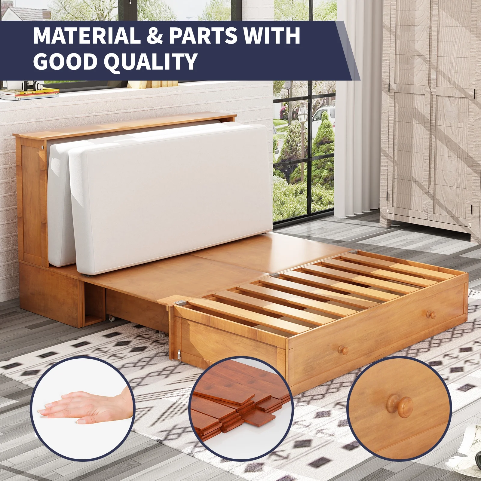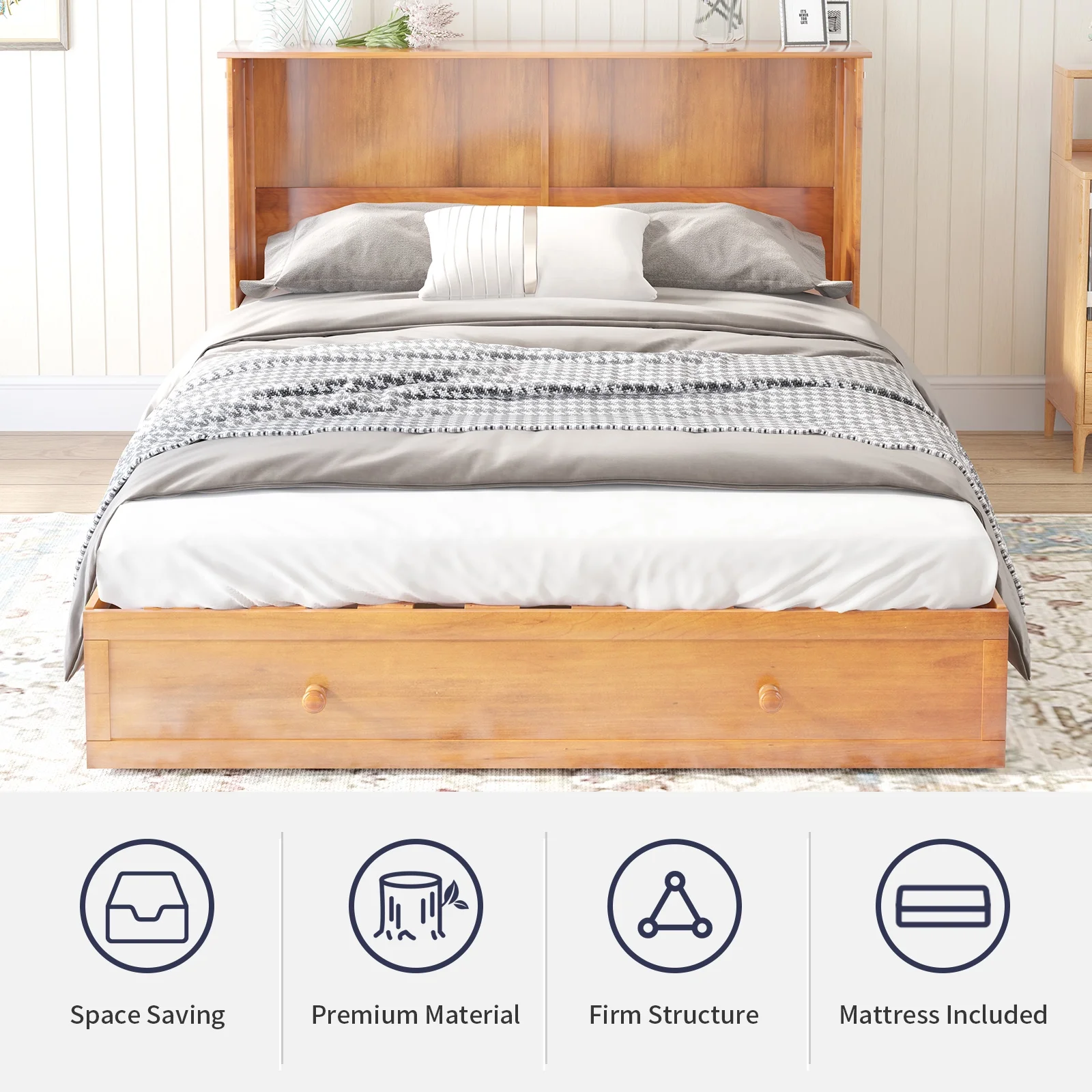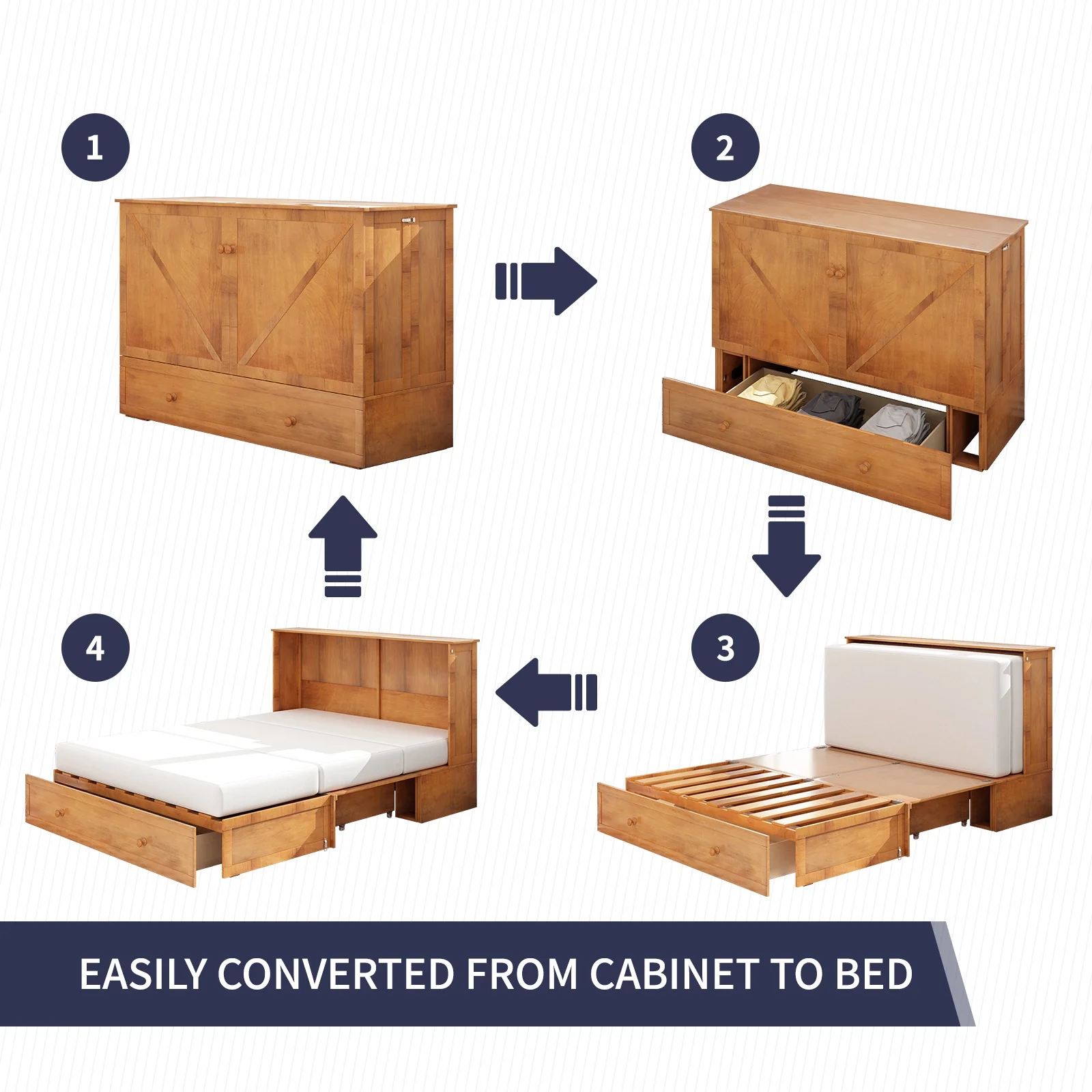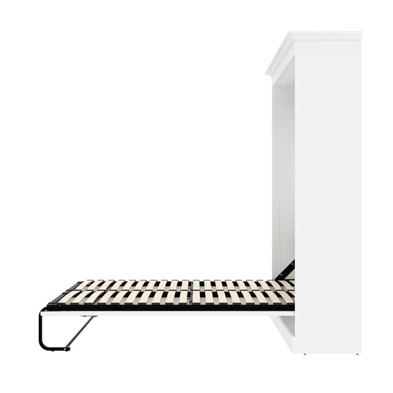 Modern Style White Pine Wood Queen Size Murphy Bed with Drawer, Shelves, Easy Assembly
