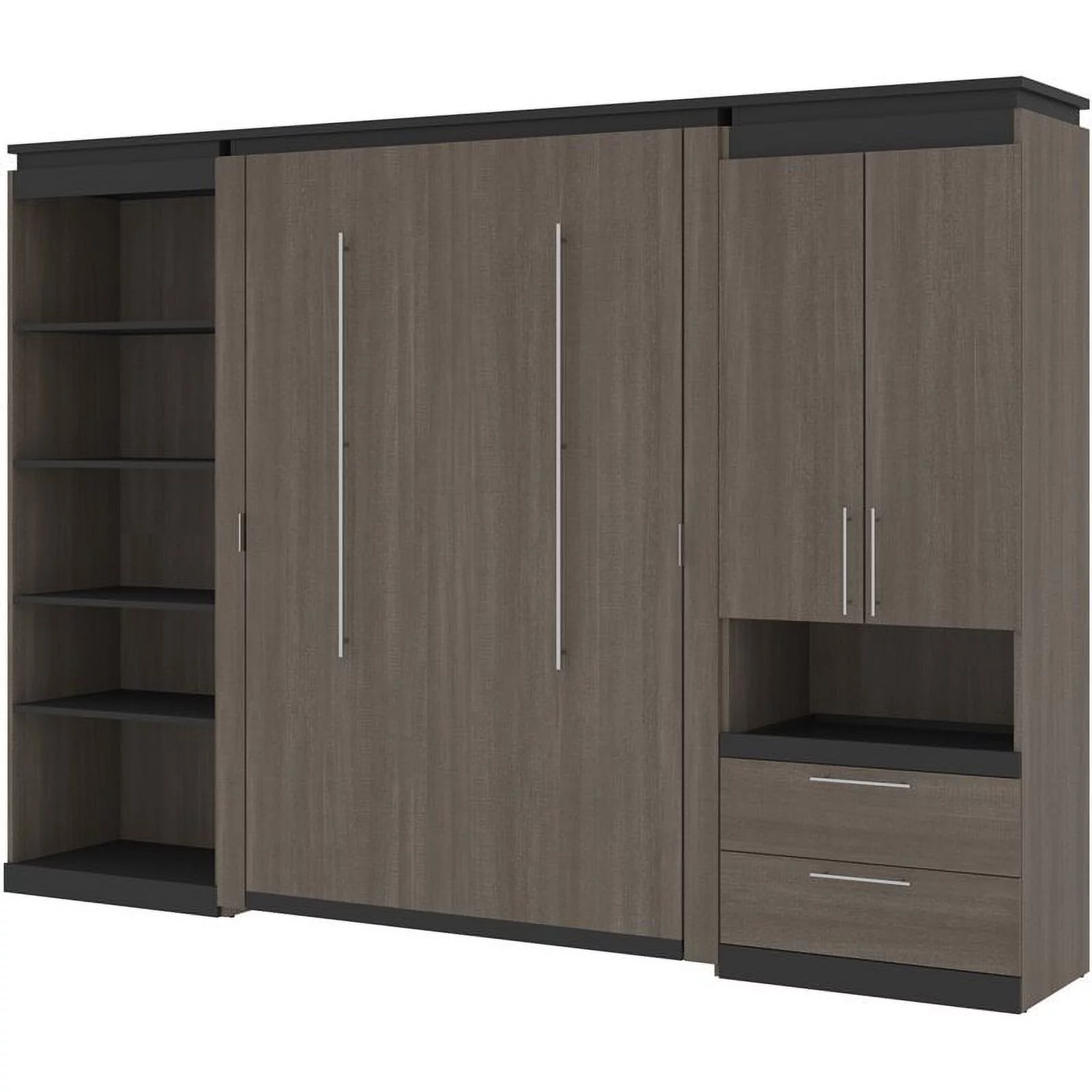 Bestar Orion 118" Full Murphy Bed and Storage with Drawers in Bark Gray