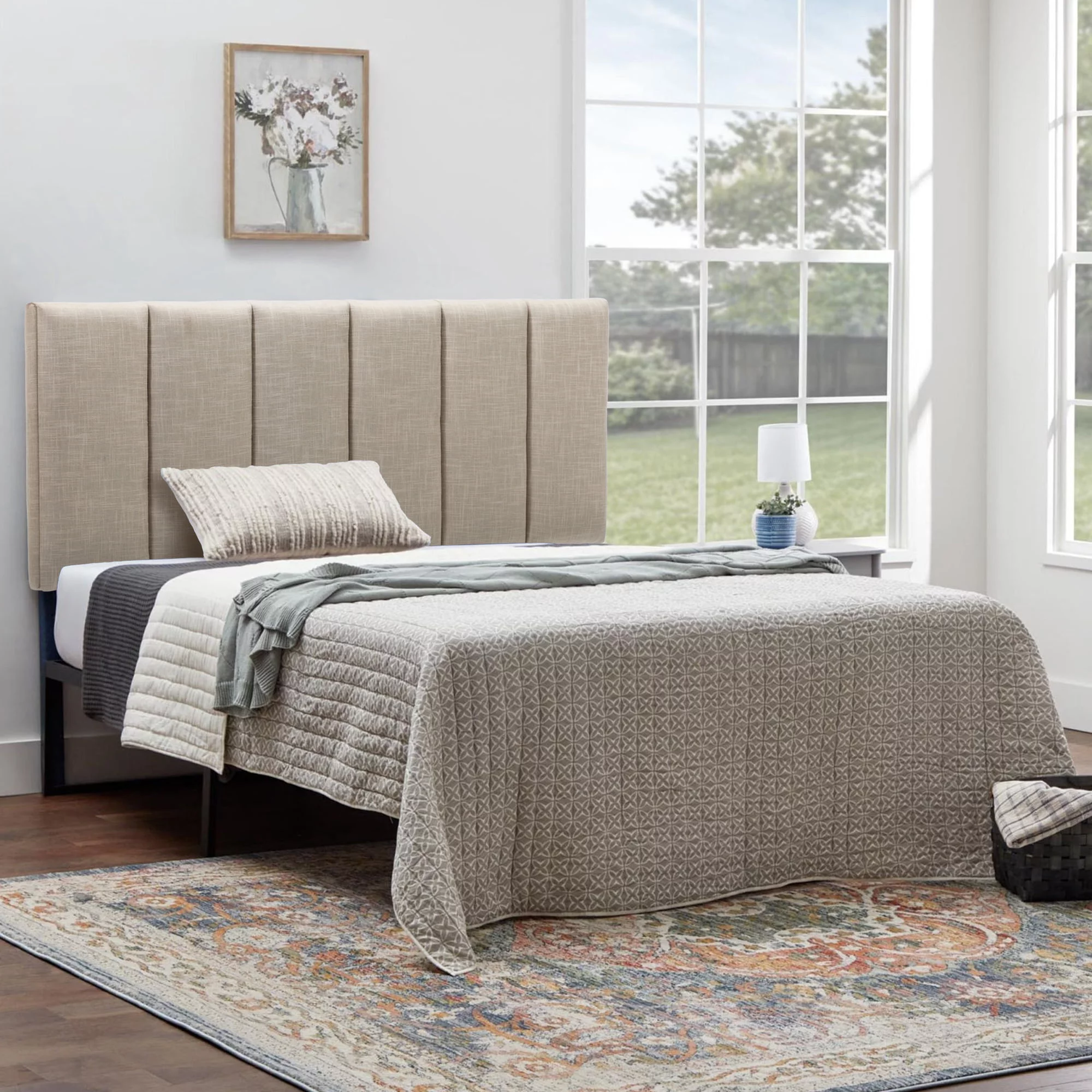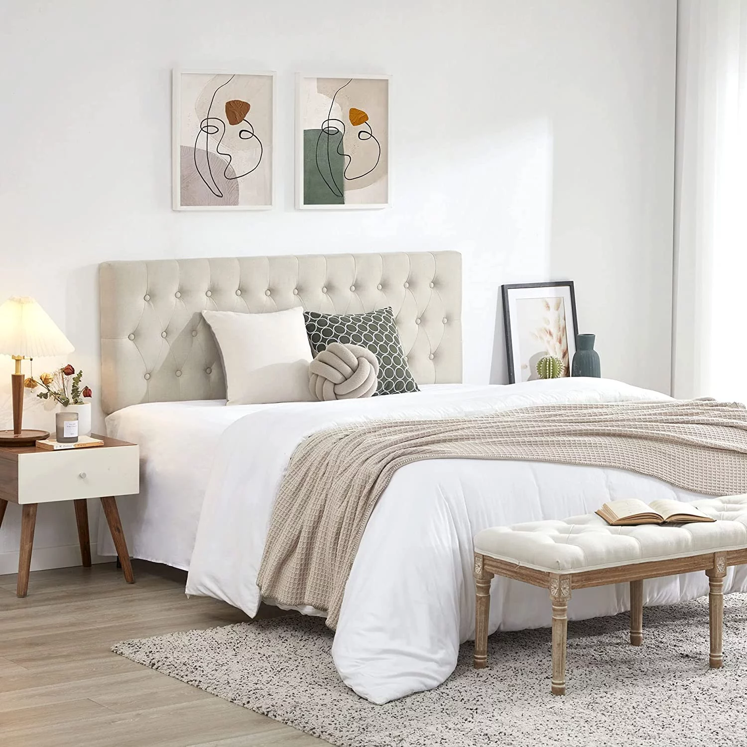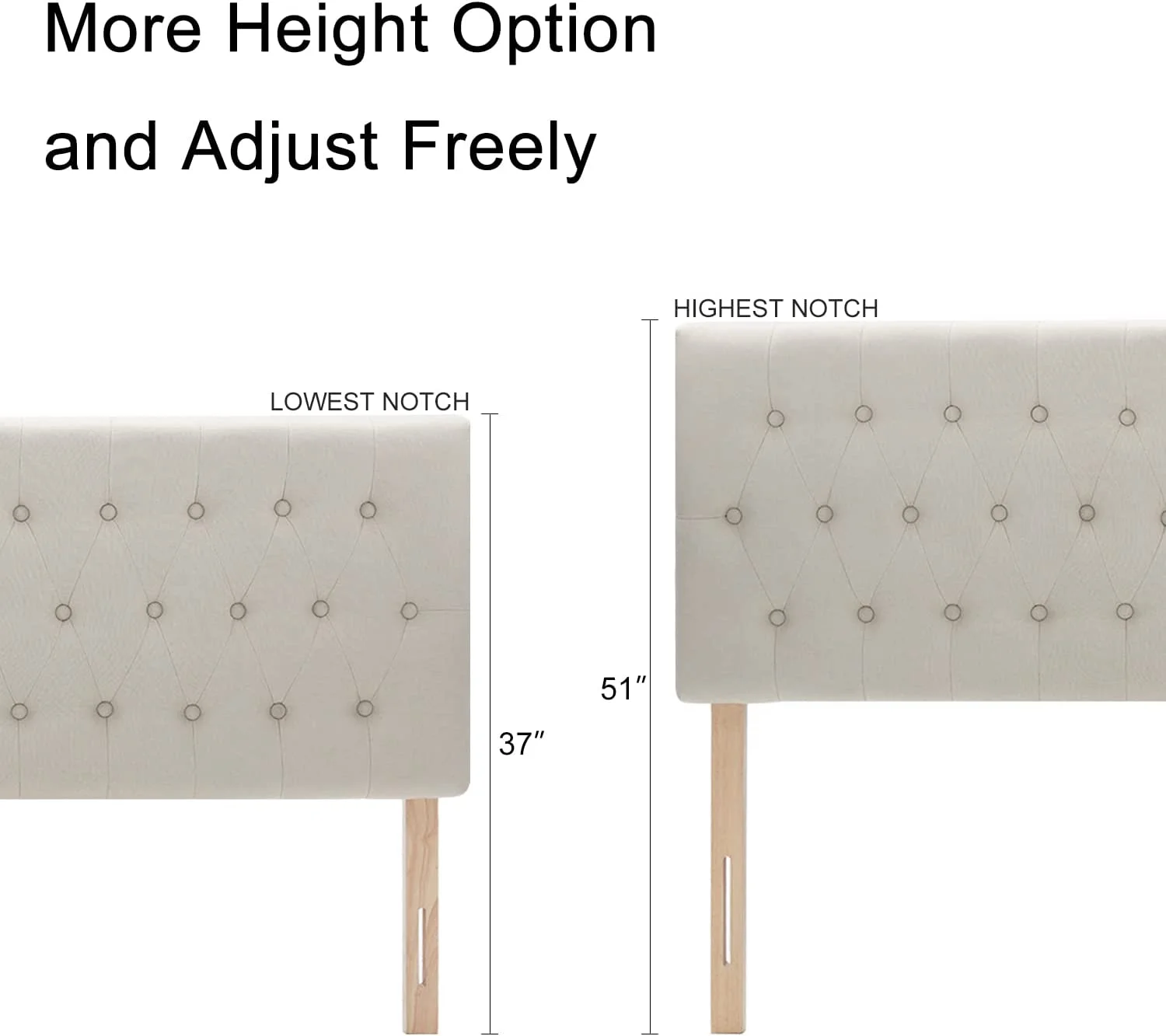 Andeworld Upholstered Headboard King Foldable Headboard for King Bed Adjustable Height Oatmeal