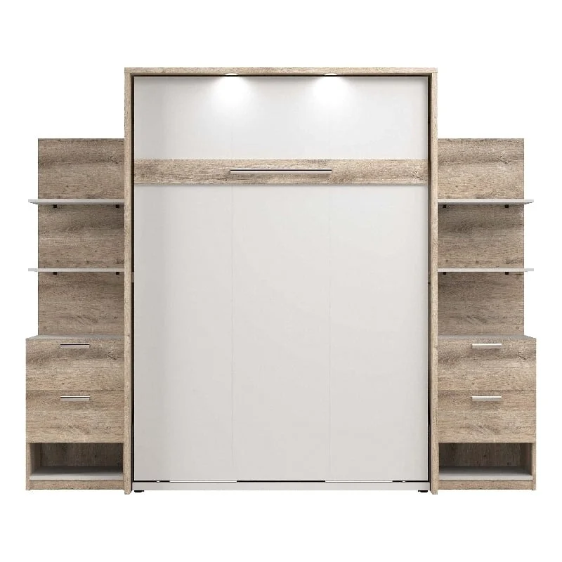 Atlin Designs 104" Queen Murphy Bed and Narrow Storage with Drawers in White