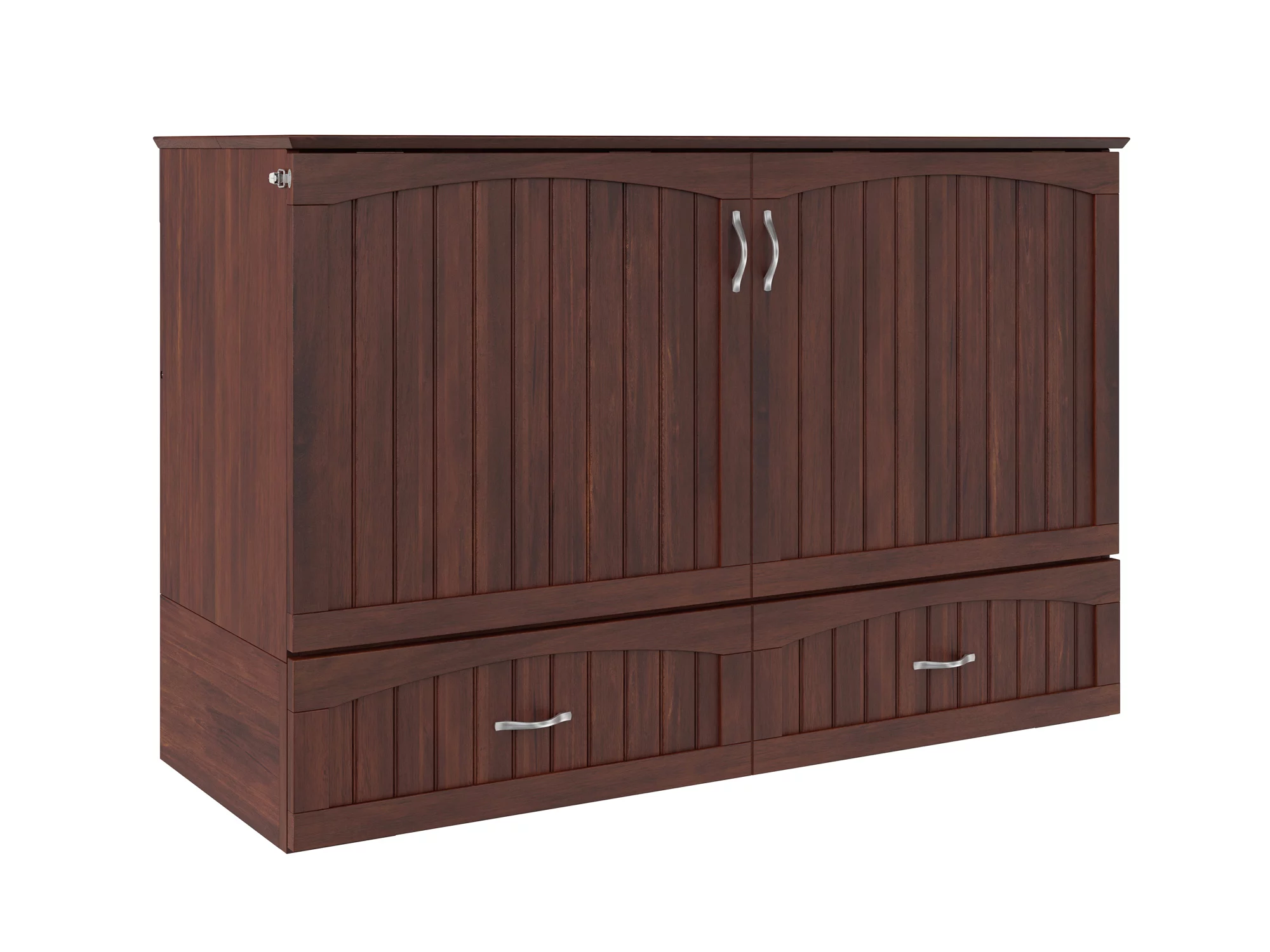 RoomAndLoft Cape Cod Wood Queen Size Murphy Wall Bed & Shelf Storage in Brown
