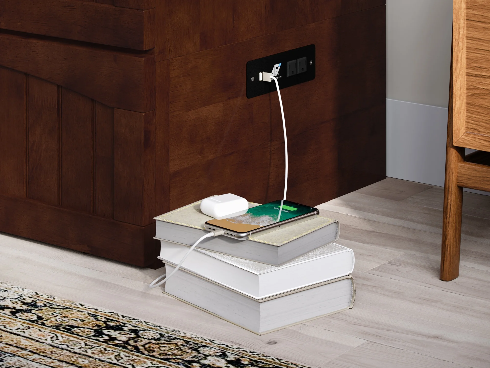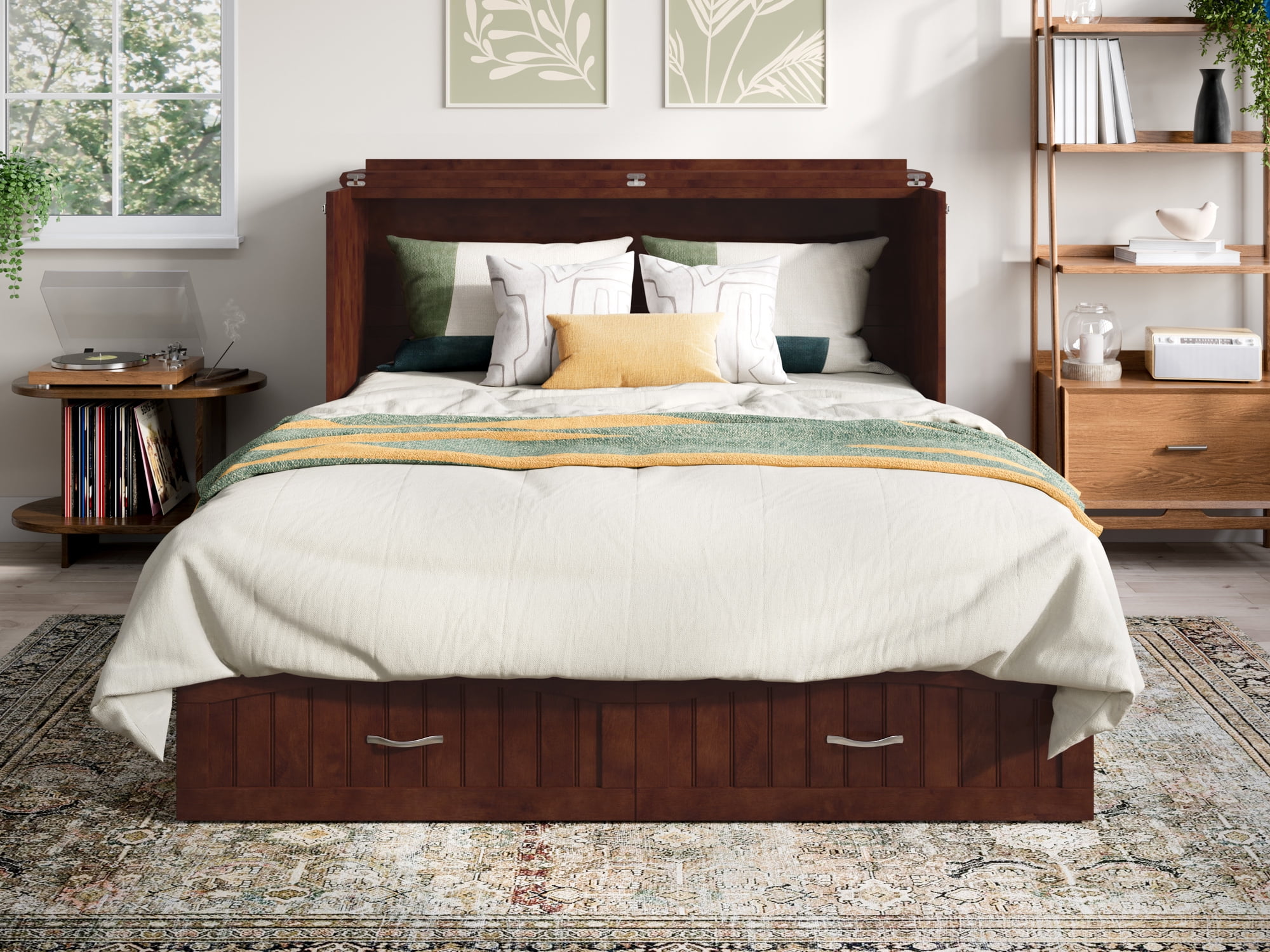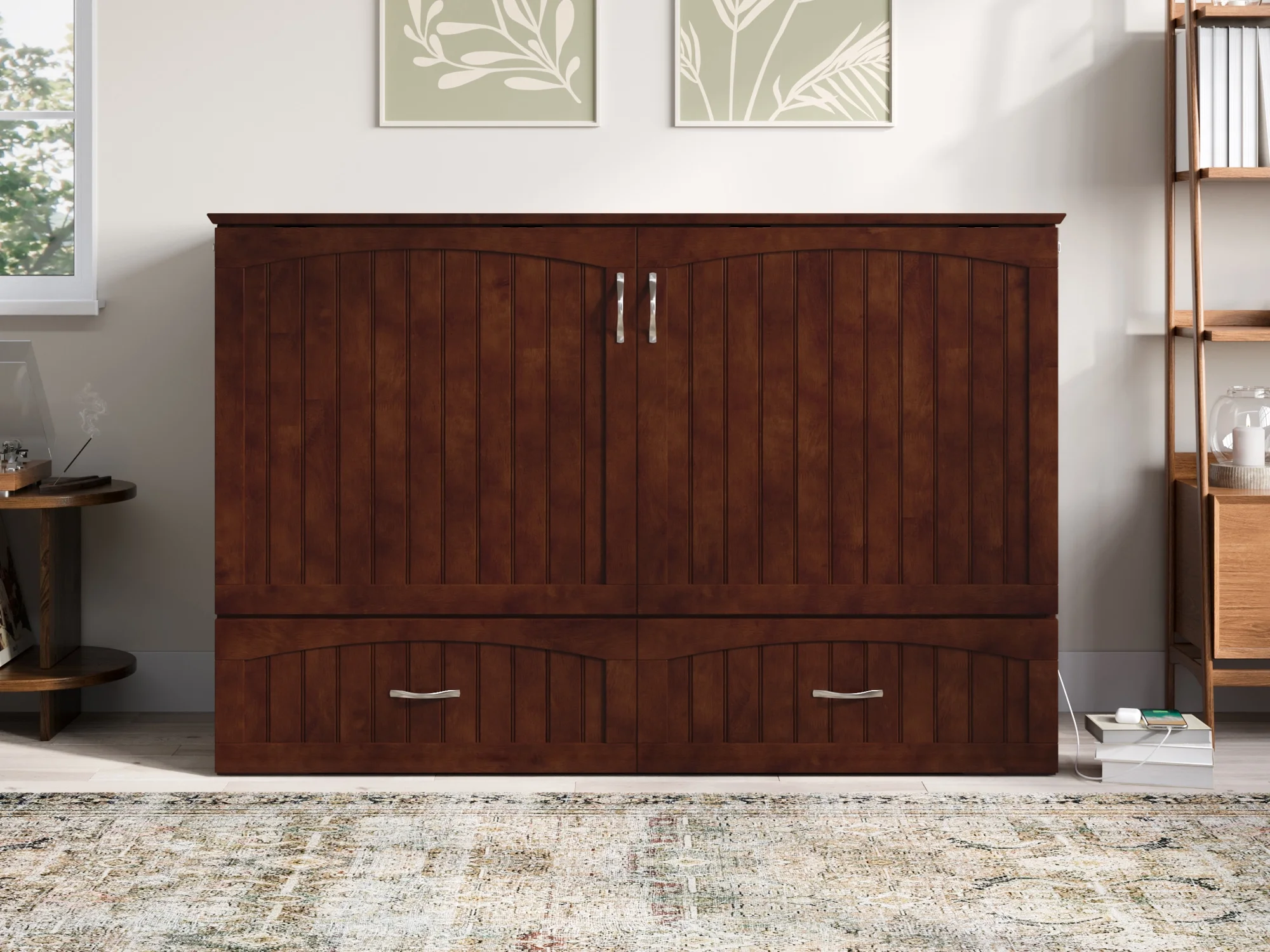 AFI Aspen Queen Murphy Bed Chest with Mattress, Storage & Built-in Charging, Walnut